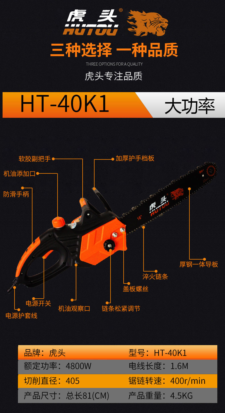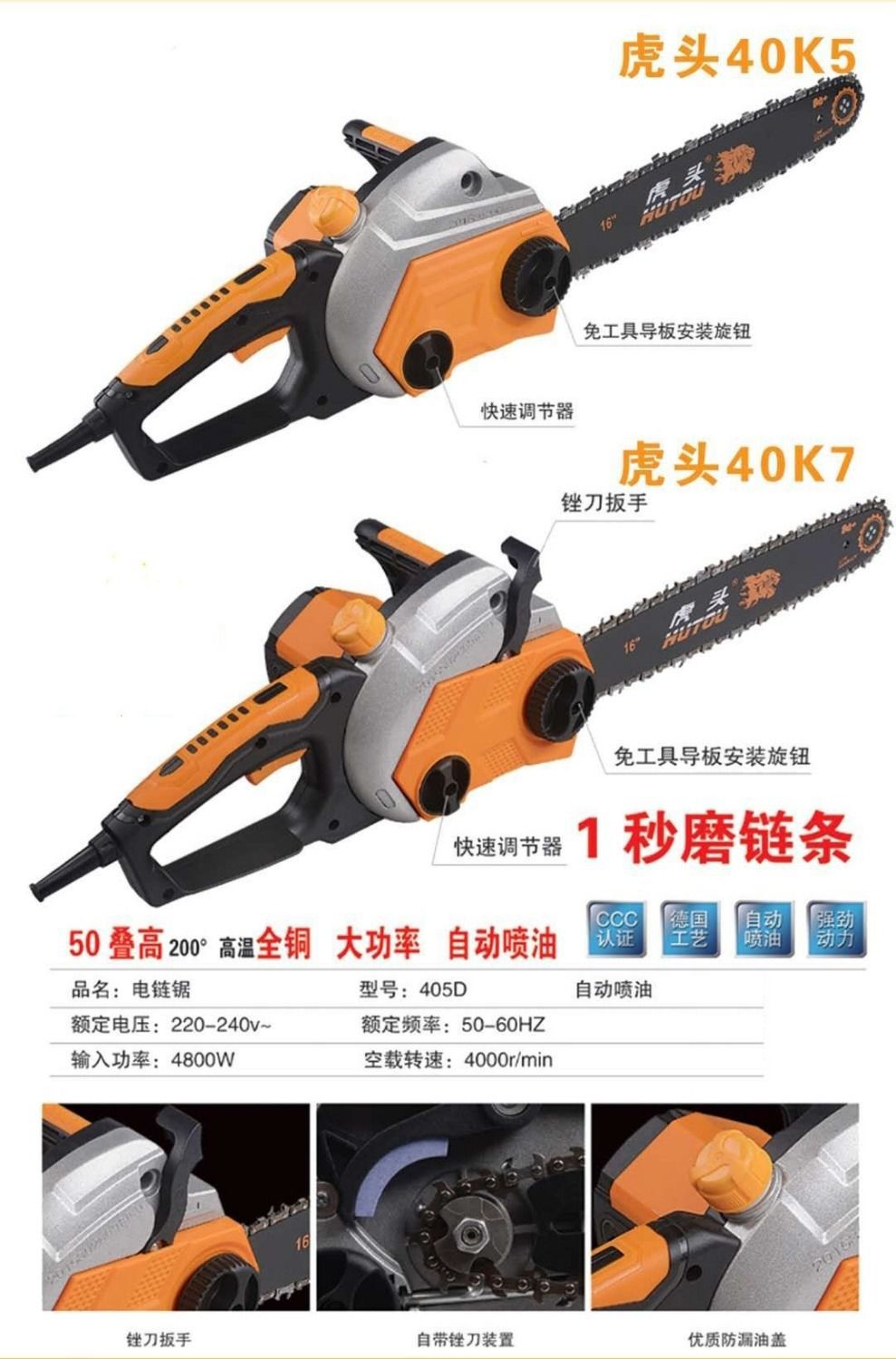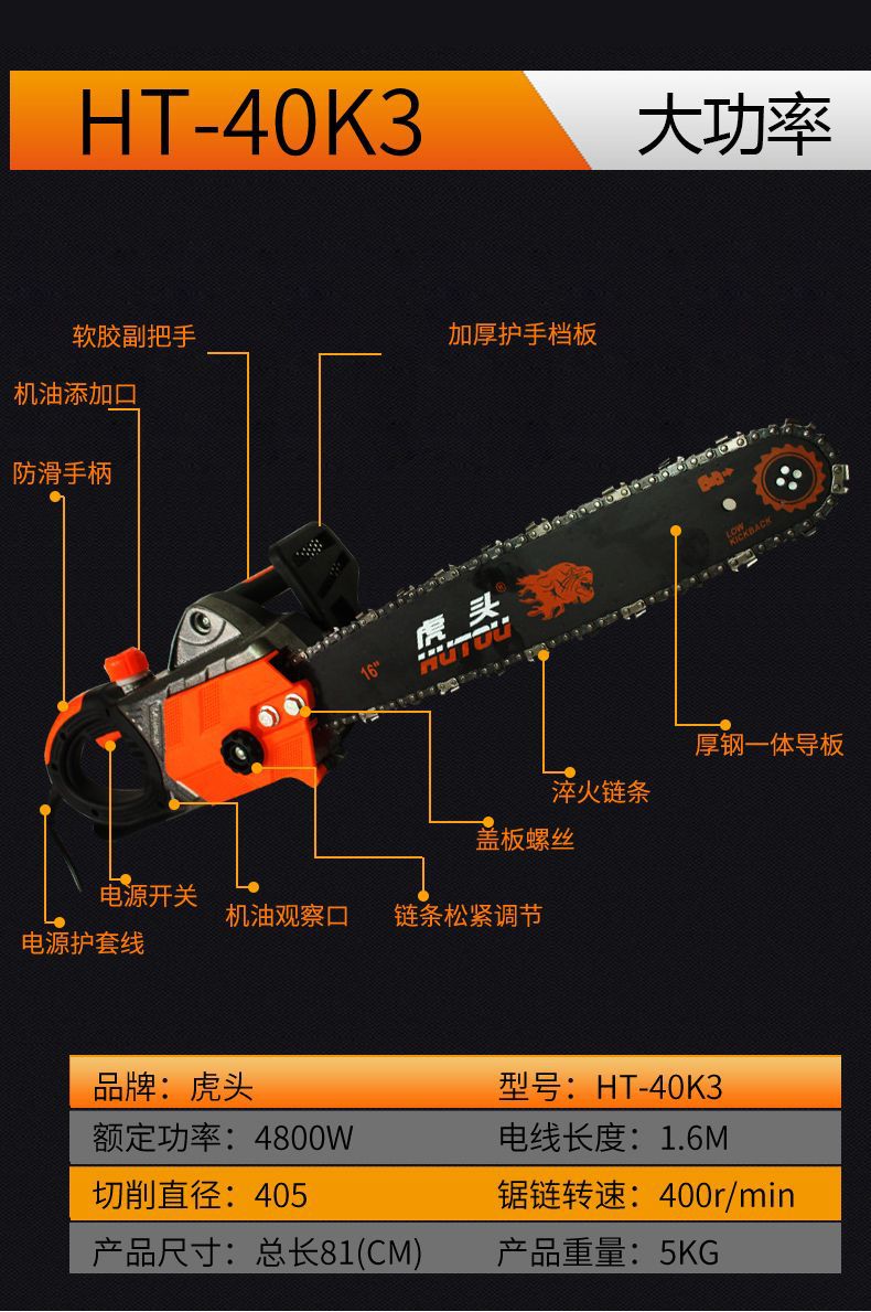 타이거 헤드 전기는 가정용 모든 구리 와이어 고출력 전기 체인을 보았다 다기능 수입 목공 로깅은 휴대용 전기 톱을 보았다