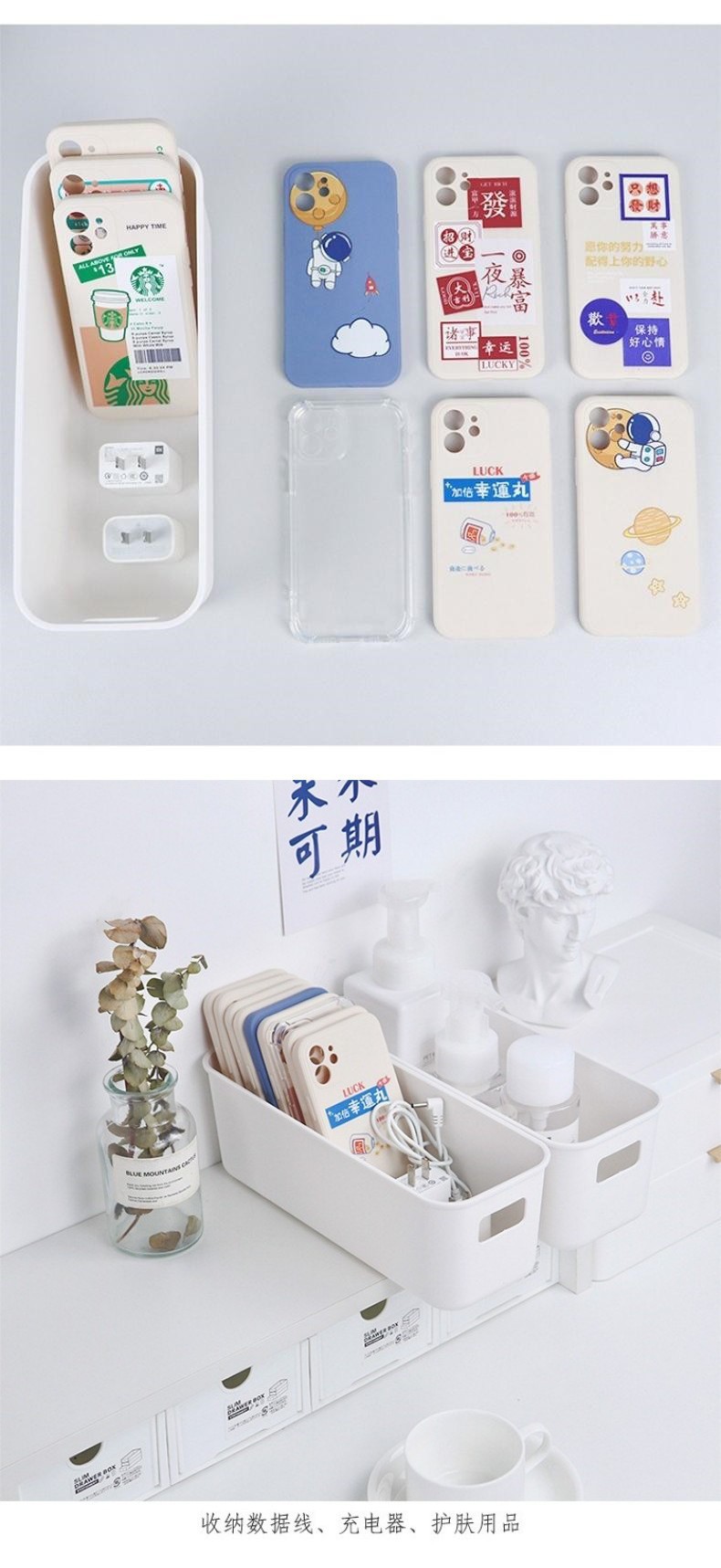 데스크탑 휴대 전화 케이스 대용량 저장 상자 휴대용 학생 책상 간식 화장품 보관 바구니 잡화 보관 상자