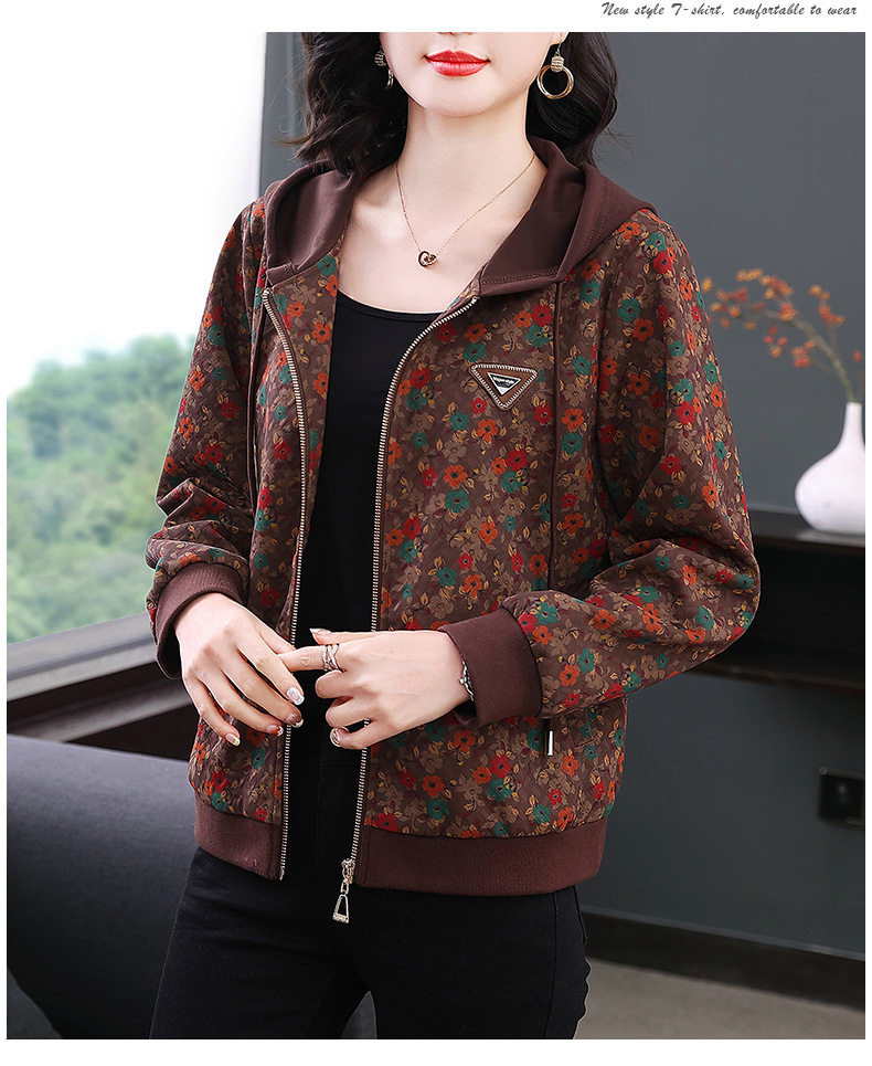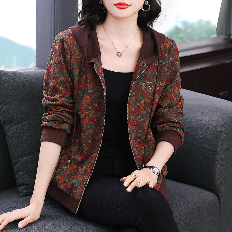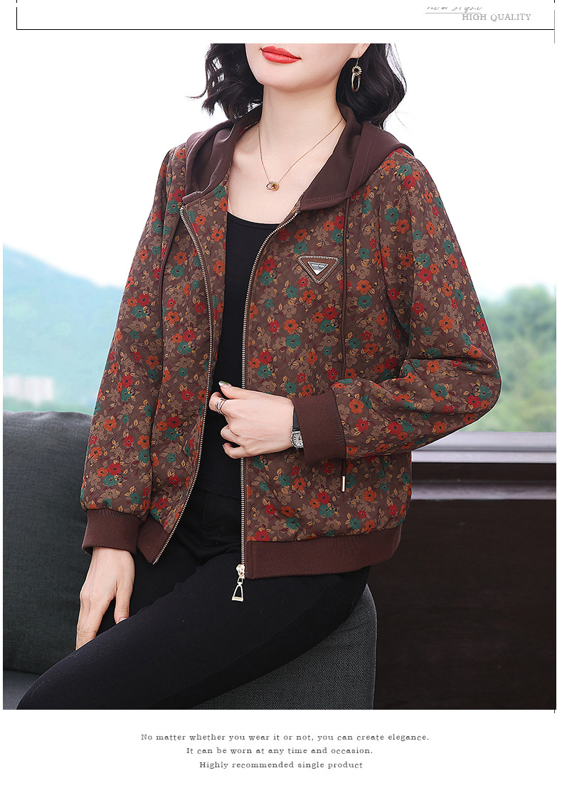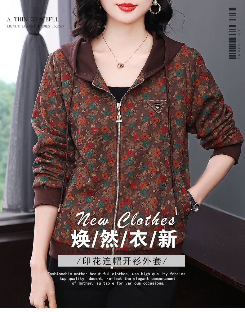 어머니의 코트 후드 봄과 가을 서양 스타일 캐주얼 재킷 새로운 중년 느슨한 여성 의류 여성을위한 중년 유행 탑
