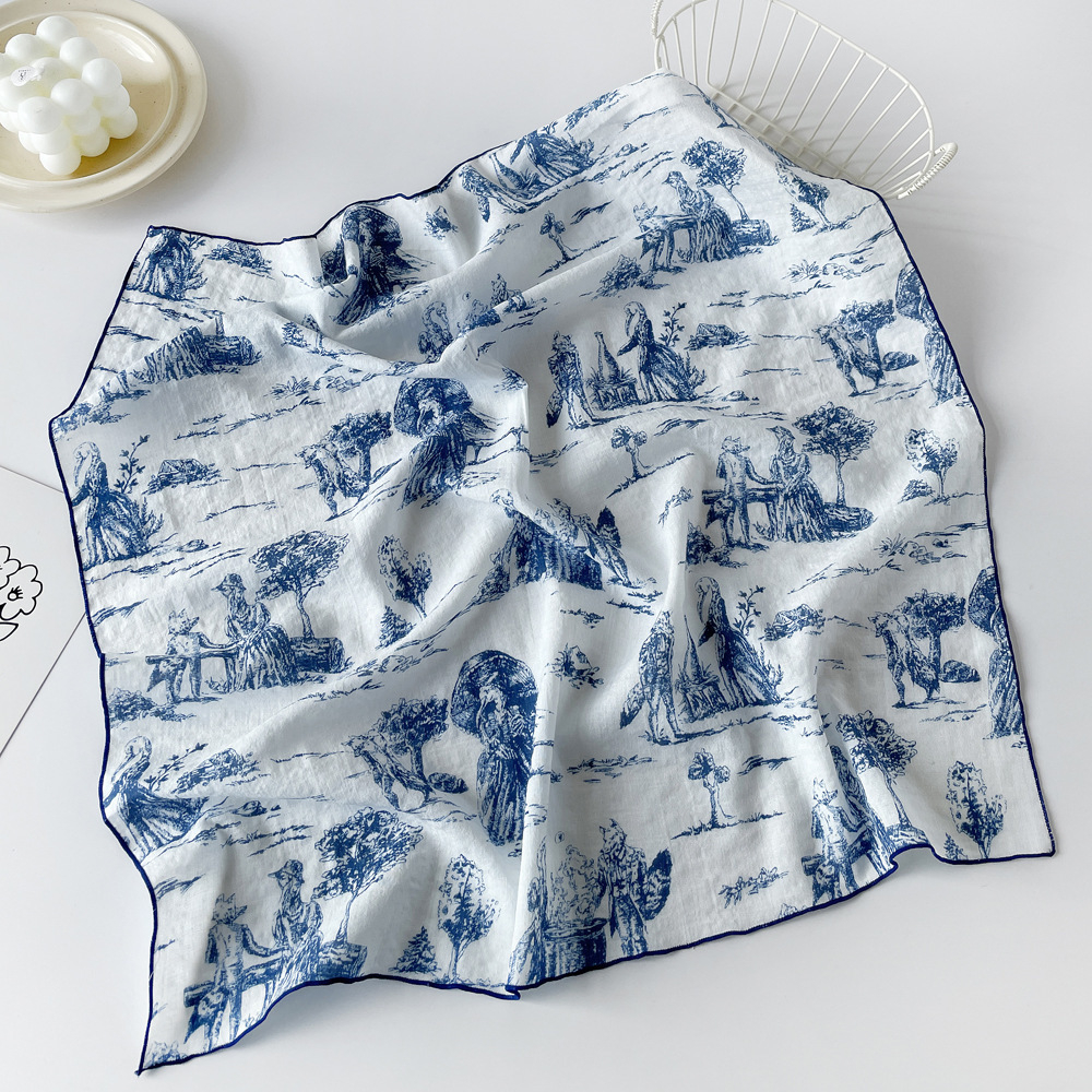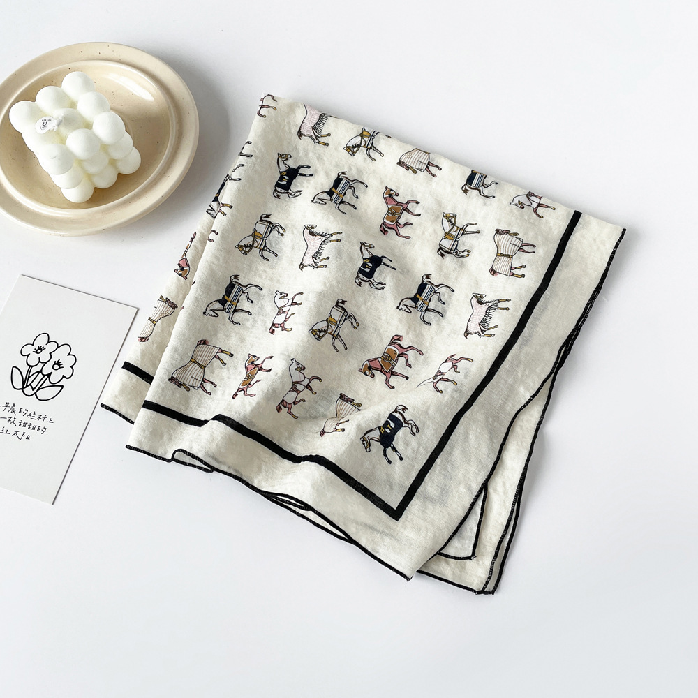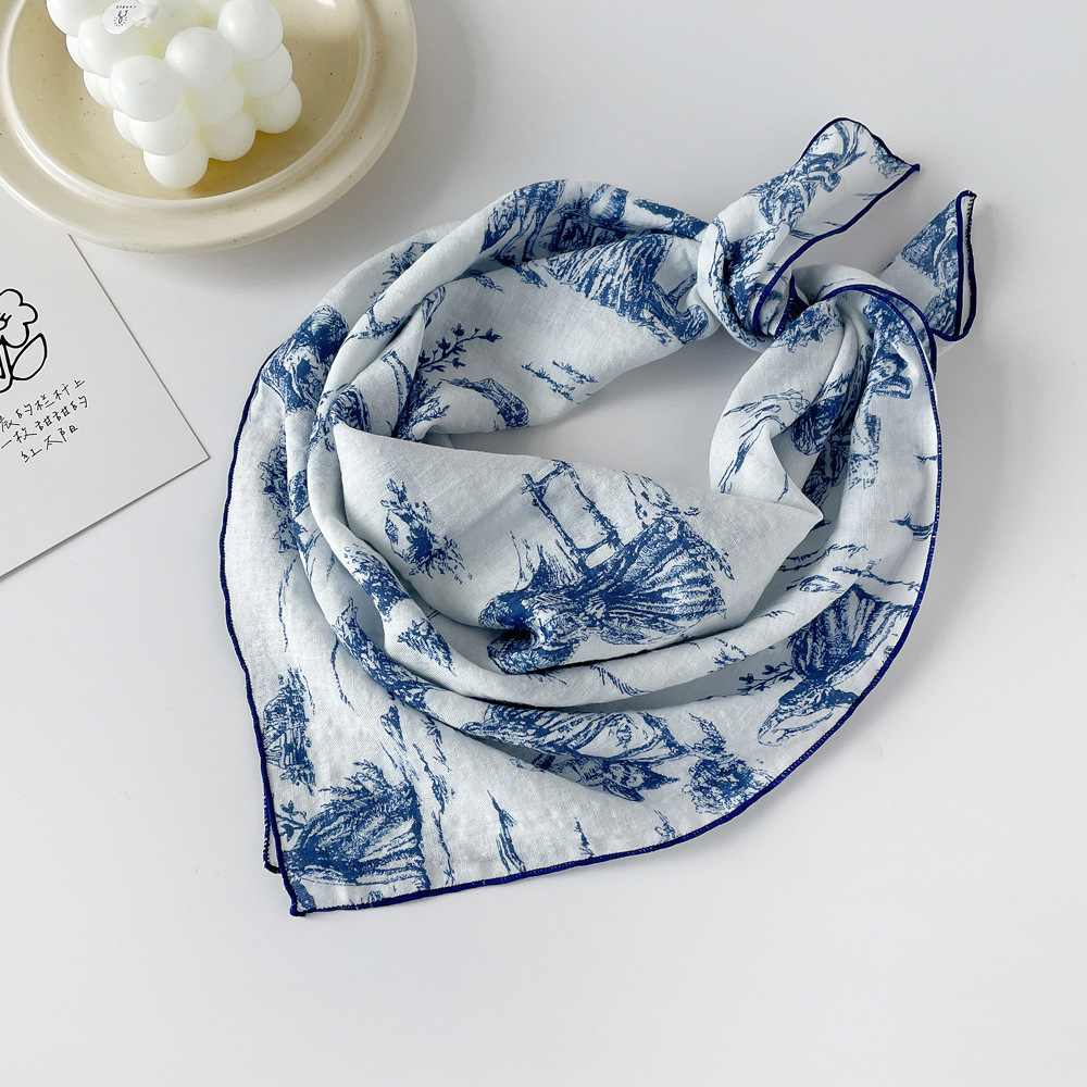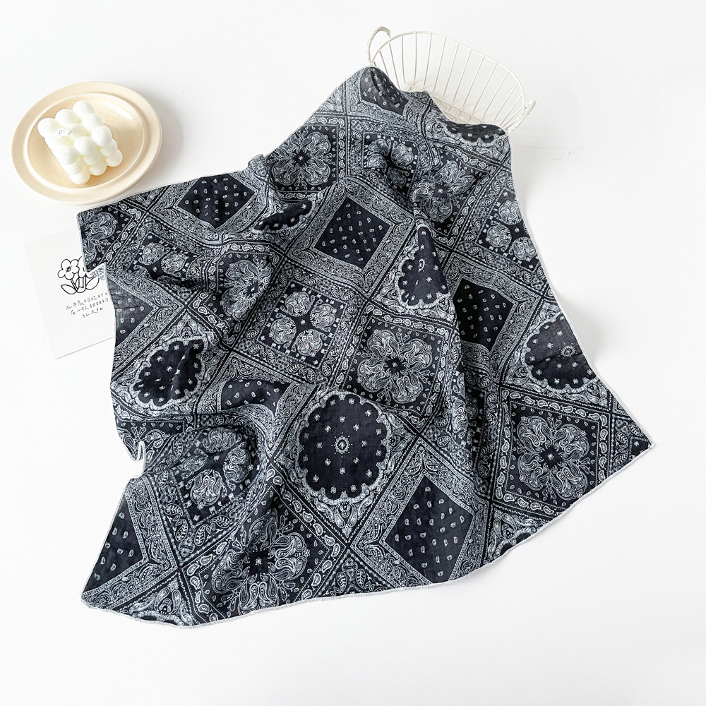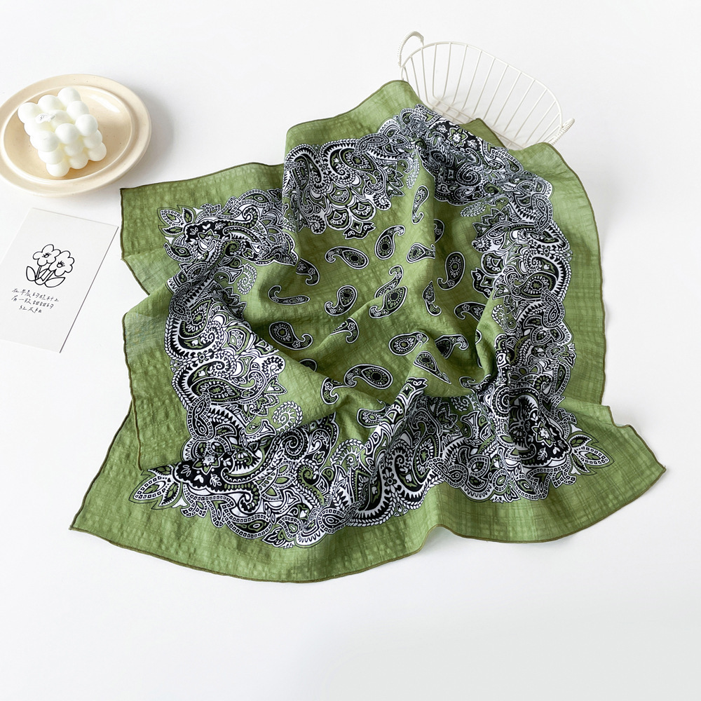 코튼 스카프 작은 사각형 스카프 여성 봄 새로운 유럽과 미국의 머리 스카프 조커 캐슈 너트 인쇄면 및 린넨 스카프 도매