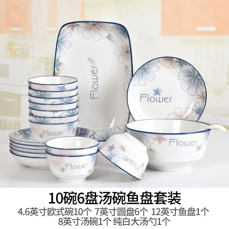 세라믹 요리 및 요리 세트 가정용 세라믹 식기 및 접시 조합 요리 및 접시 밥 그릇 접시 수프 그릇 완전한 세트스토어 가기