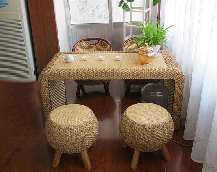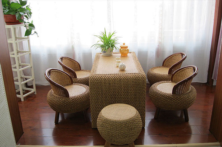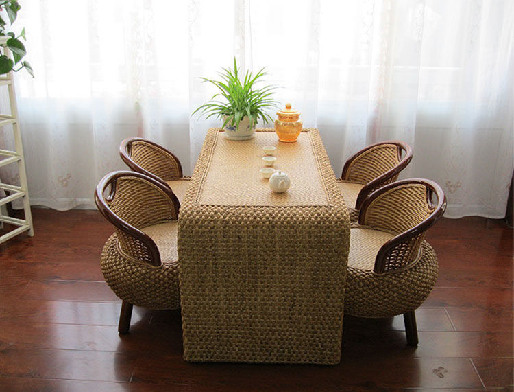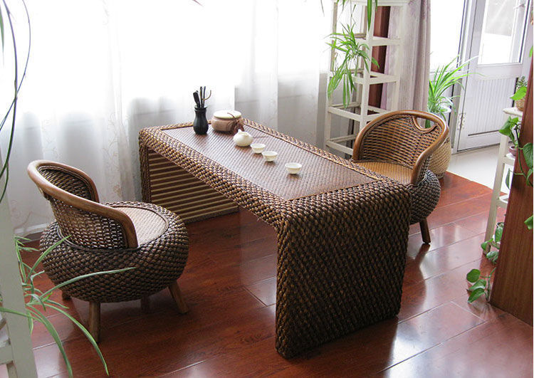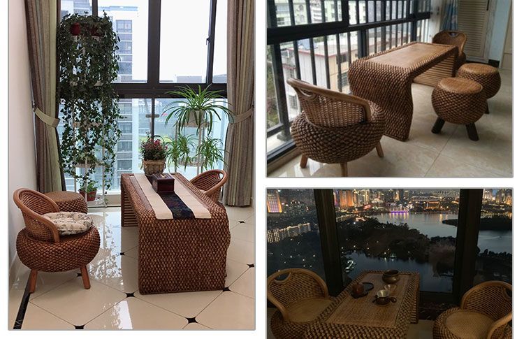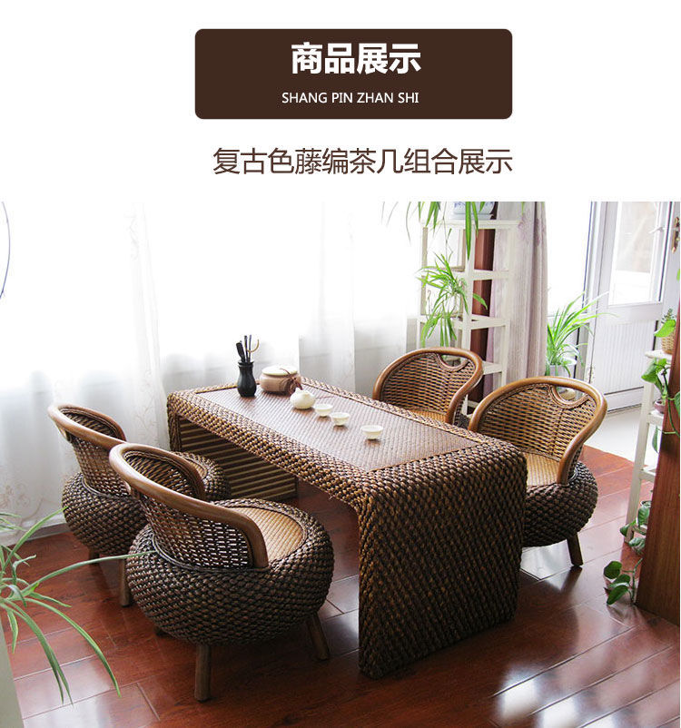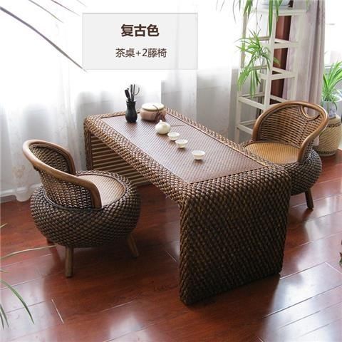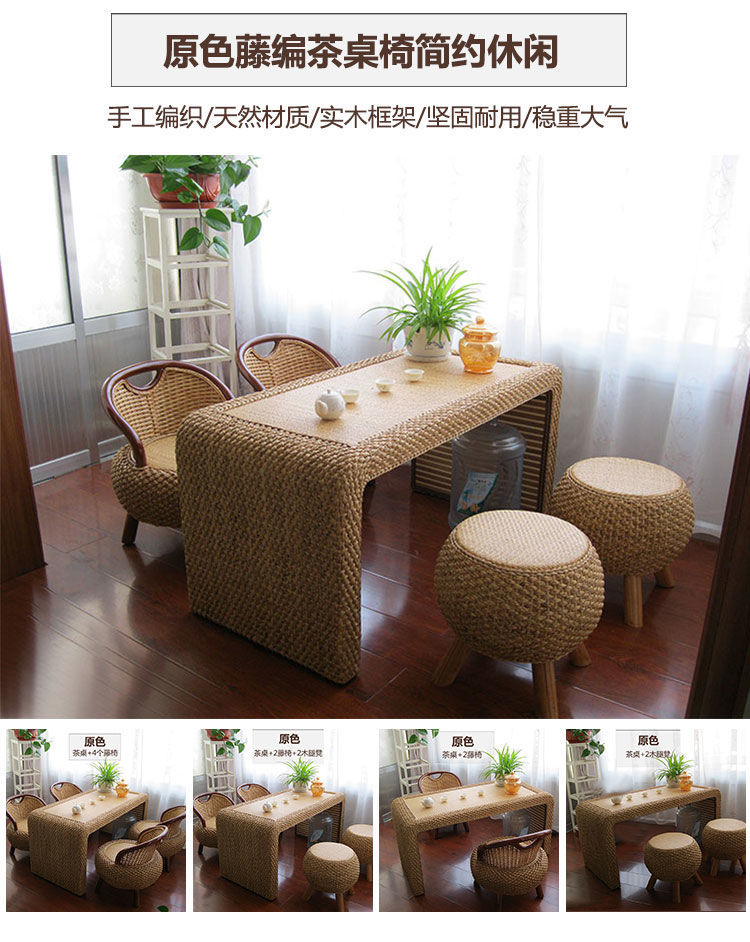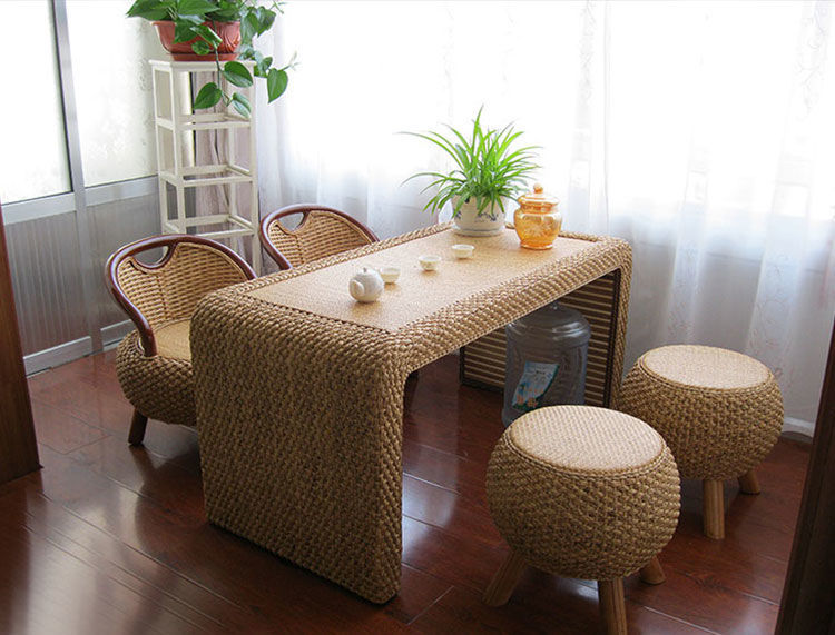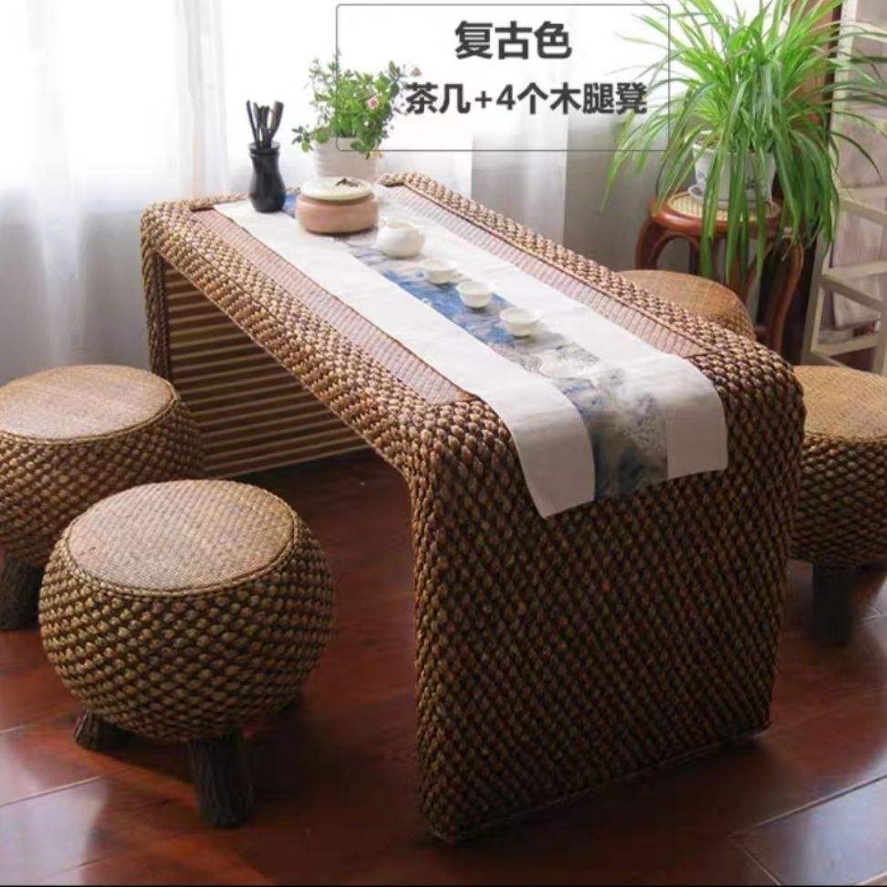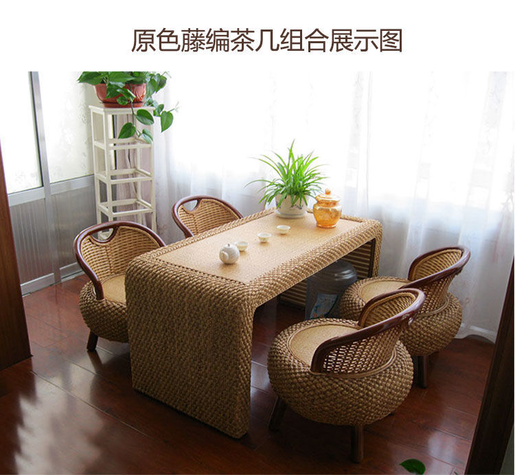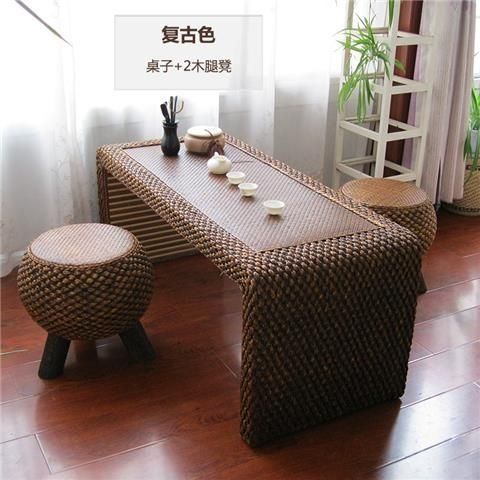 간단한 등나무 거실 커피 테이블 골동품 발코니 차 테이블과 의자 조합 밀짚 타타미 쿵푸 차 테이블 바닥 테이블스토어 가기