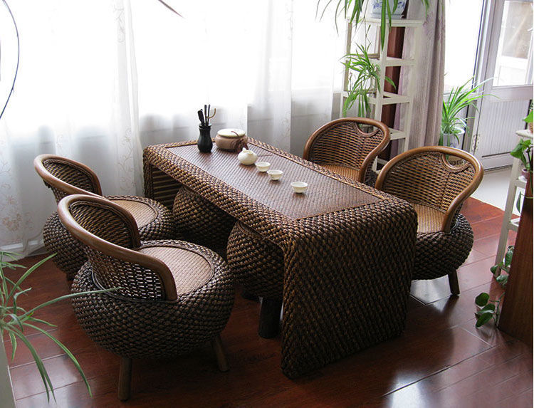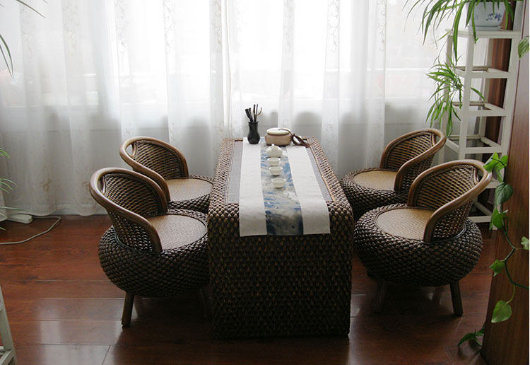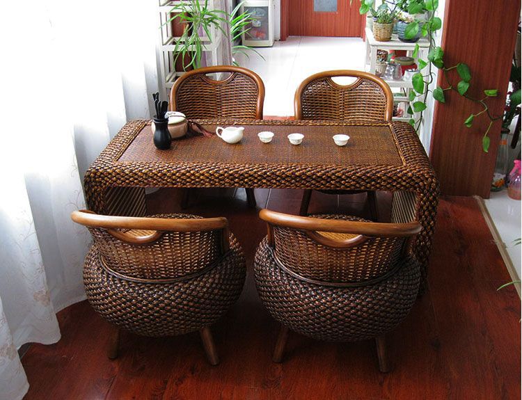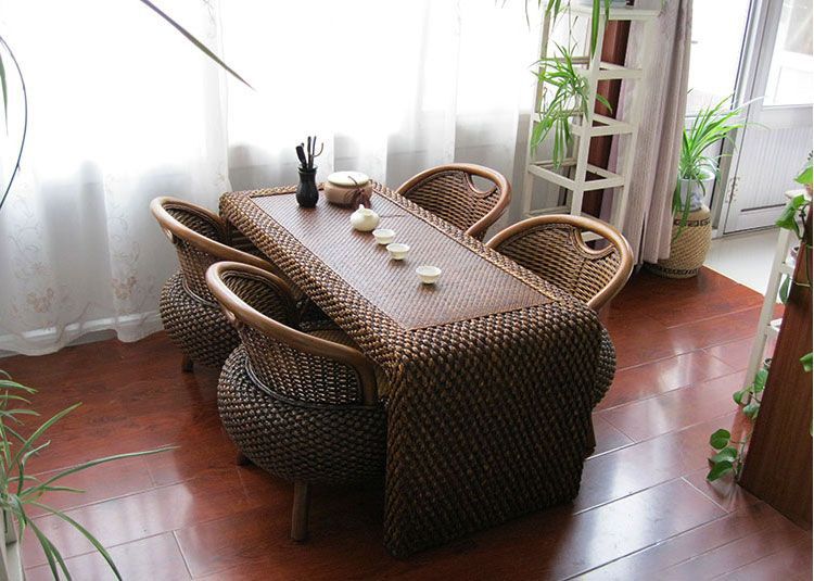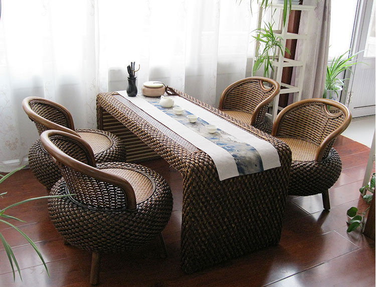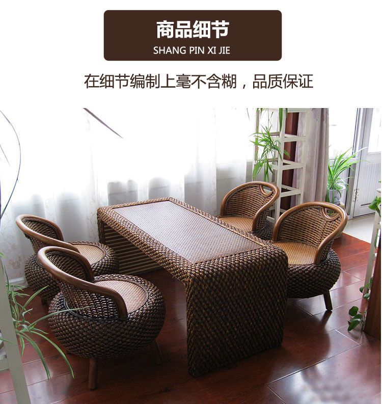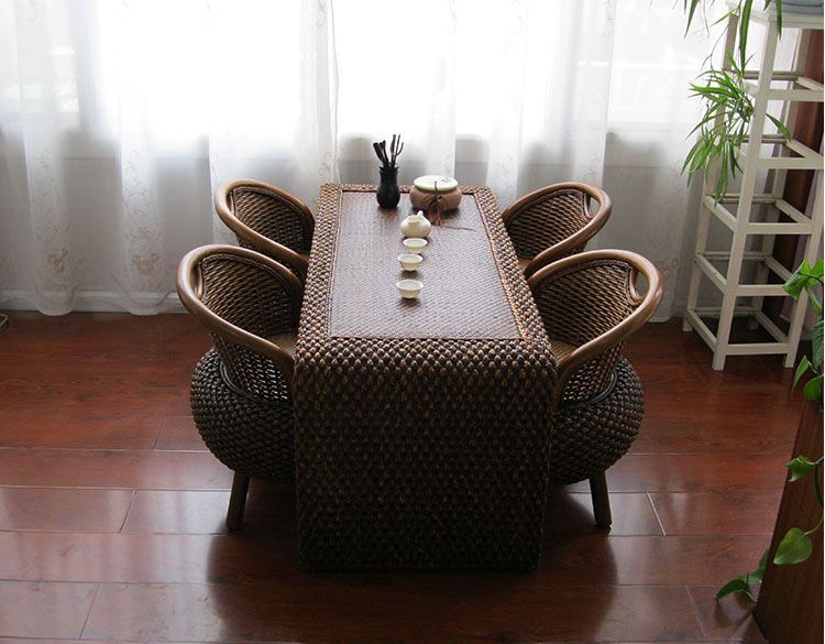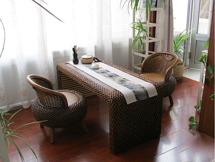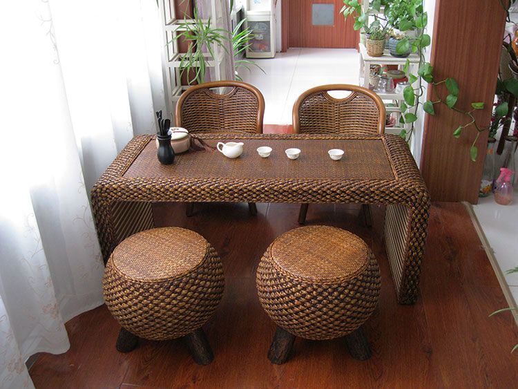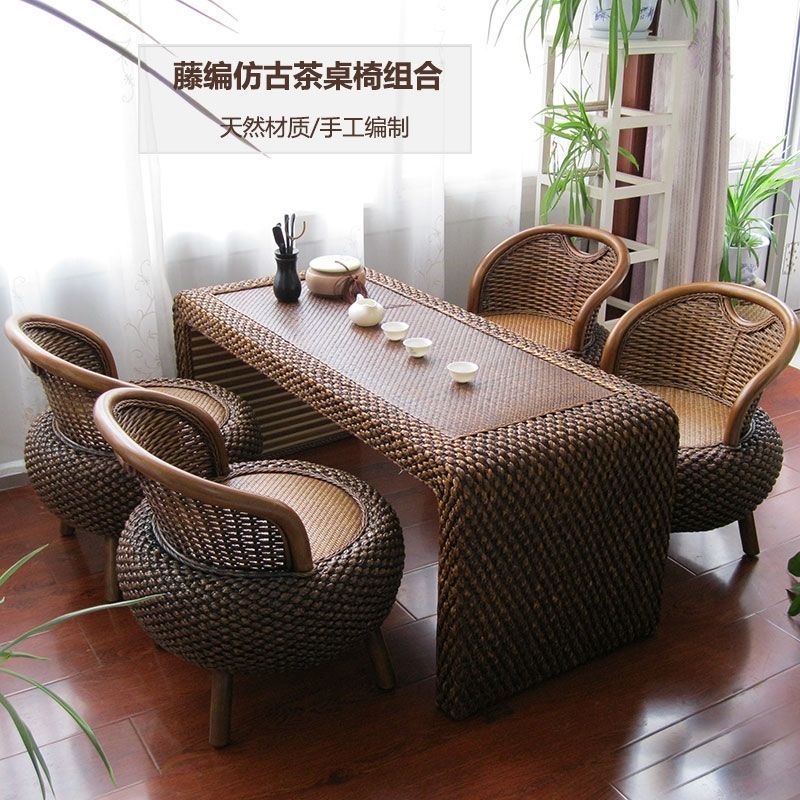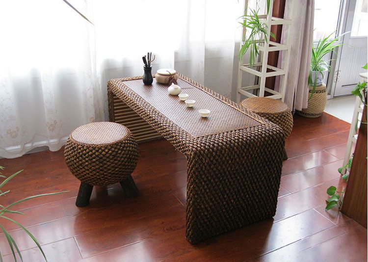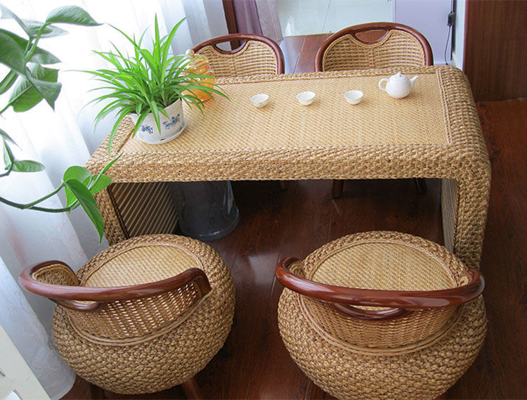 간단한 등나무 거실 커피 테이블 골동품 발코니 차 테이블과 의자 조합 밀짚 타타미 쿵푸 차 테이블 바닥 테이블스토어 가기