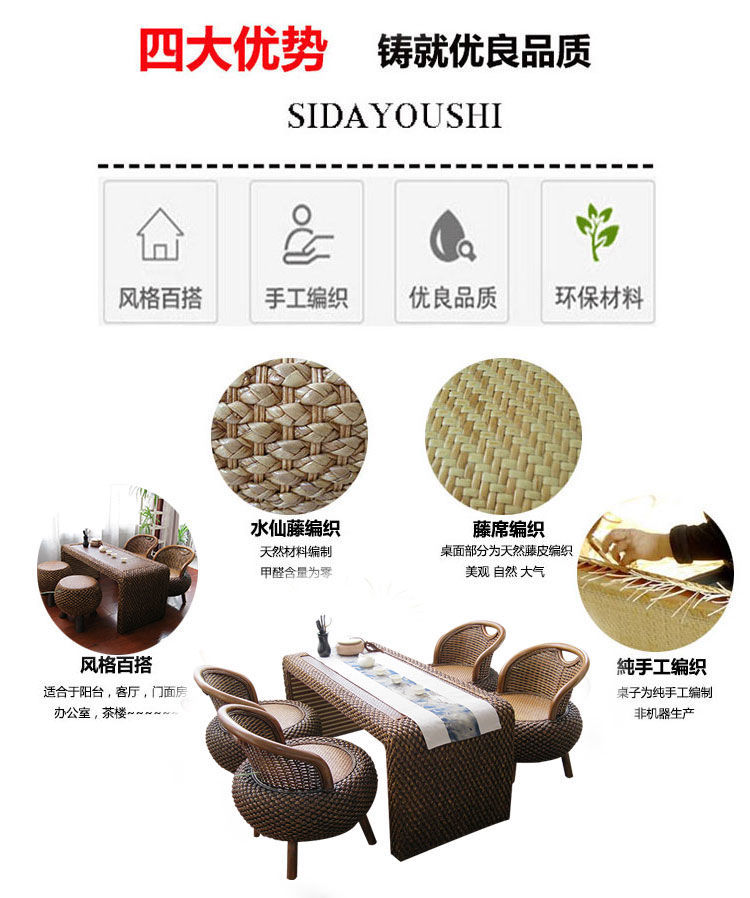 간단한 등나무 거실 커피 테이블 골동품 발코니 차 테이블과 의자 조합 밀짚 타타미 쿵푸 차 테이블 바닥 테이블