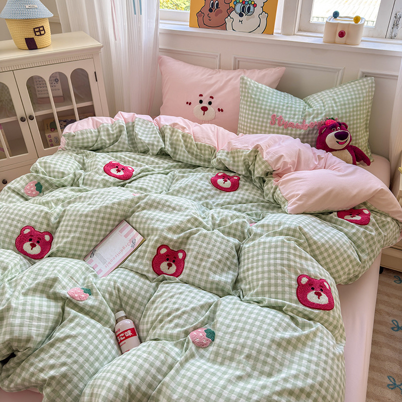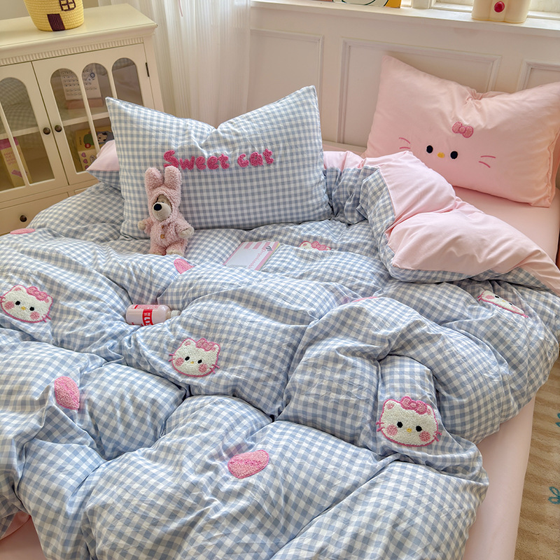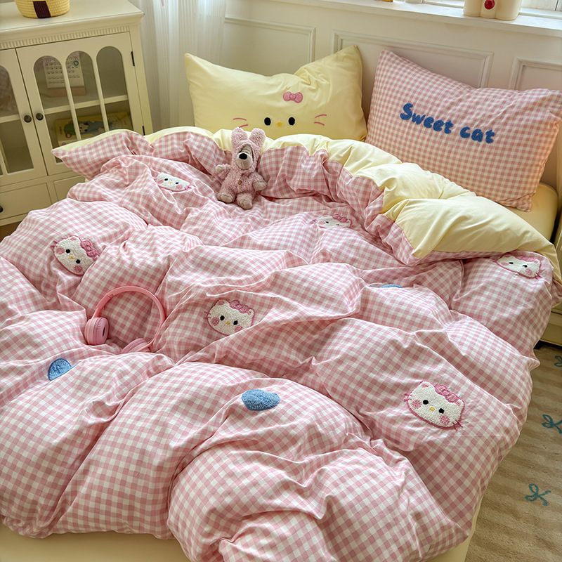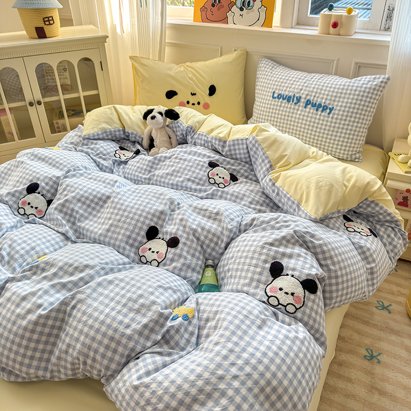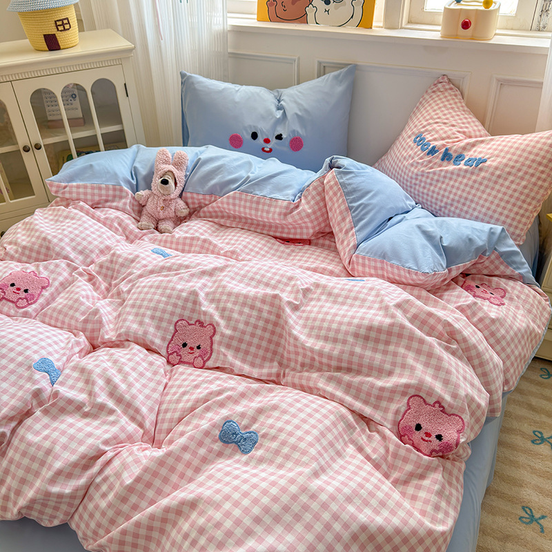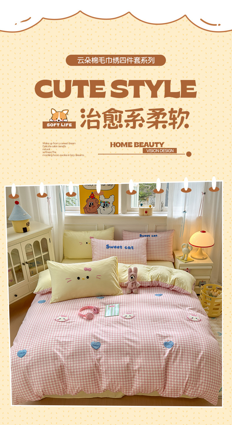 학생 기숙사 침대 시트 퀼트 커버 싱글 피스에 귀여운 소녀 하트 타월 자수 침대 4 피스 세트 만화스토어 가기