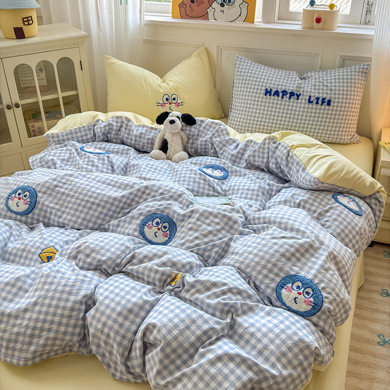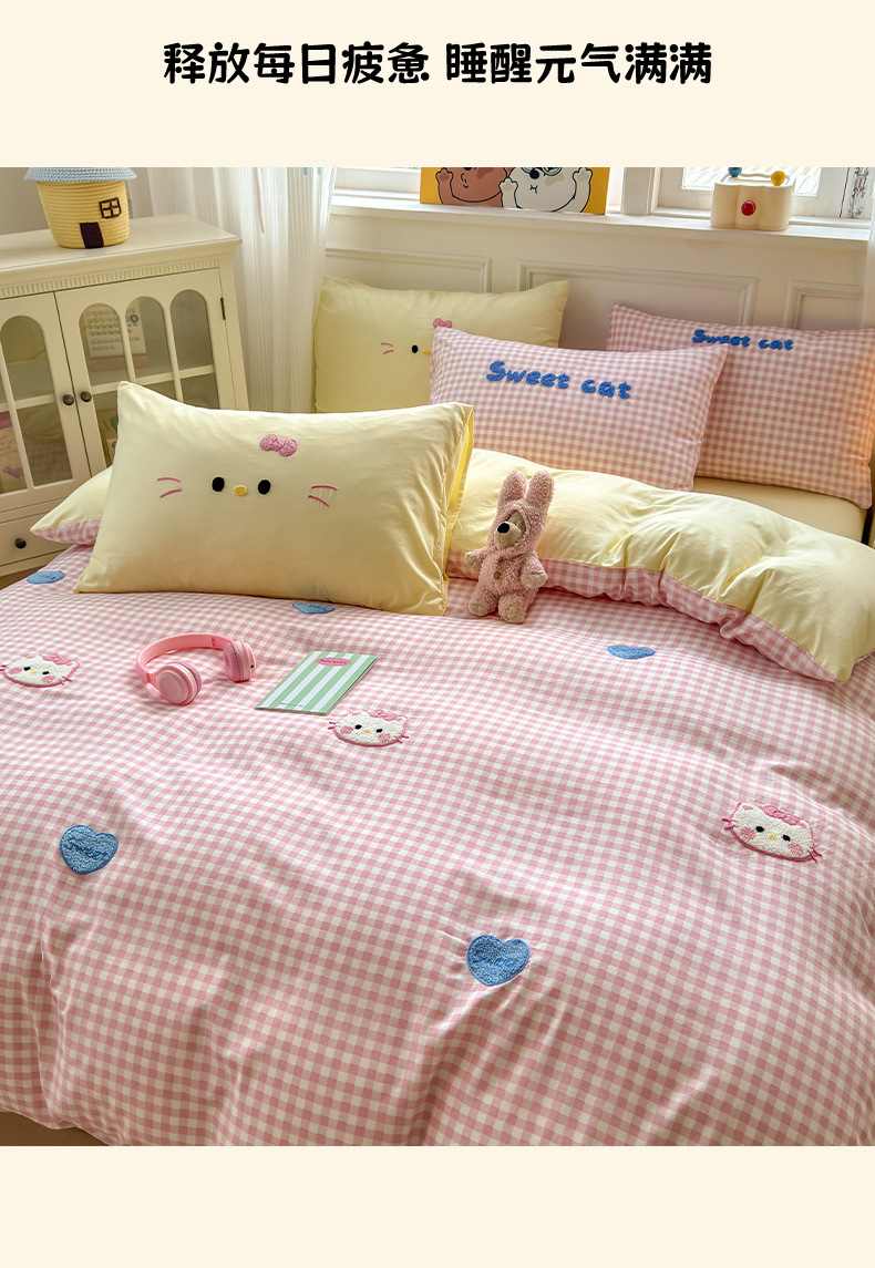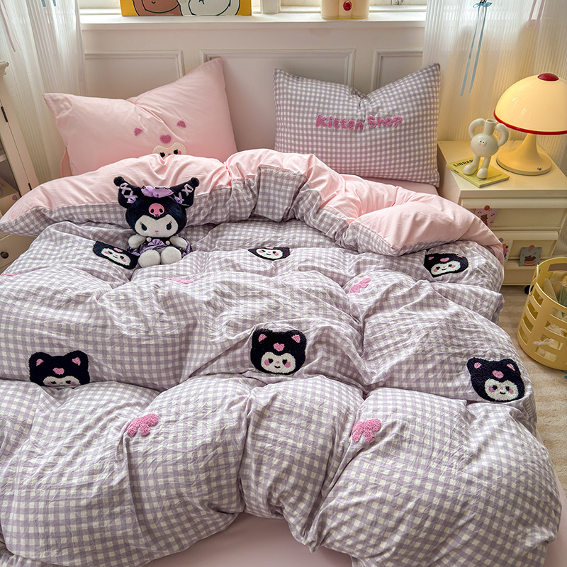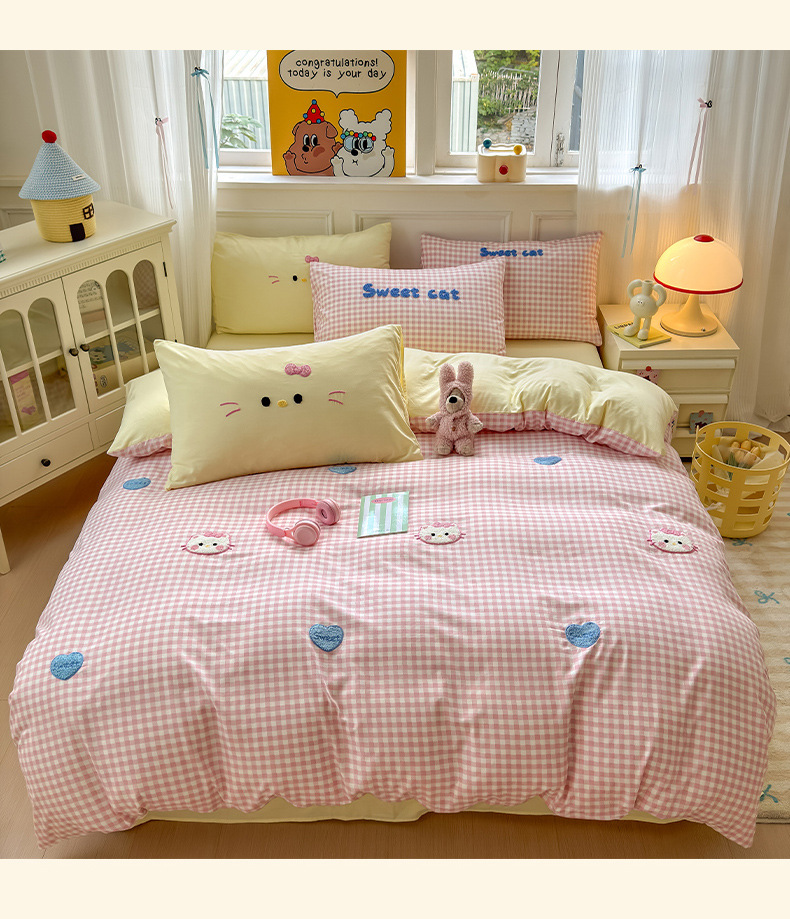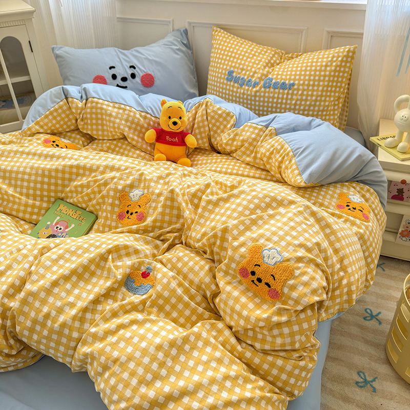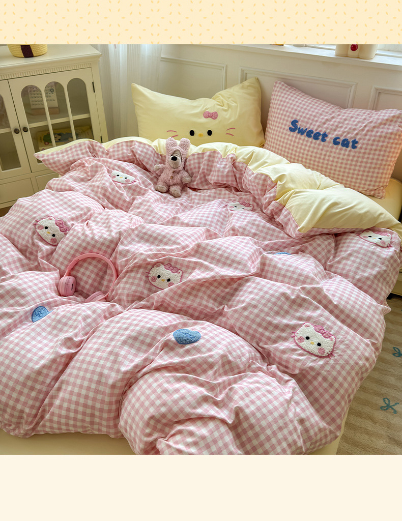 학생 기숙사 침대 시트 퀼트 커버 싱글 피스에 귀여운 소녀 하트 타월 자수 침대 4 피스 세트 만화스토어 가기