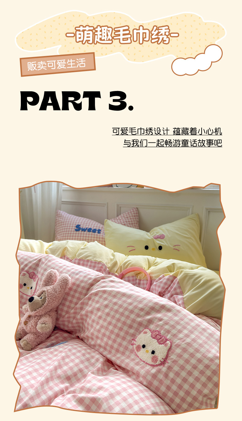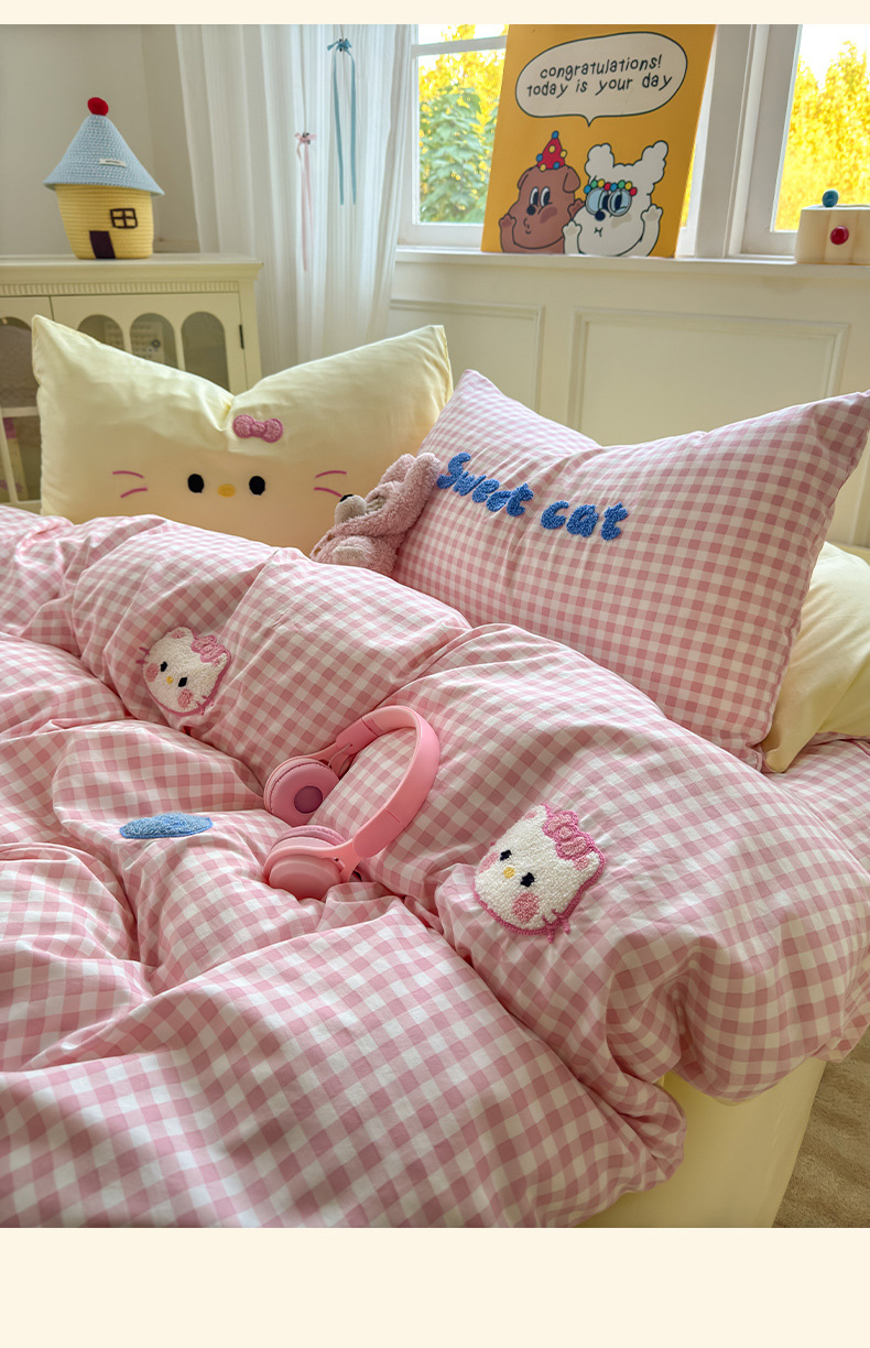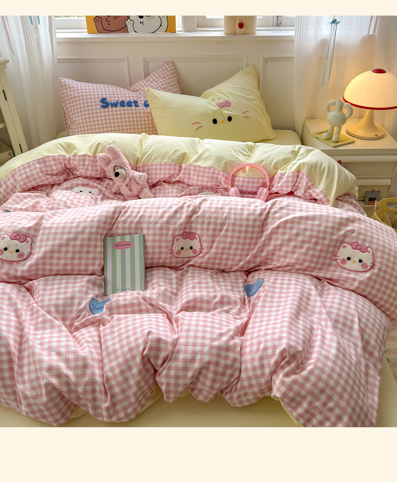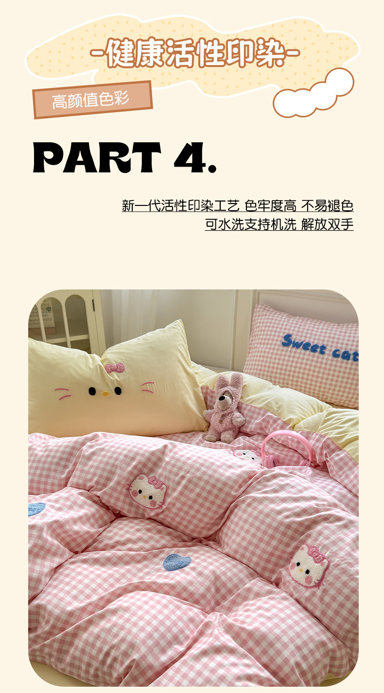 학생 기숙사 침대 시트 퀼트 커버 싱글 피스에 귀여운 소녀 하트 타월 자수 침대 4 피스 세트 만화스토어 가기