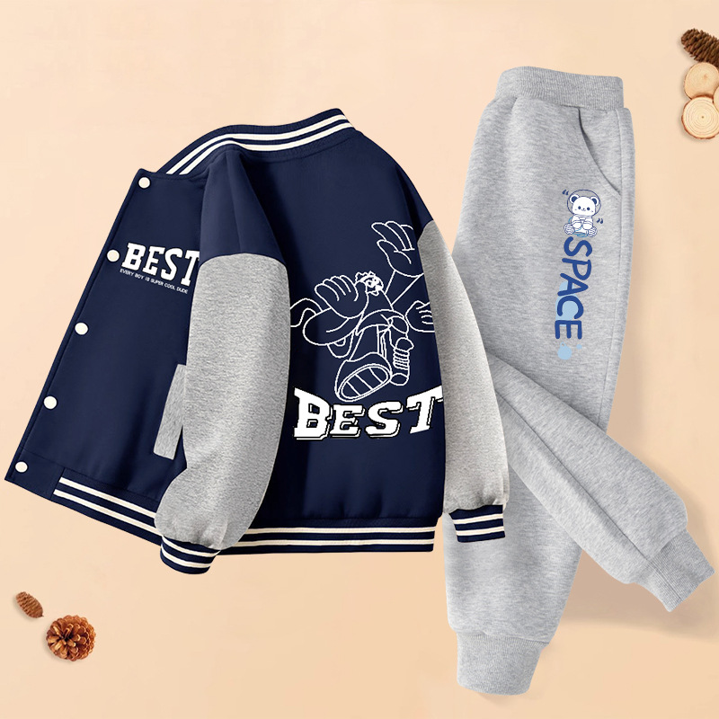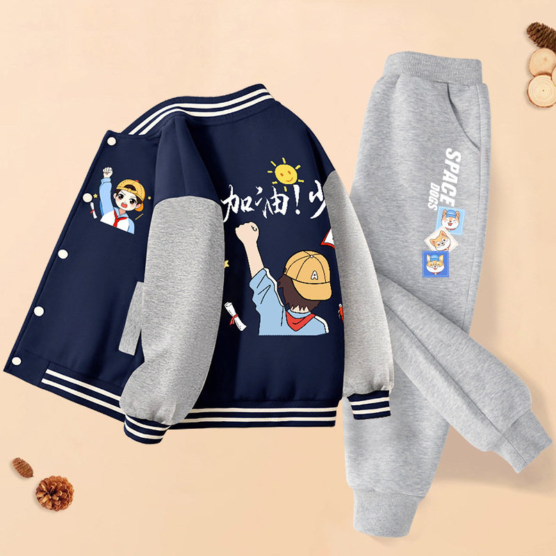 남학생 '투피스 2025 신설 봄 · 가을 어린이 야구 세트 재킷 바지 소년 중 · 대형 어린이 잘 생긴 옷스토어 가기
