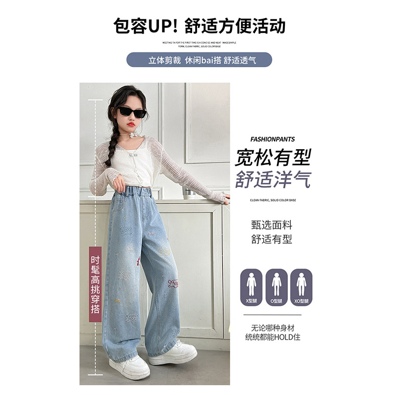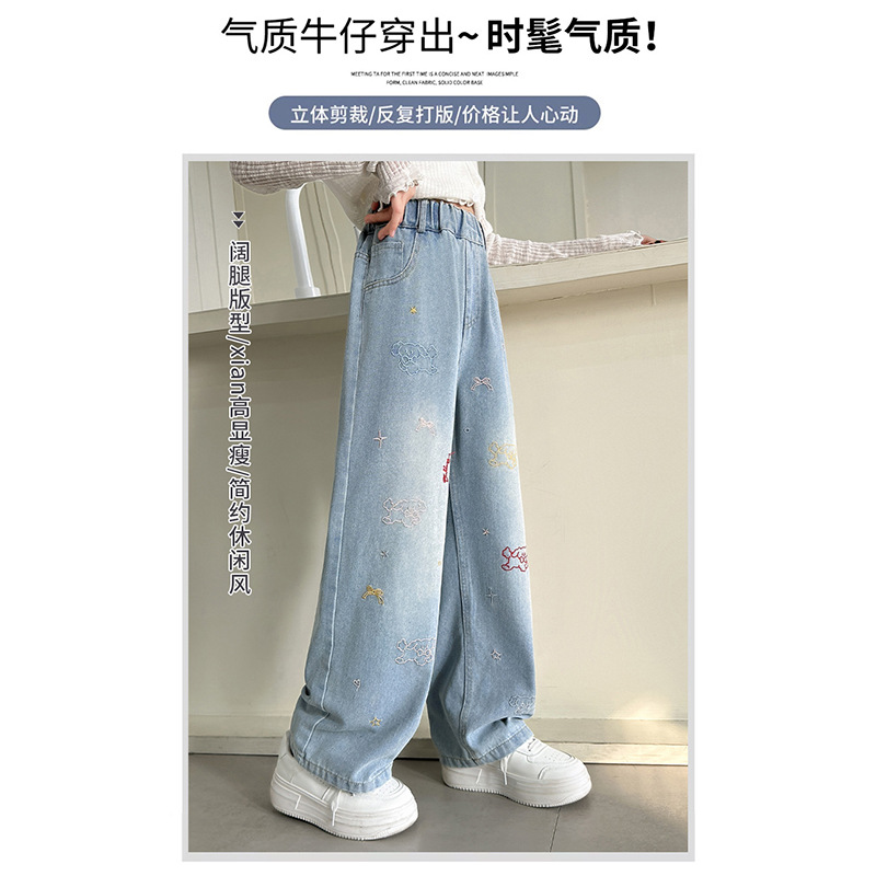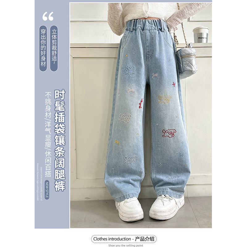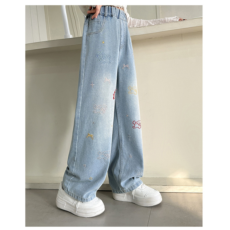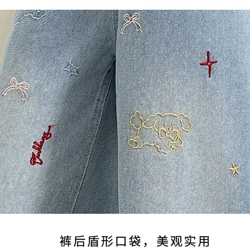 소녀 서양식 청바지 2025 봄 새 도착 한국식 느슨한 올매치 스트레이트 바지 강아지 자수 와이드 레그 바지스토어 가기