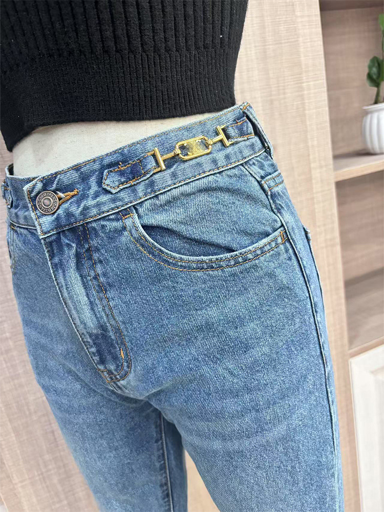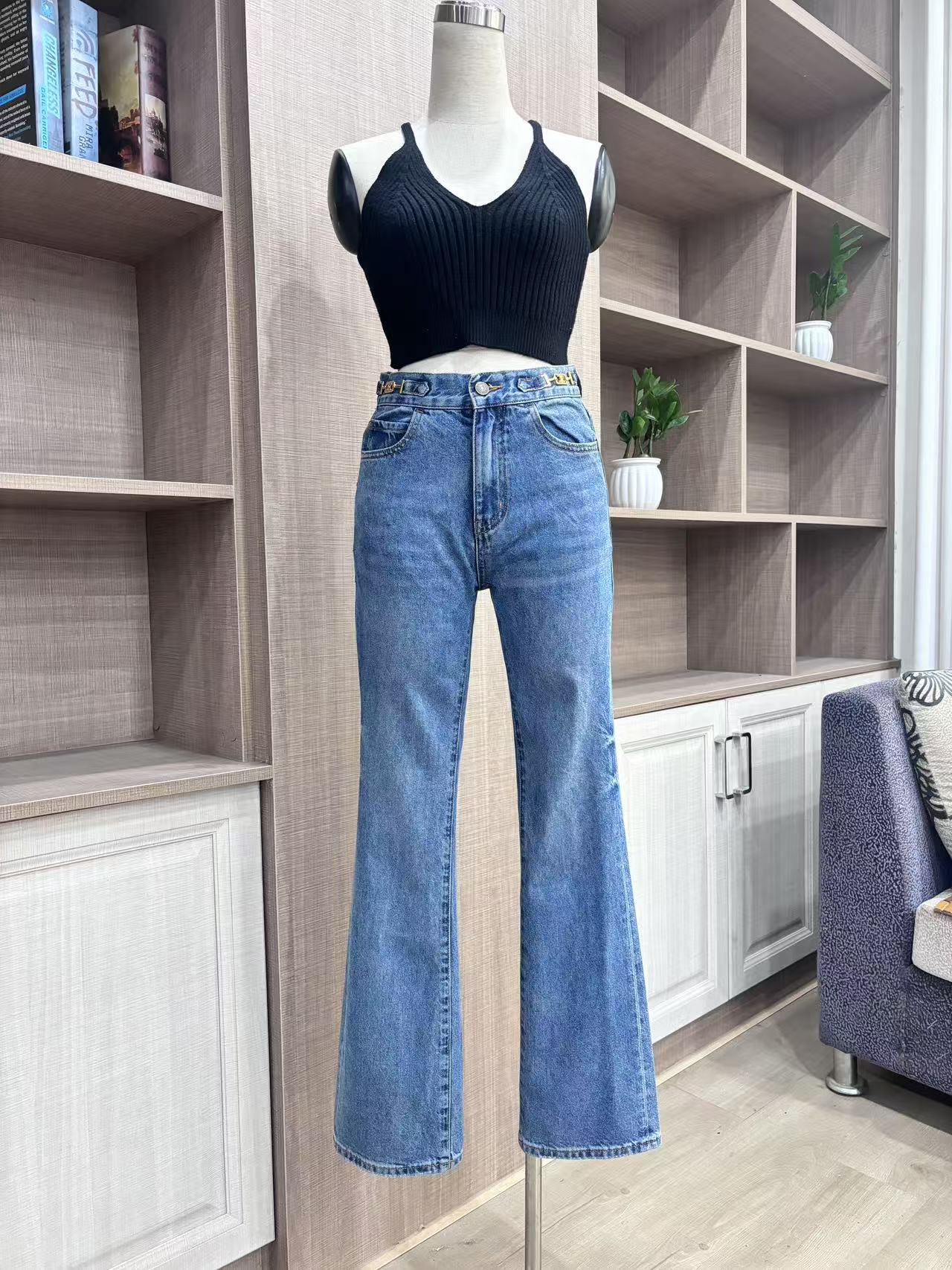 Liu Shi Di와 동일한 스타일의 블루 프렌치 레트로 하이웨이스트 마이크로 플레어 팬츠, 루즈한 와이드 레그 청바지, 블랙 PU 가죽 자켓스토어 가기