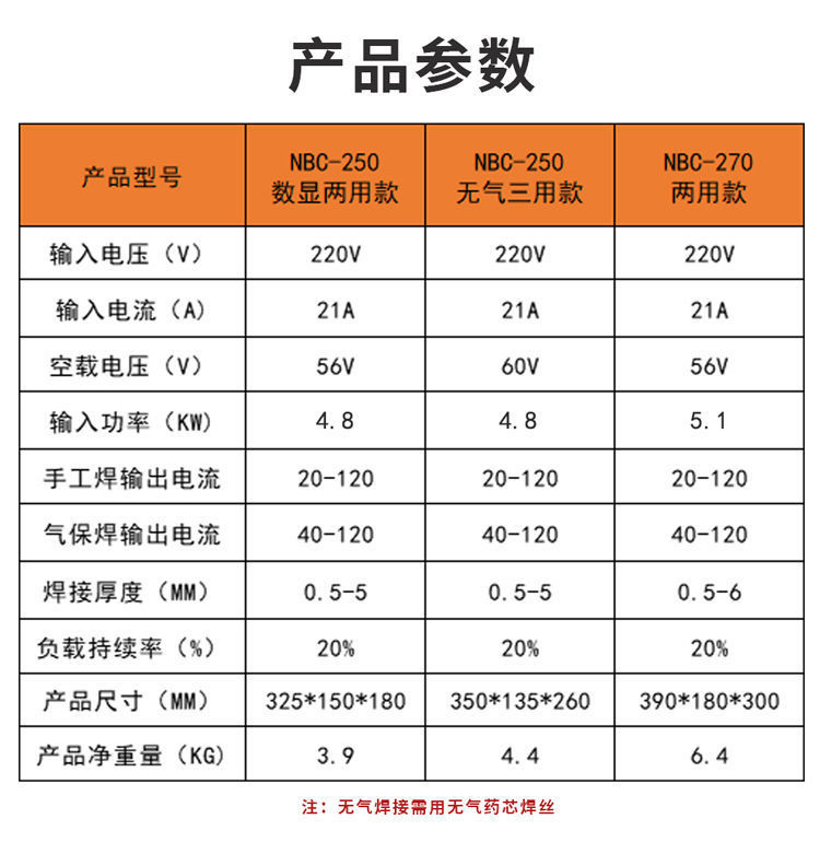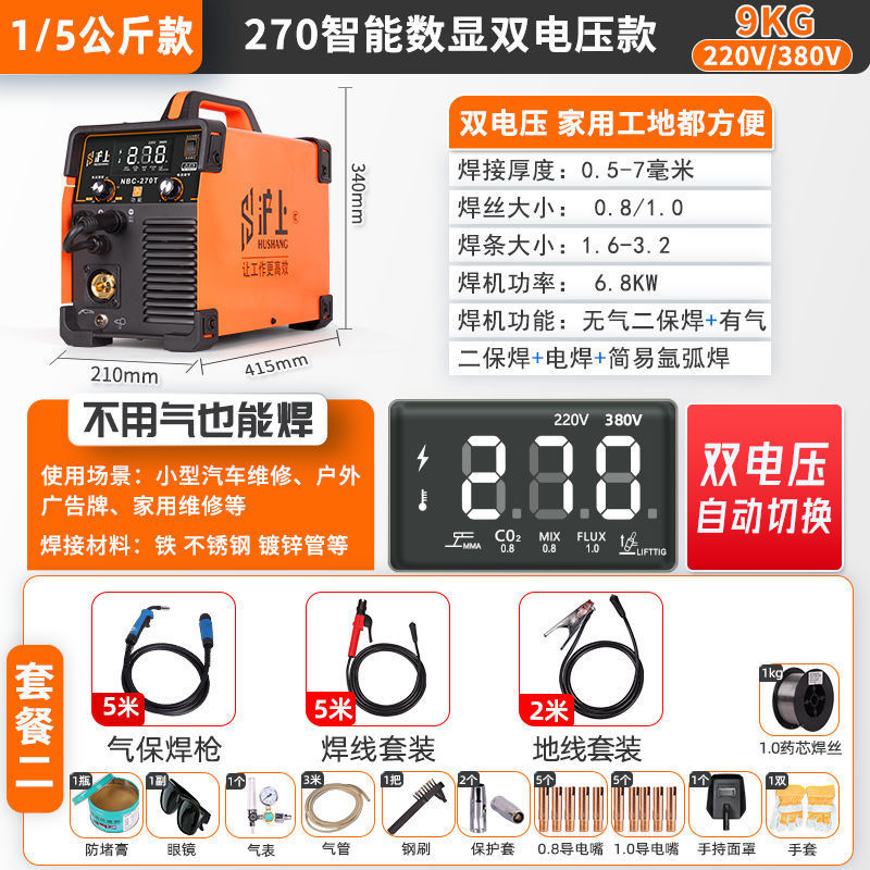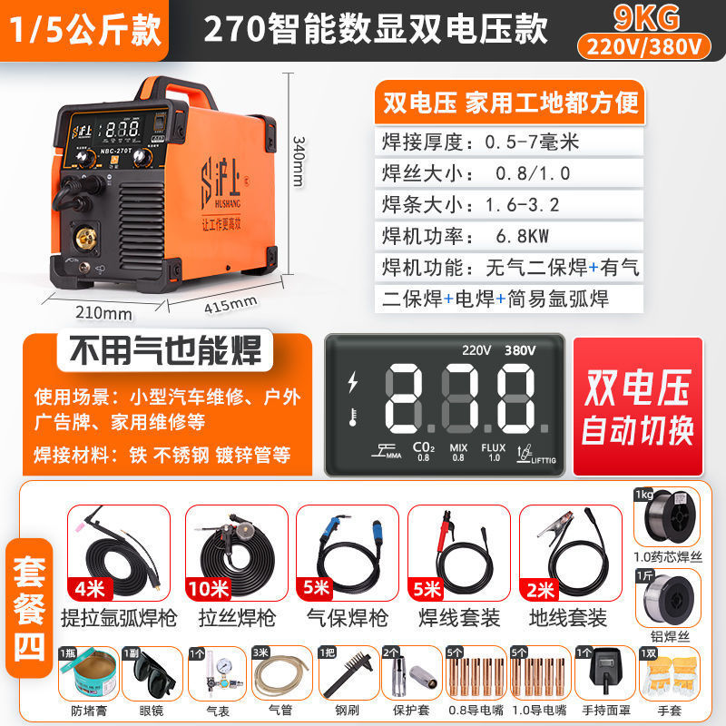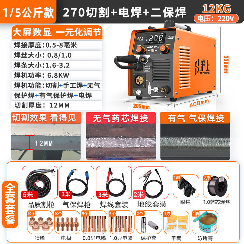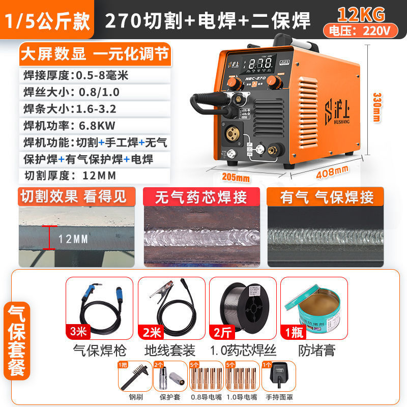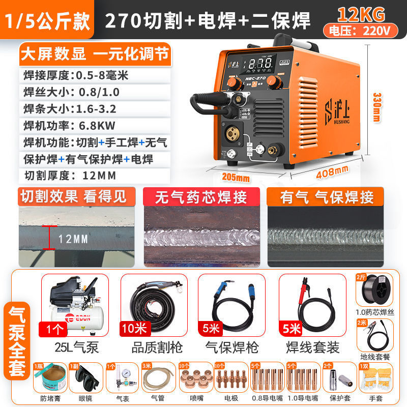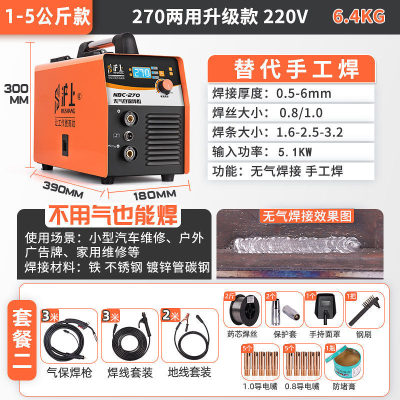 • 270 절단 + 가스 보호 + 전기 용접 가스리스 패키지