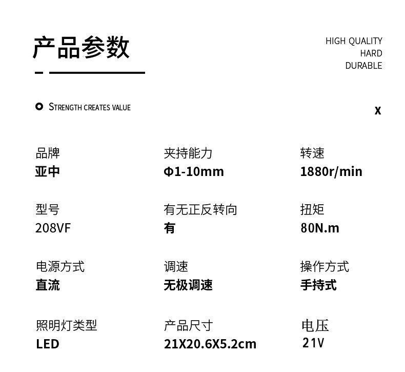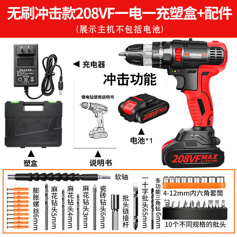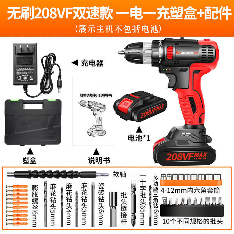 • 듀얼 스피드 208VF 배터리 1개 및 충전 종이 상자 1개 + 비트
