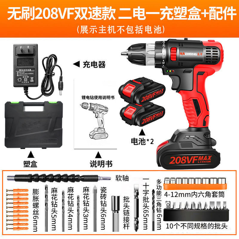• 듀얼 스피드 208VF 배터리 2개 및 충전 종이 상자 1개 + 비트