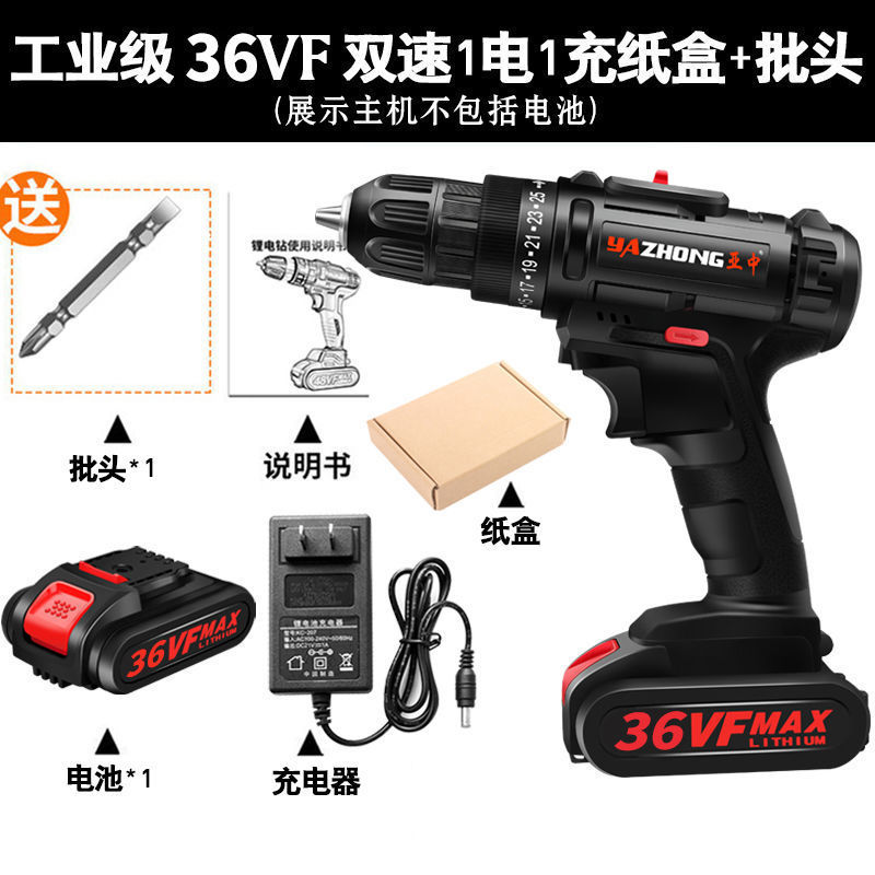 • 듀얼 스피드 36VF 배터리 2개 및 충전 종이 상자 1개 + 비트