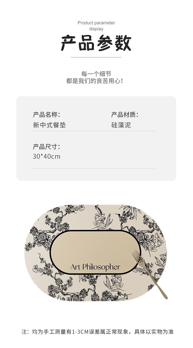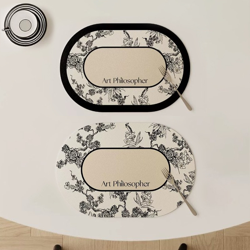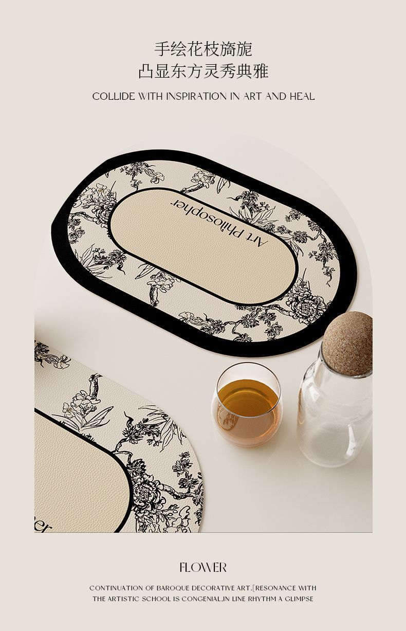 새로운 중국 스타일 Placemat 의식 고급 흡수성 미끄럼 방지 코스터 워시프리 지울 수 있는 열 절연 디너 플레이트 접시 접시
