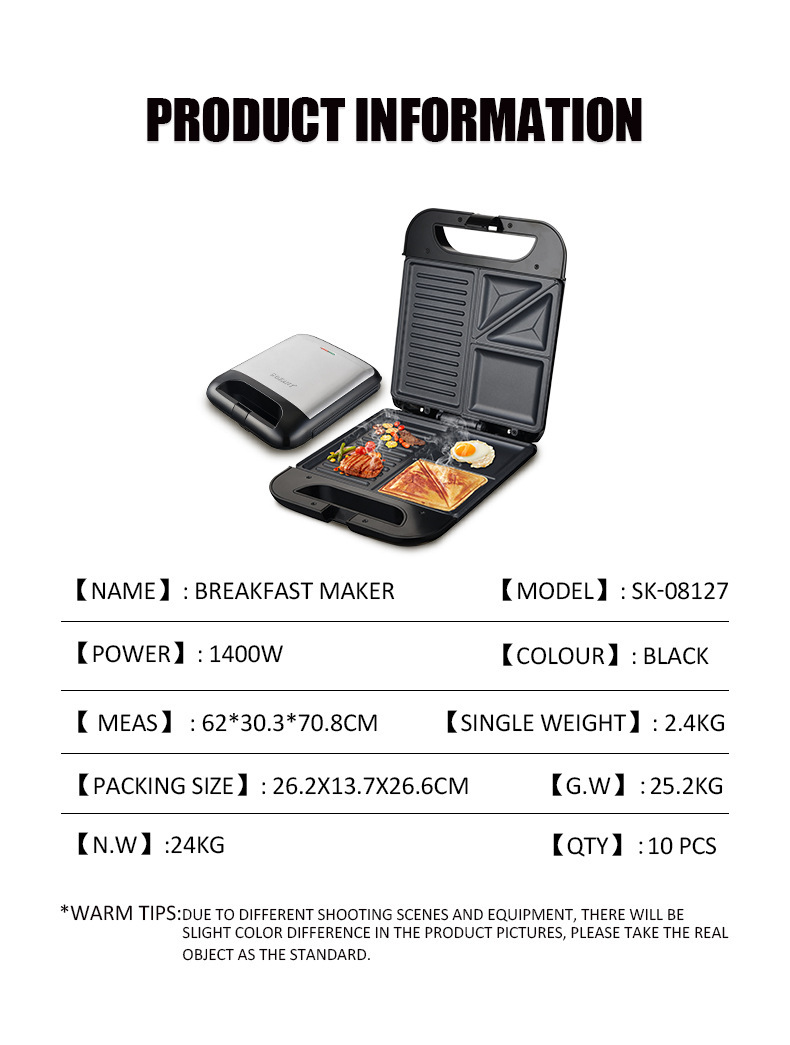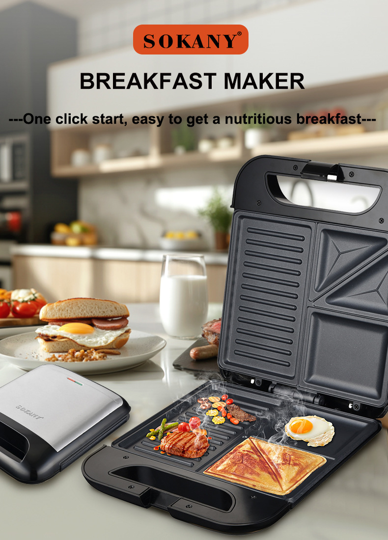 국경 유럽 스타일의 샌드위치 아침 식사 기계 미니 스테이크 기계 다기능 케이크 기계 구운 빵 플랫 삼각형 오믈렛