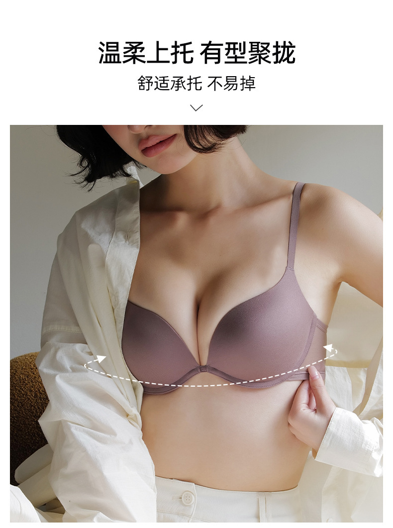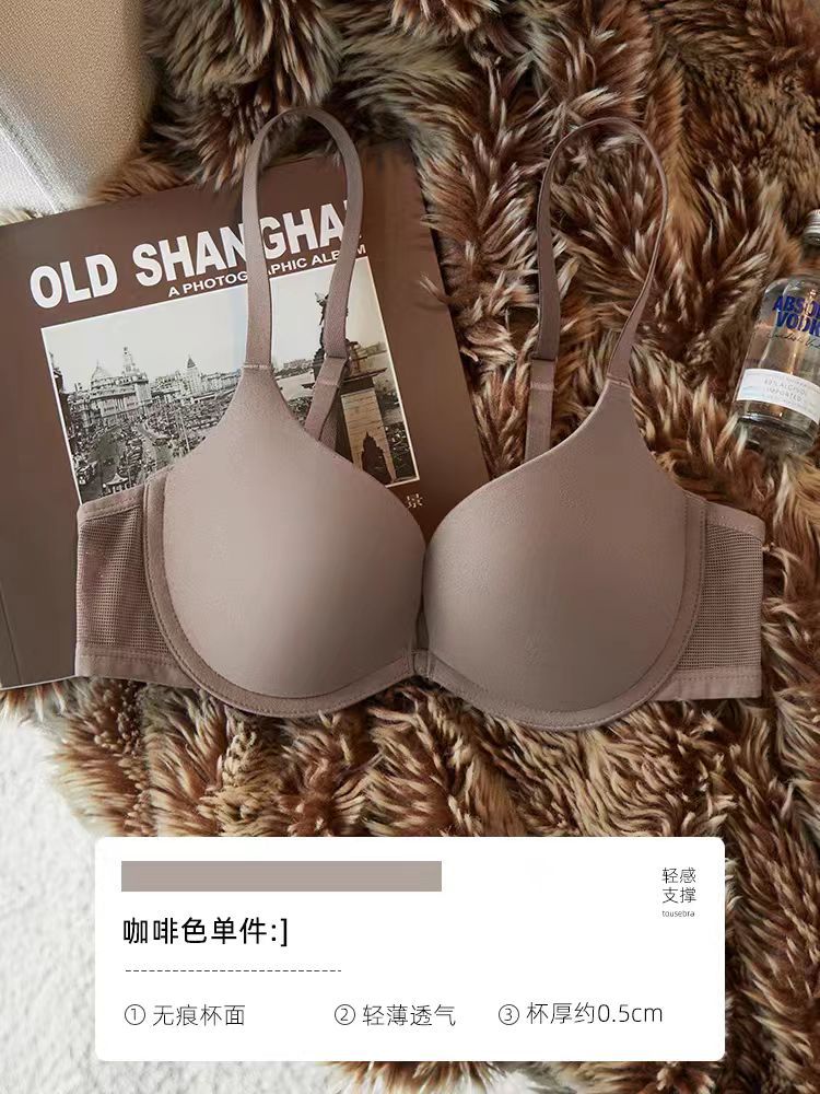 도매 원활한 속옷 여성의 여름 작은 가슴은 얇은 원활한 섹시한 깊은 V-top 통기성 크로스 보더 브래지어를 모았습니다.스토어 가기