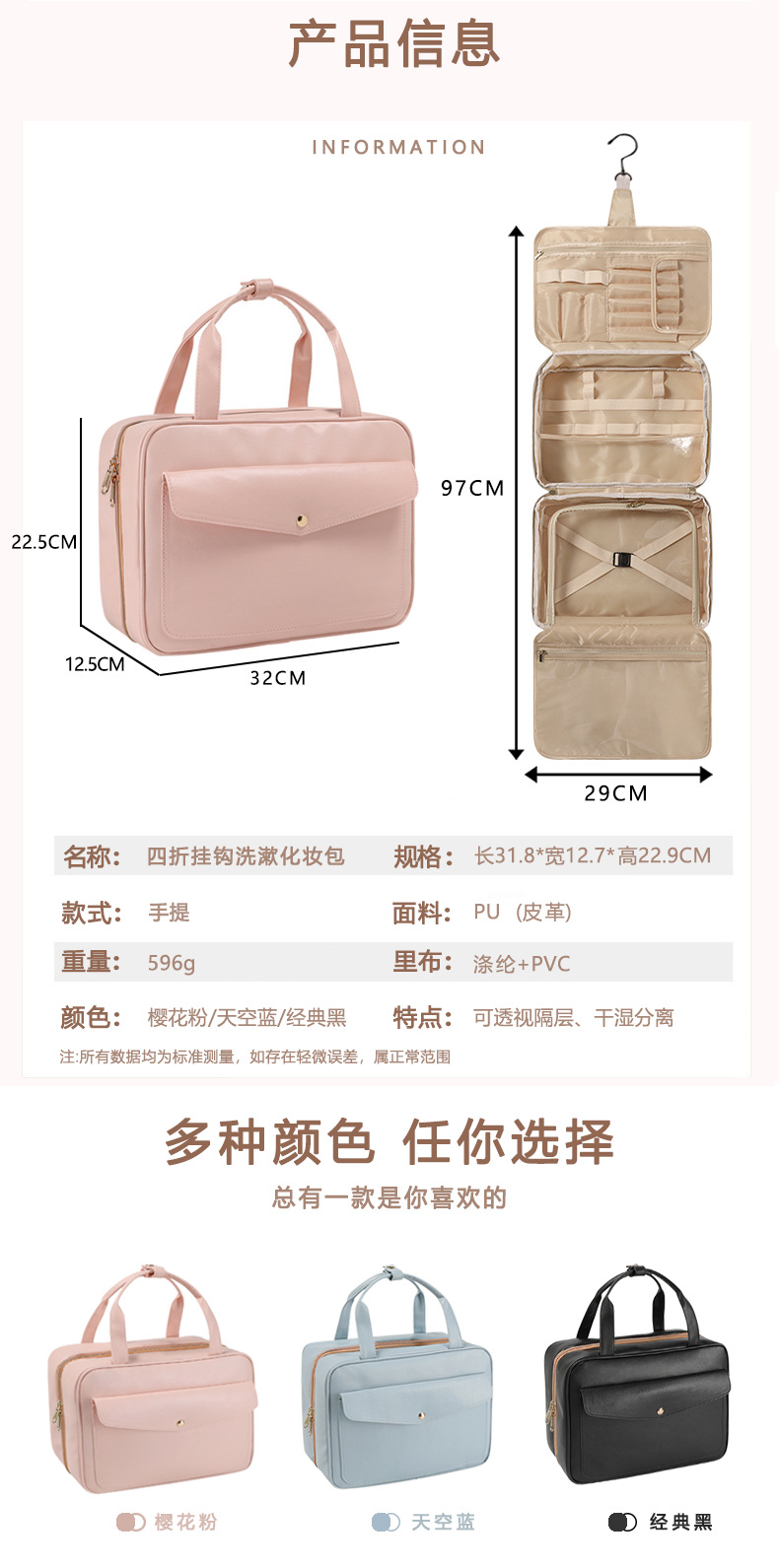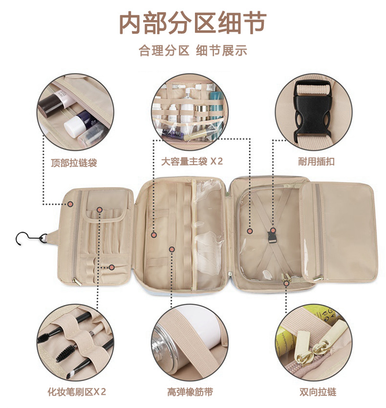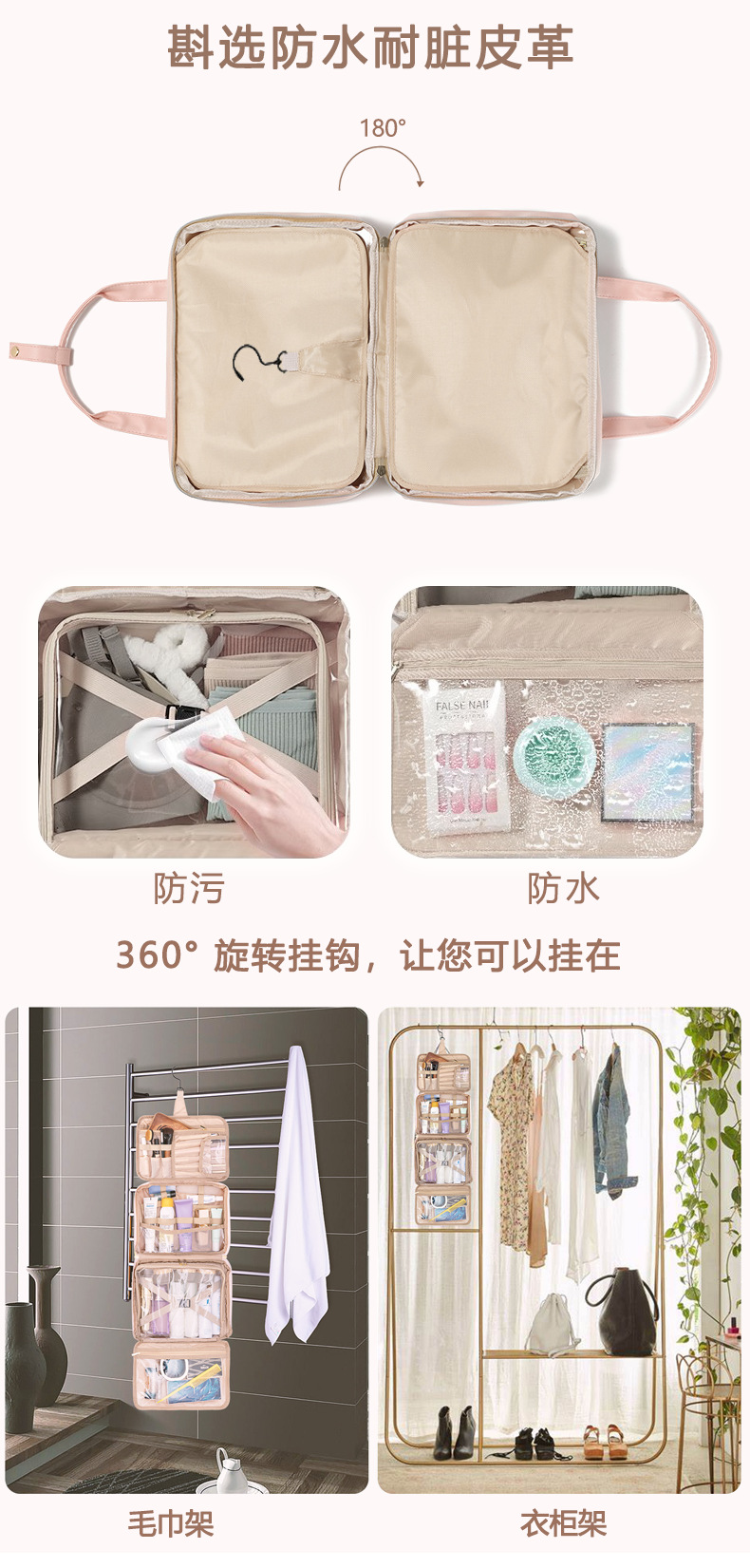 亚马逊四折挂钩旅行洗漱收纳包袋高级感防水大容量化妆包分区分层
