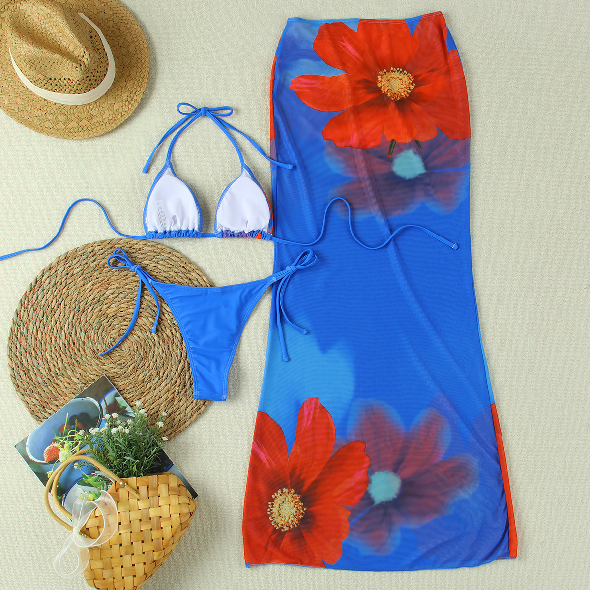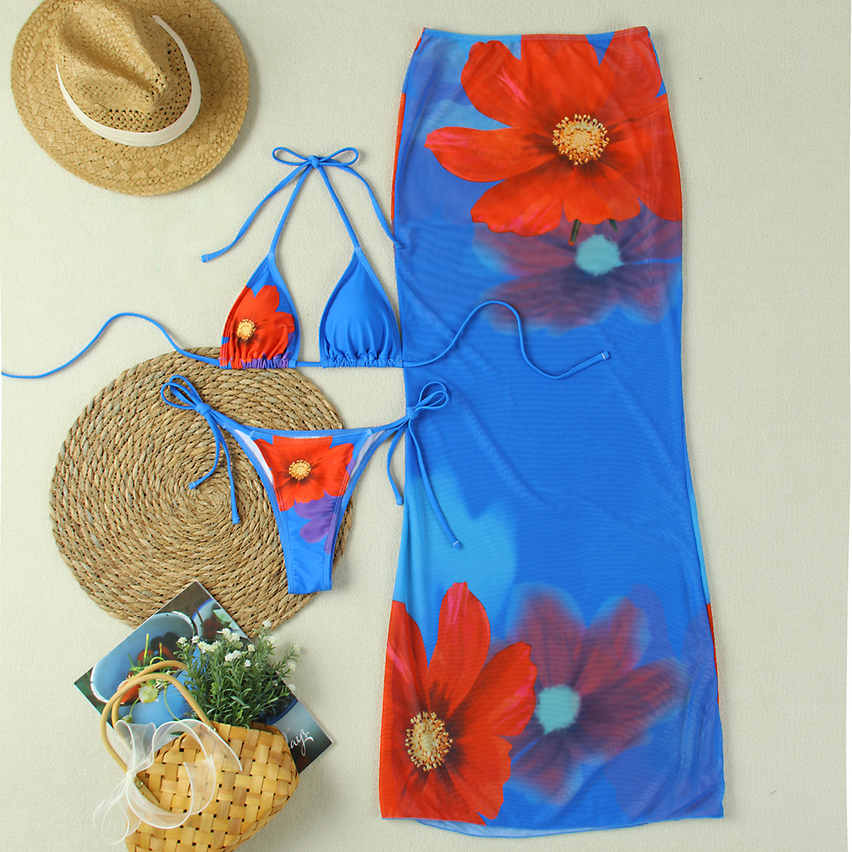 2025 새로운 인쇄 여성 3 피스 비키니 수영복 하이 웨이스트 슬림 패션 유럽과 미국의 패션 스타일