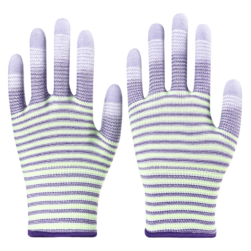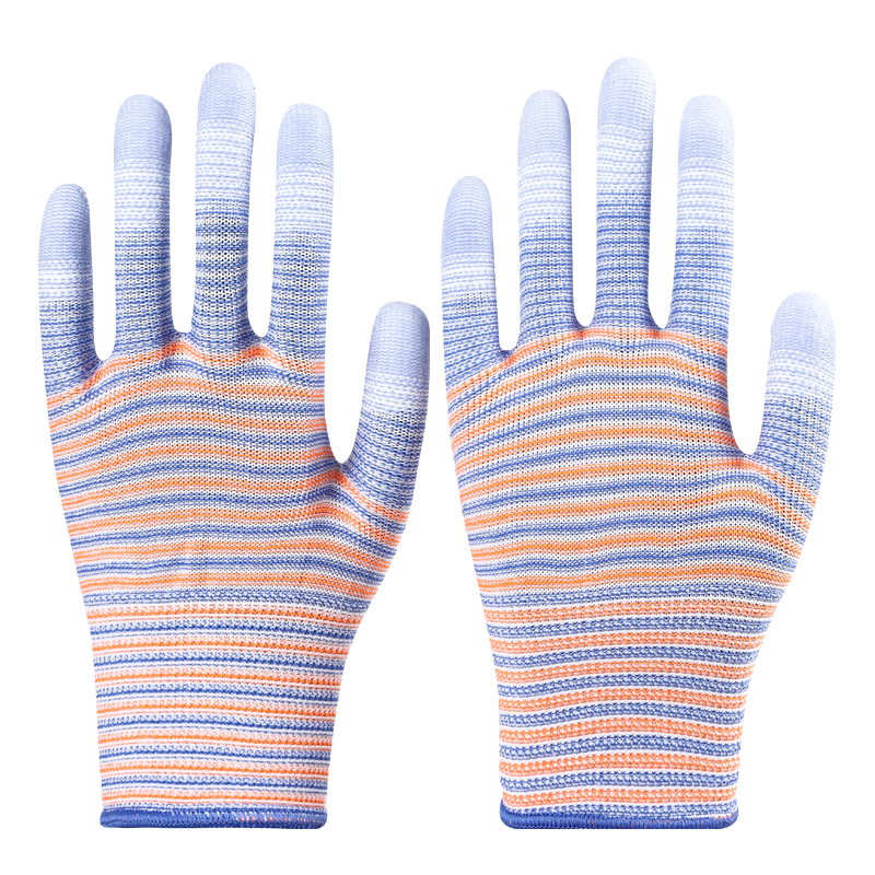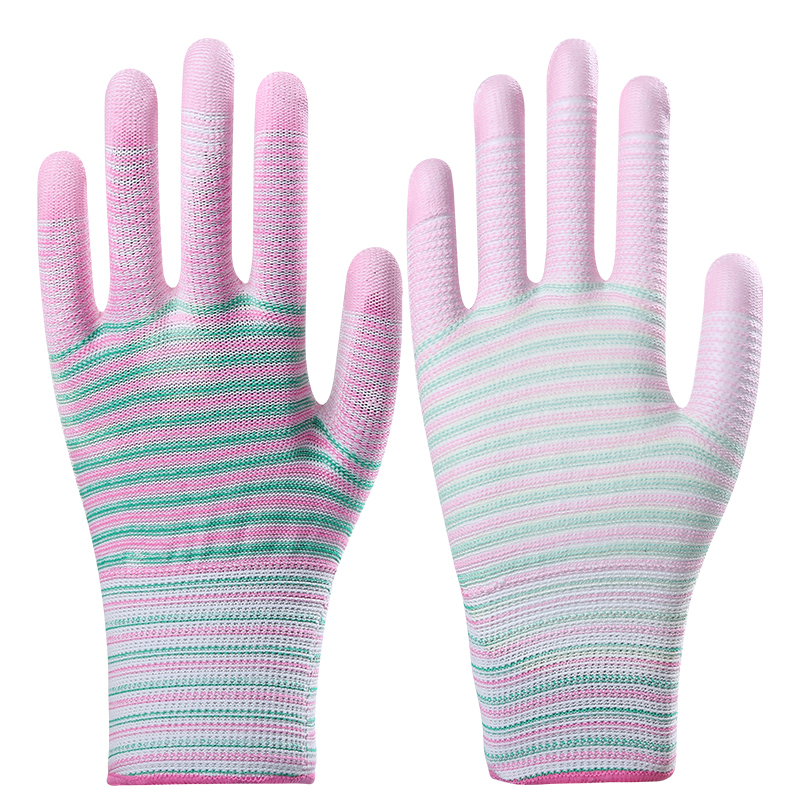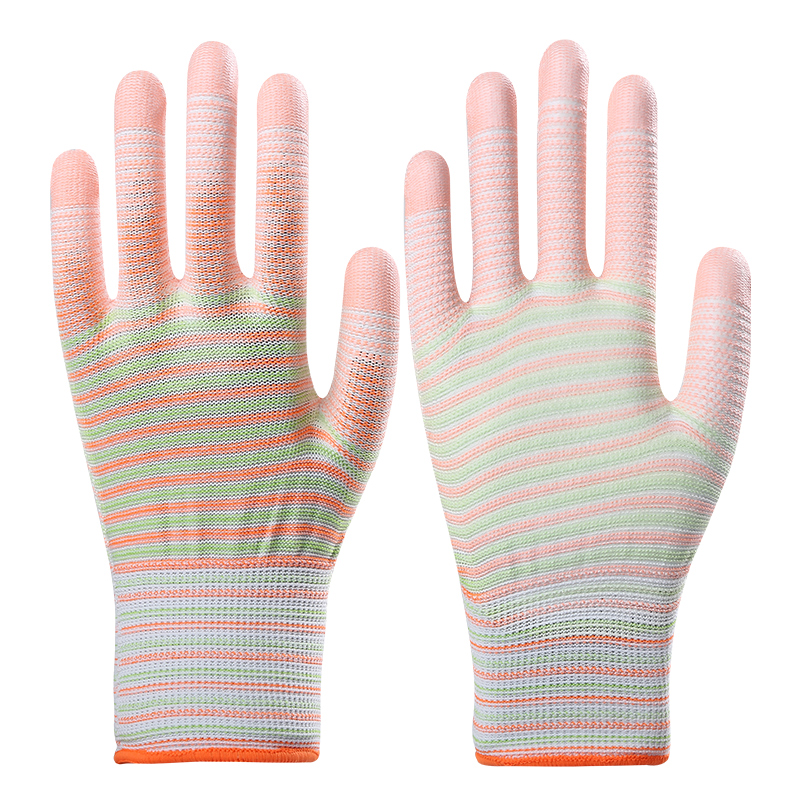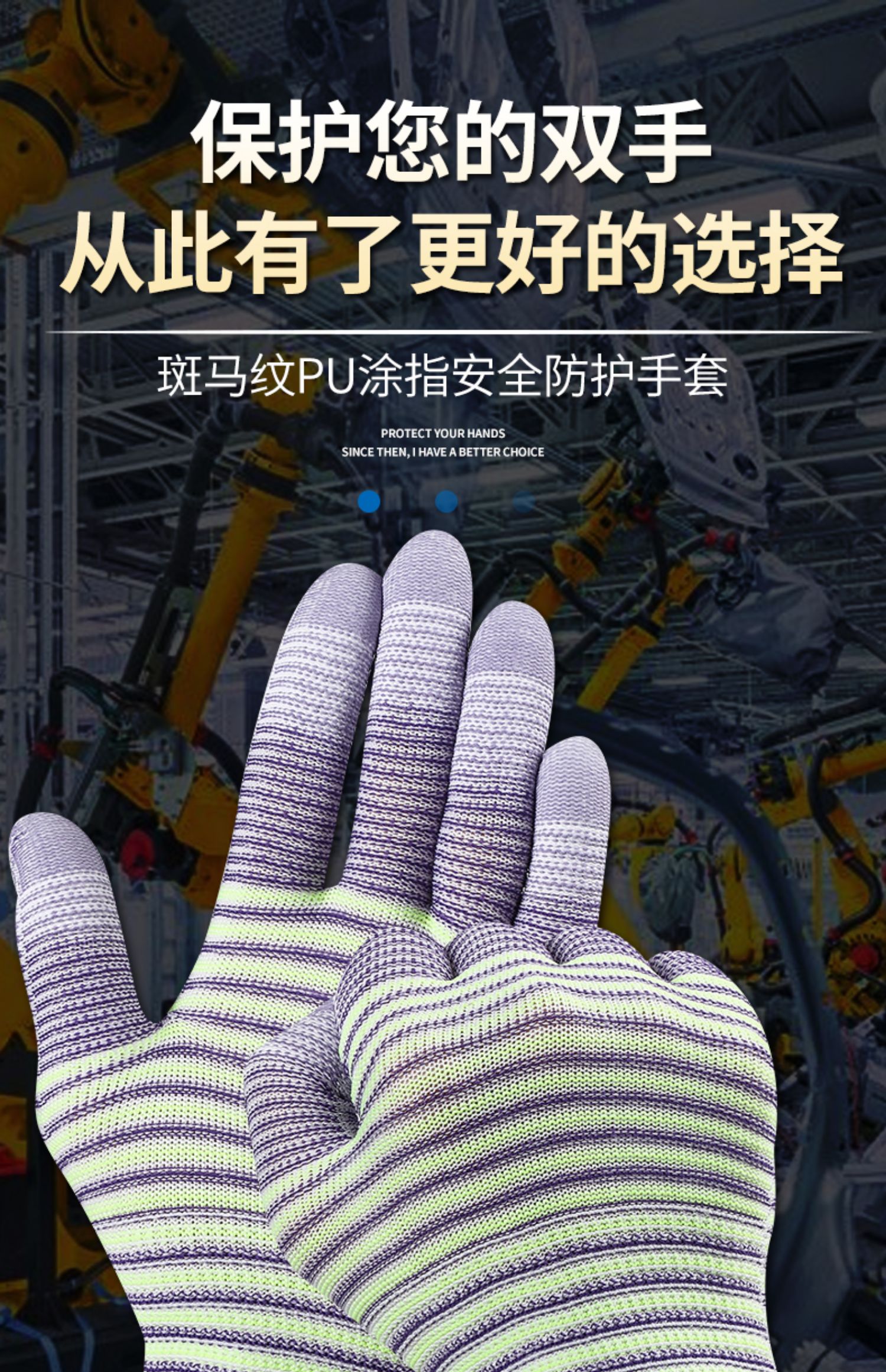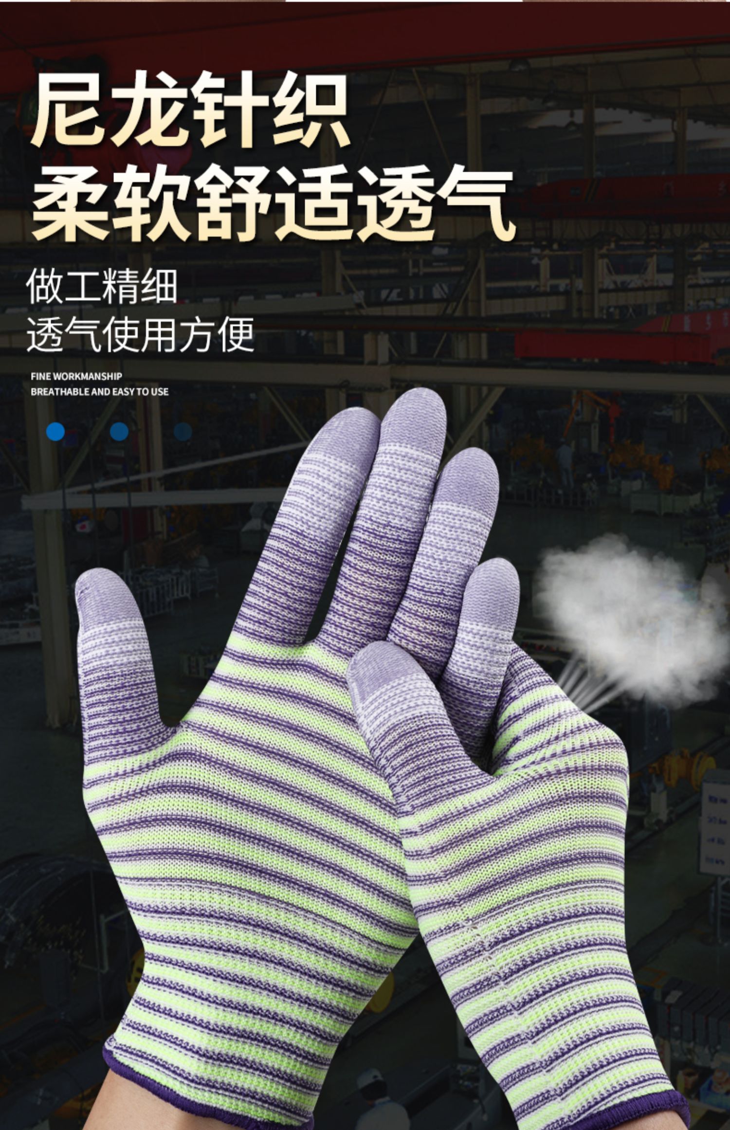 얼룩말 인쇄 나일론 PU 손가락 코팅 손바닥으로 코팅 된 정전기 방지 노동 보호 내마모성 작업 담그는 접착제 코팅 통기성 미끄럼 방지 얇은 장갑