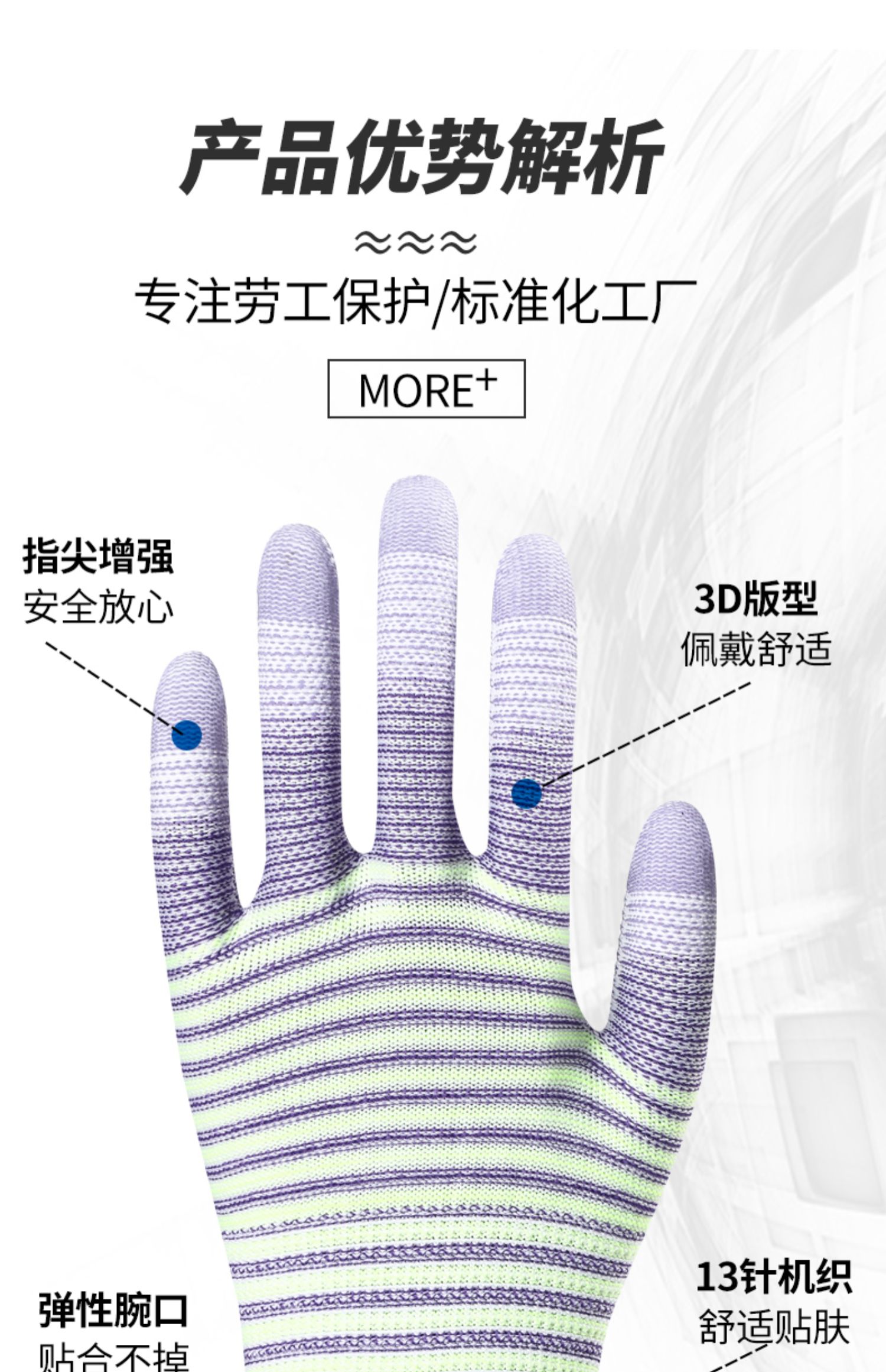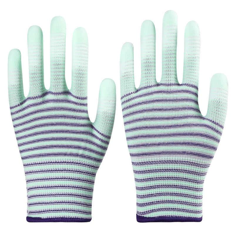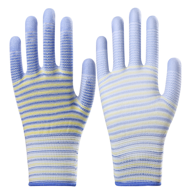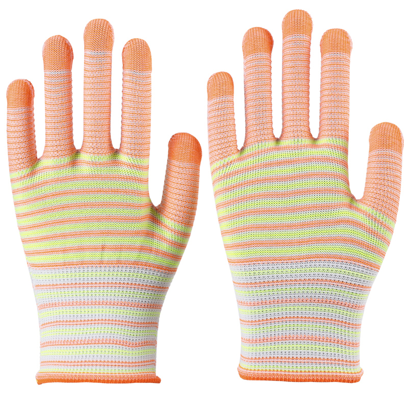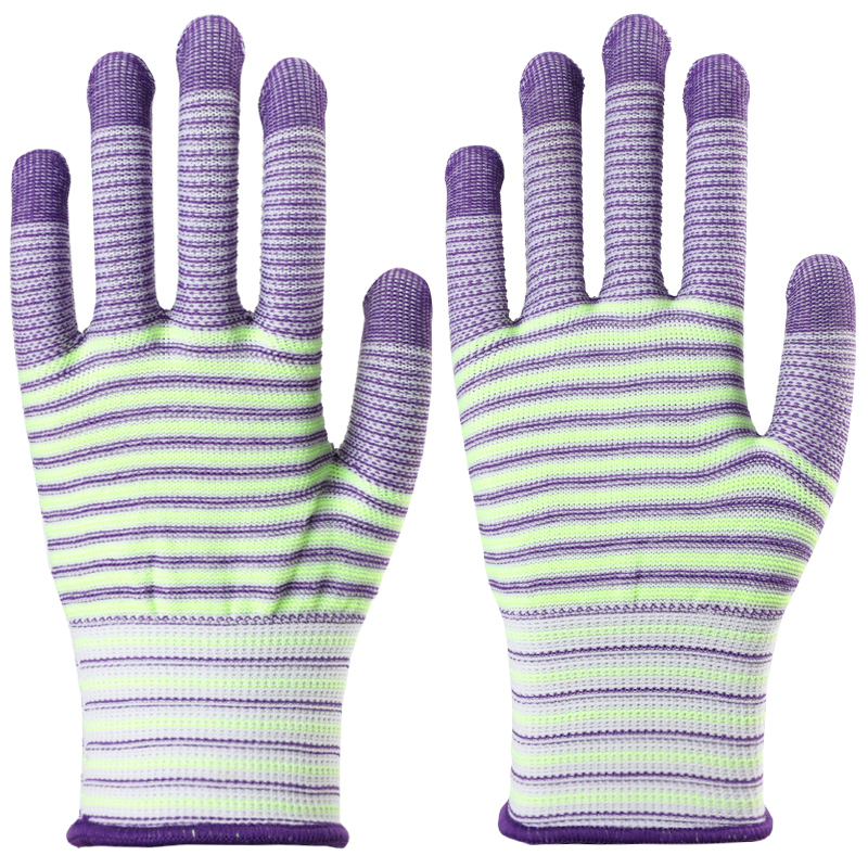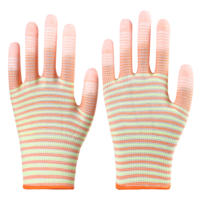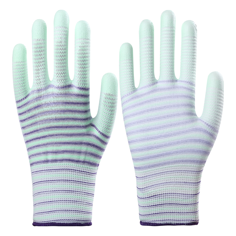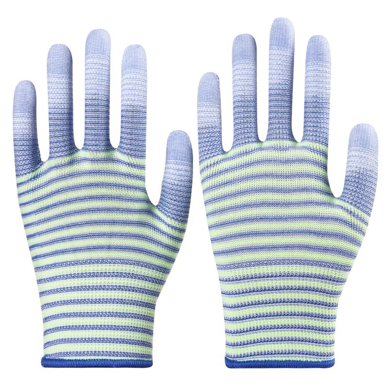 얼룩말 인쇄 나일론 PU 손가락 코팅 손바닥으로 코팅 된 정전기 방지 노동 보호 내마모성 작업 담그는 접착제 코팅 통기성 미끄럼 방지 얇은 장갑