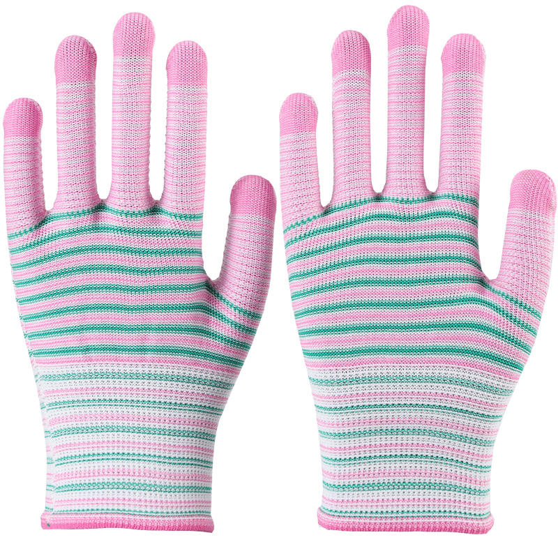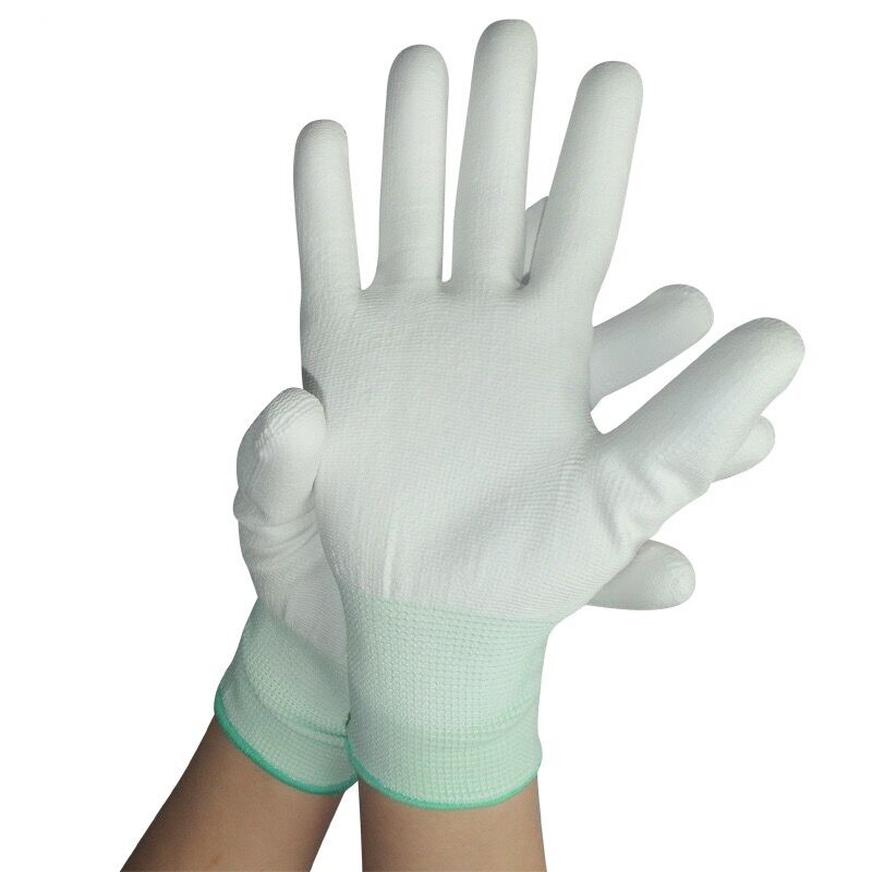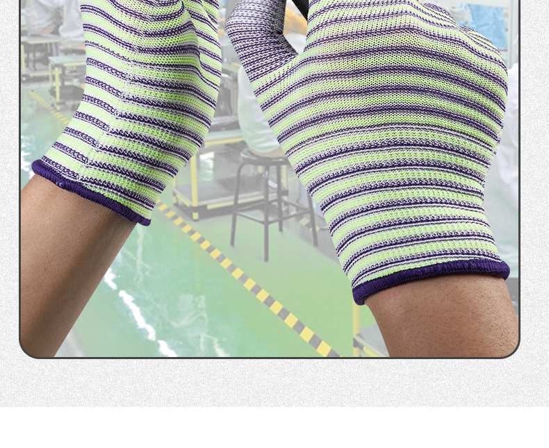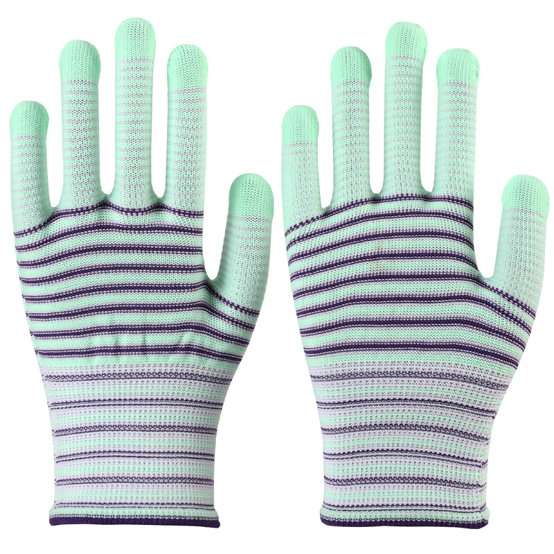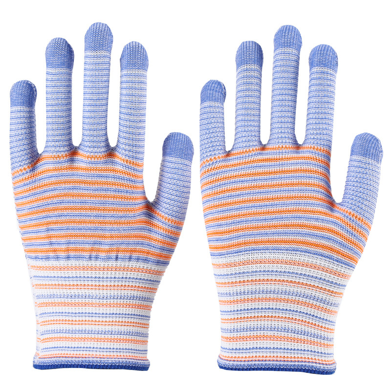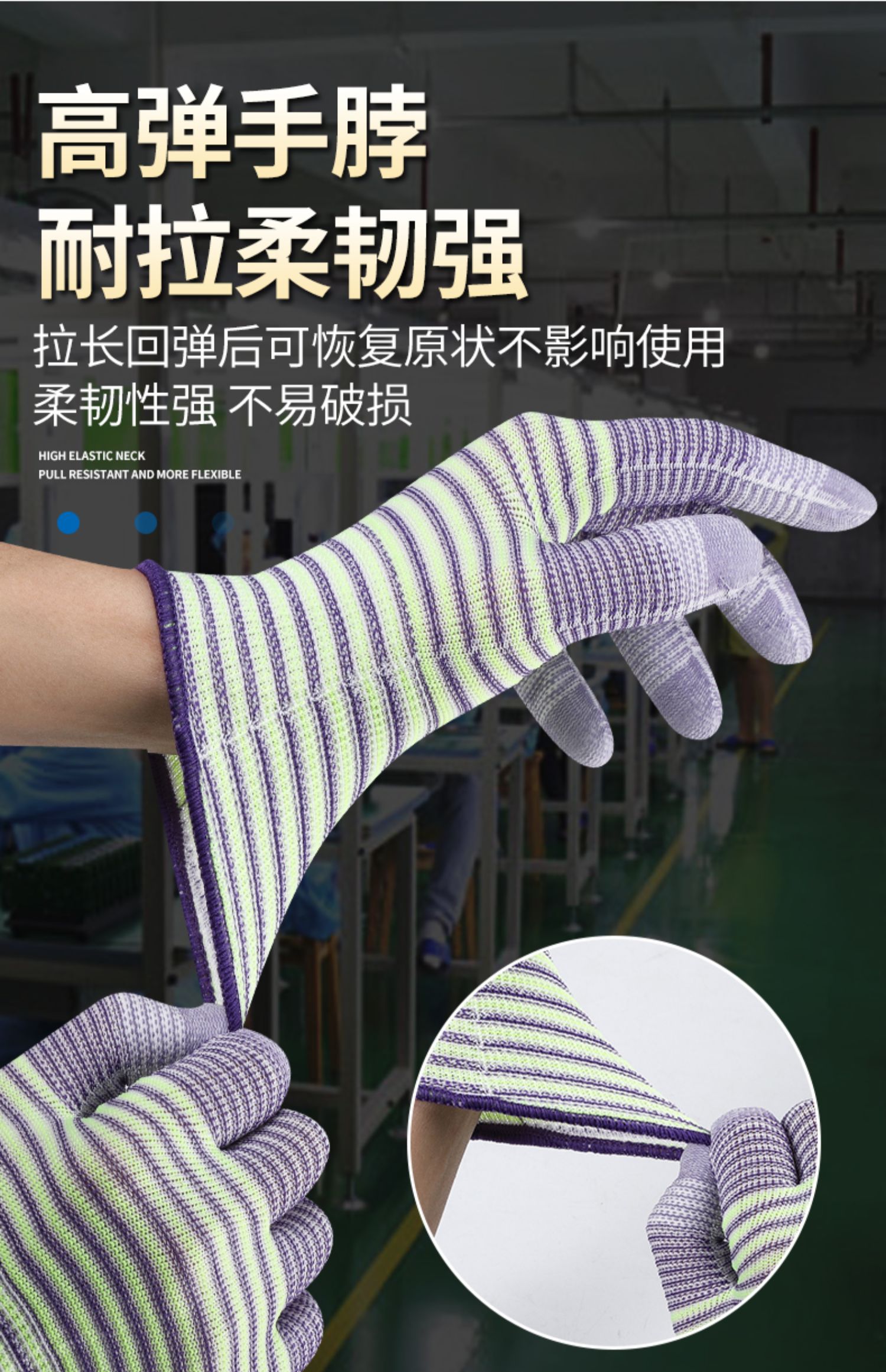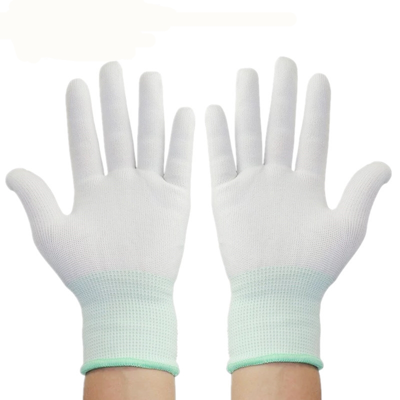 얼룩말 인쇄 나일론 PU 손가락 코팅 손바닥으로 코팅 된 정전기 방지 노동 보호 내마모성 작업 담그는 접착제 코팅 통기성 미끄럼 방지 얇은 장갑