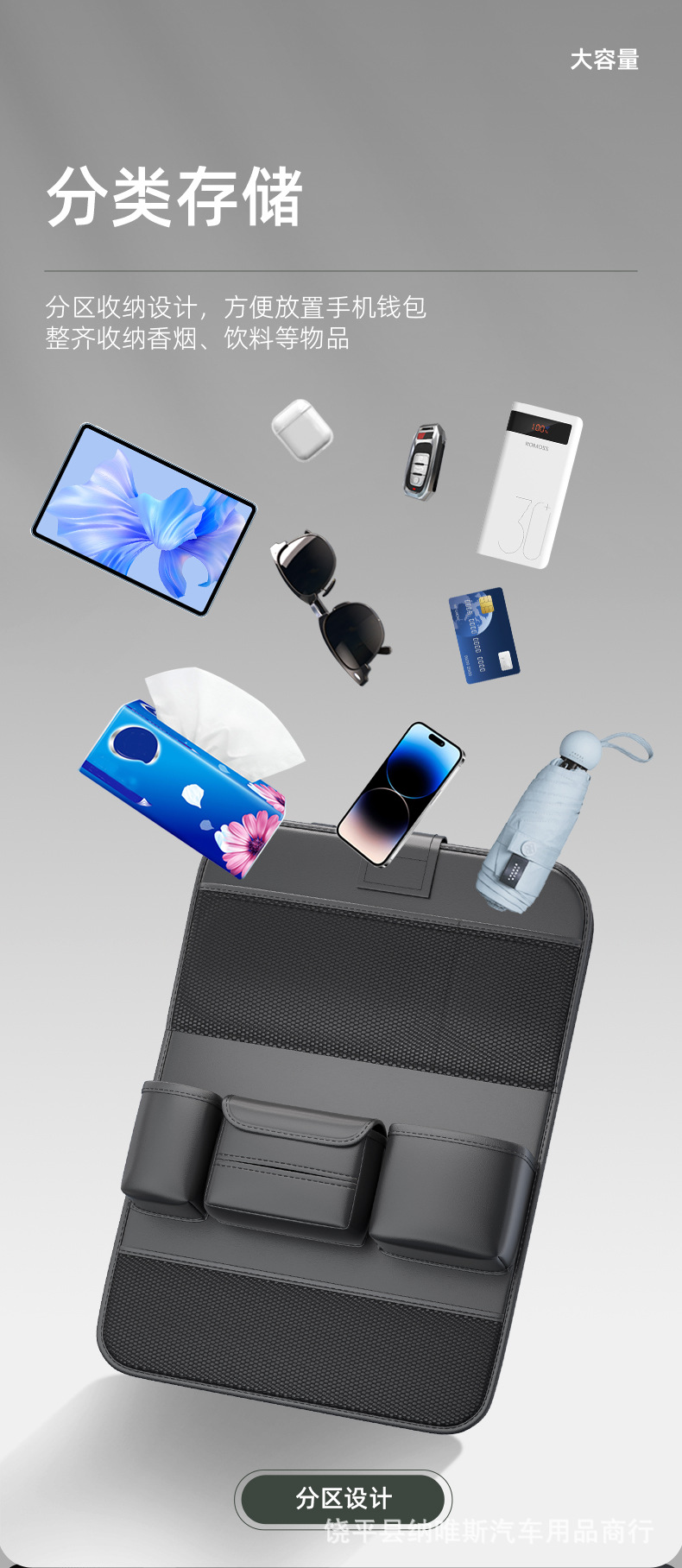 새로운 국경 자동차 좌석 다시 저장 가방 자동차 좌석 다시 접는 어린이 식탁 다기능 저장 상자스토어 가기