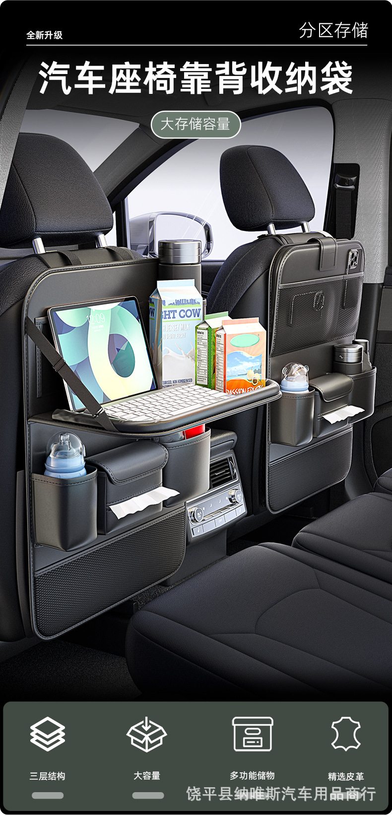 새로운 국경 자동차 좌석 다시 저장 가방 자동차 좌석 다시 접는 어린이 식탁 다기능 저장 상자