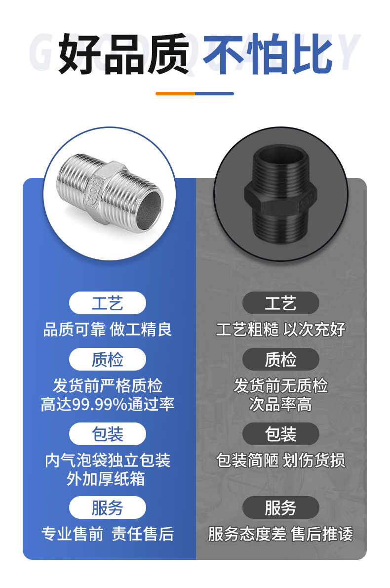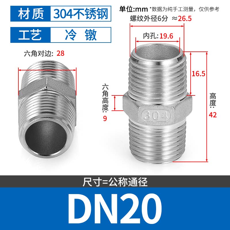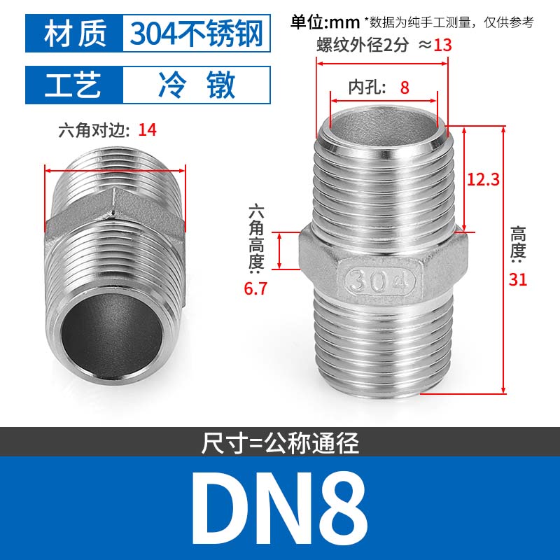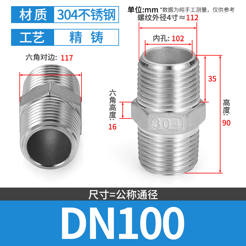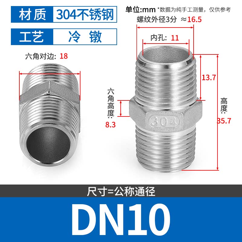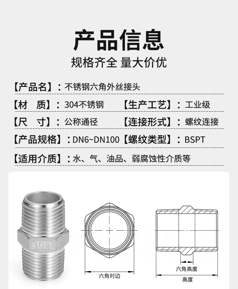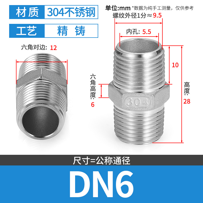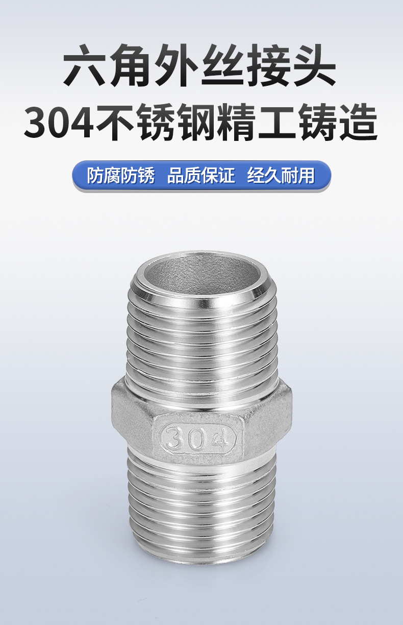 304 스테인레스 스틸 육각형 외부 와이어 조인트 더블 헤드 외부 와이어 직접 조인트 정밀 주조 외부 스레드 직선 2 점 4 점 6 점
