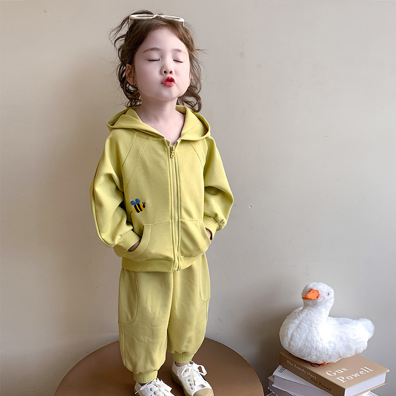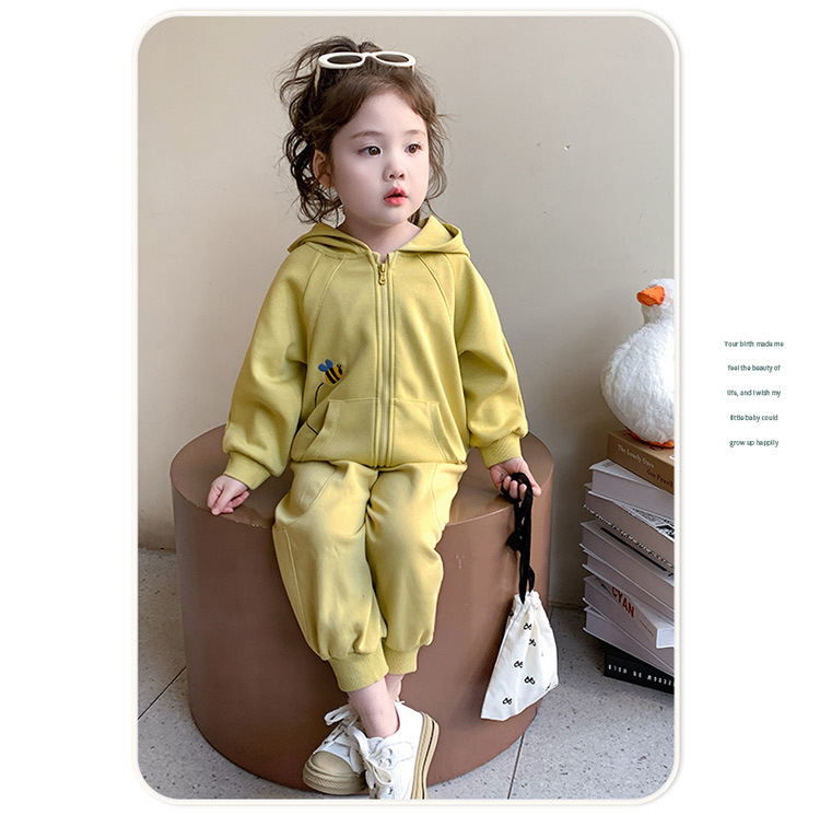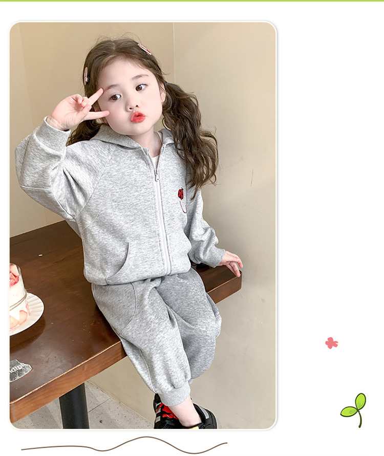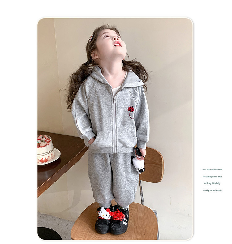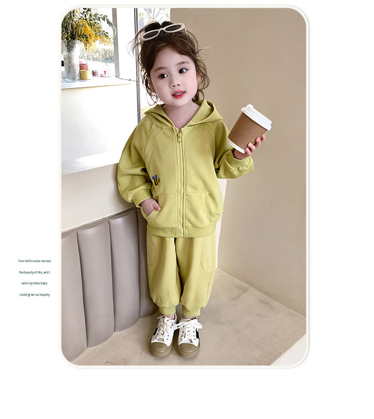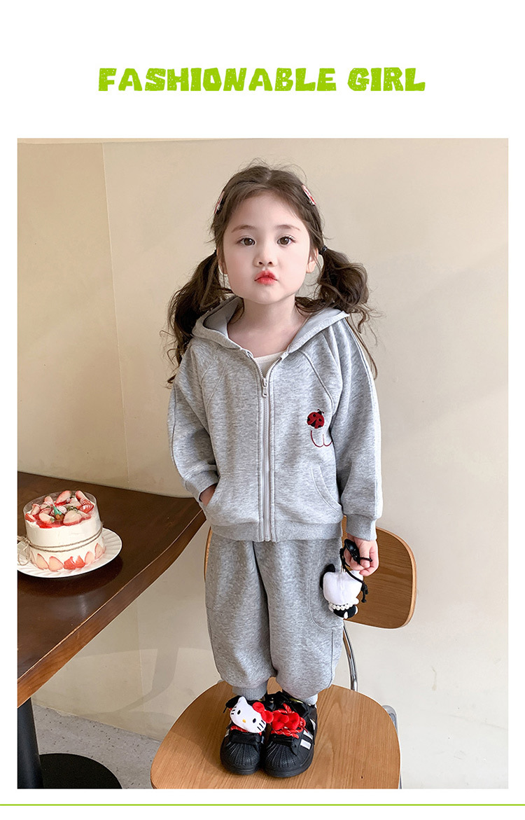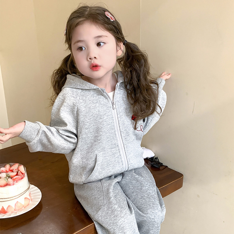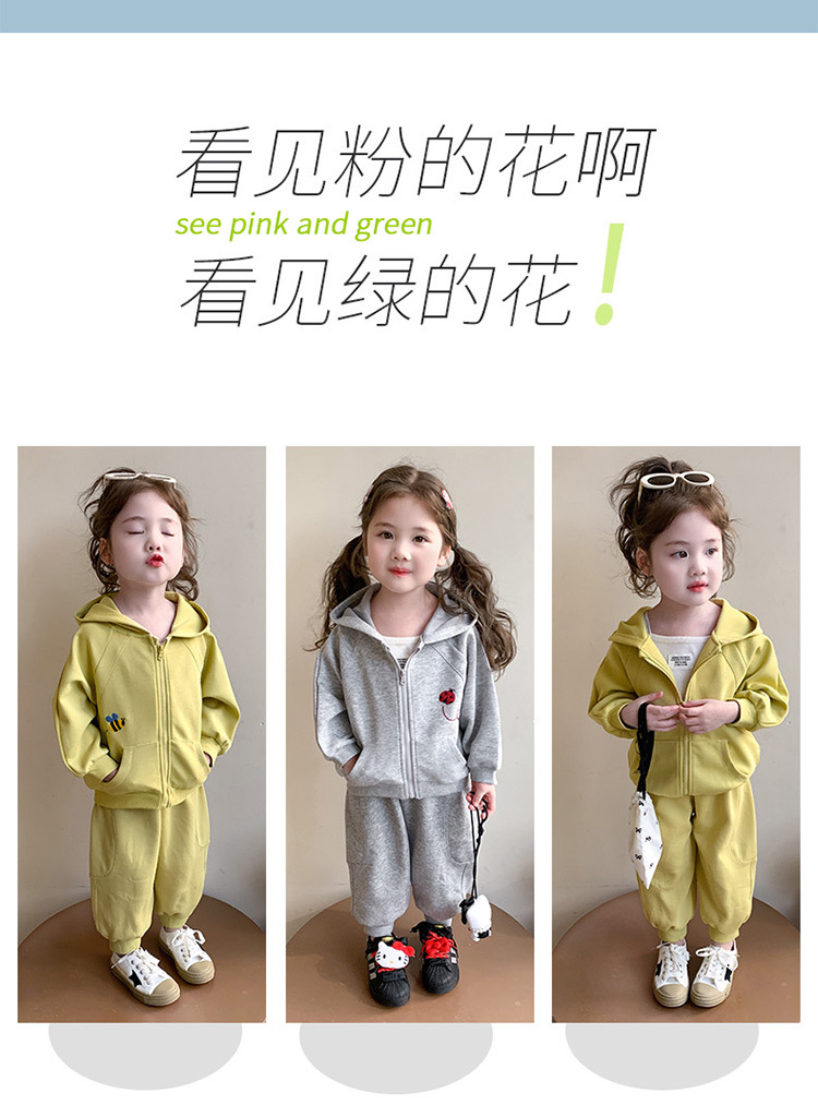 소녀 수 놓은 땀 세트 봄과 가을 2025 새로운 패션 어린 소녀 스포츠 레저 두 조각 세트 중소 규모 어린이스토어 가기