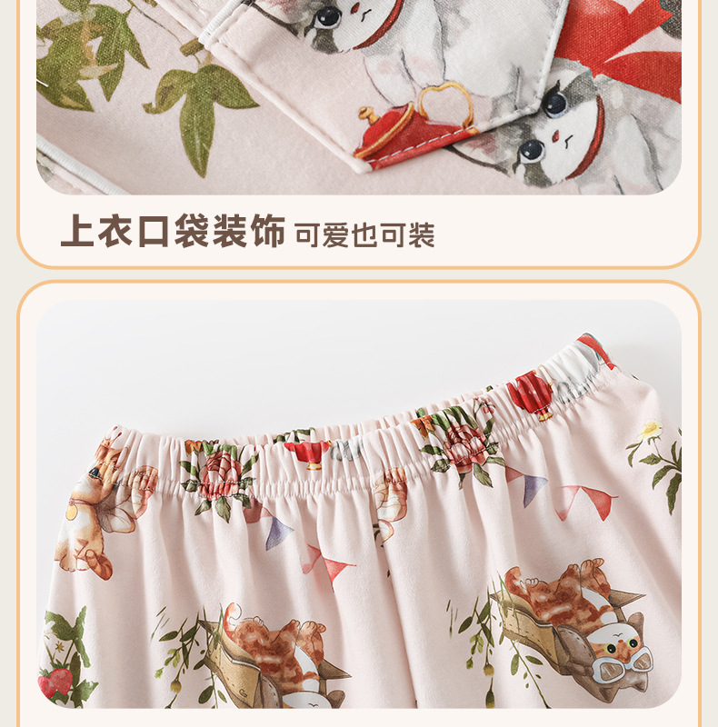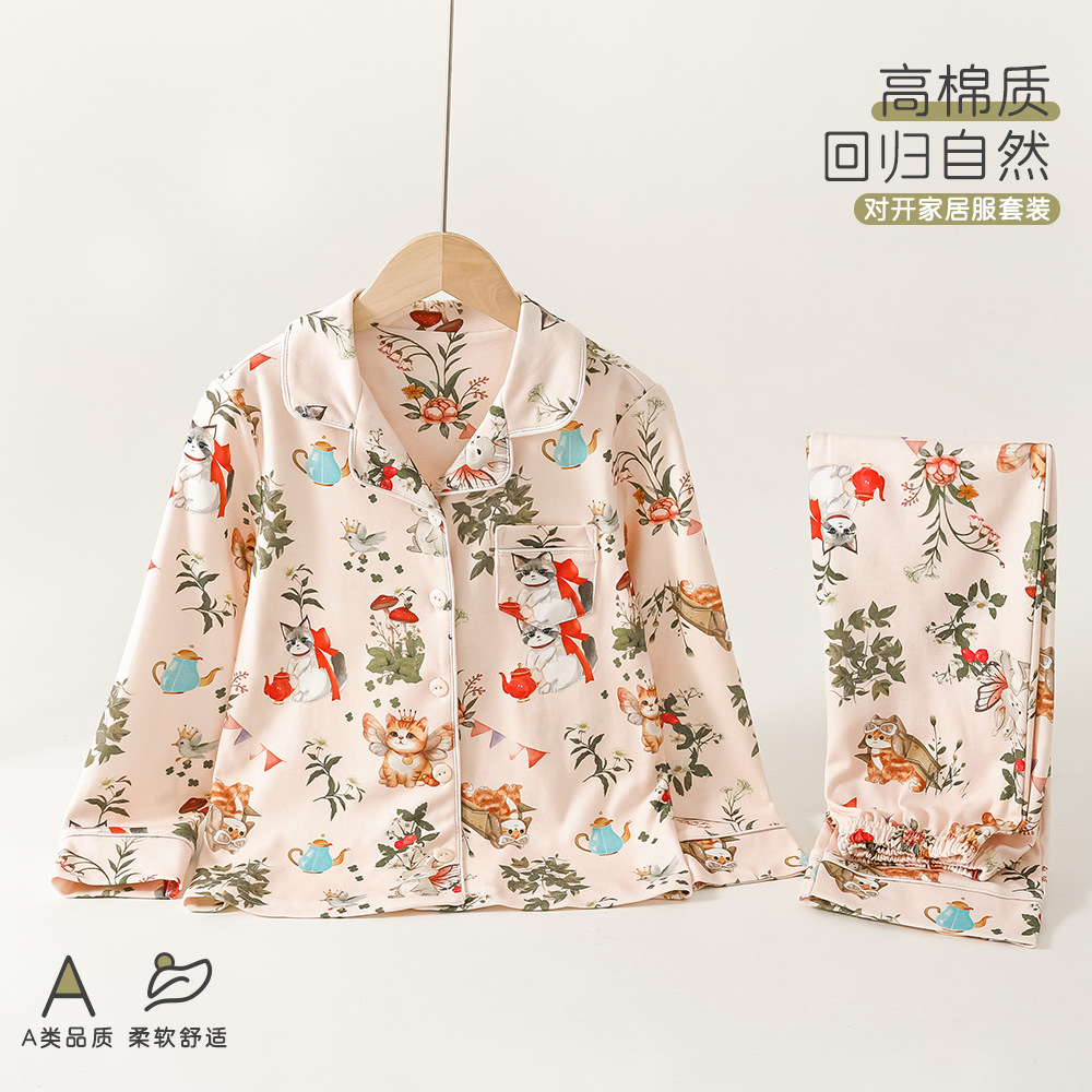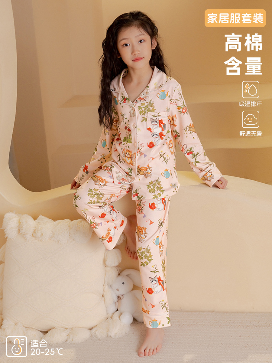 새로운 스타일의 여아 잠옷, 봄과 가을용 긴팔 순면 A급 아동복, 세련된 여아용 가을 홈웨어스토어 가기