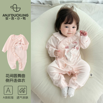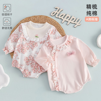 새로운 스타일의 여아 잠옷, 봄과 가을용 긴팔 순면 A급 아동복, 세련된 여아용 가을 홈웨어