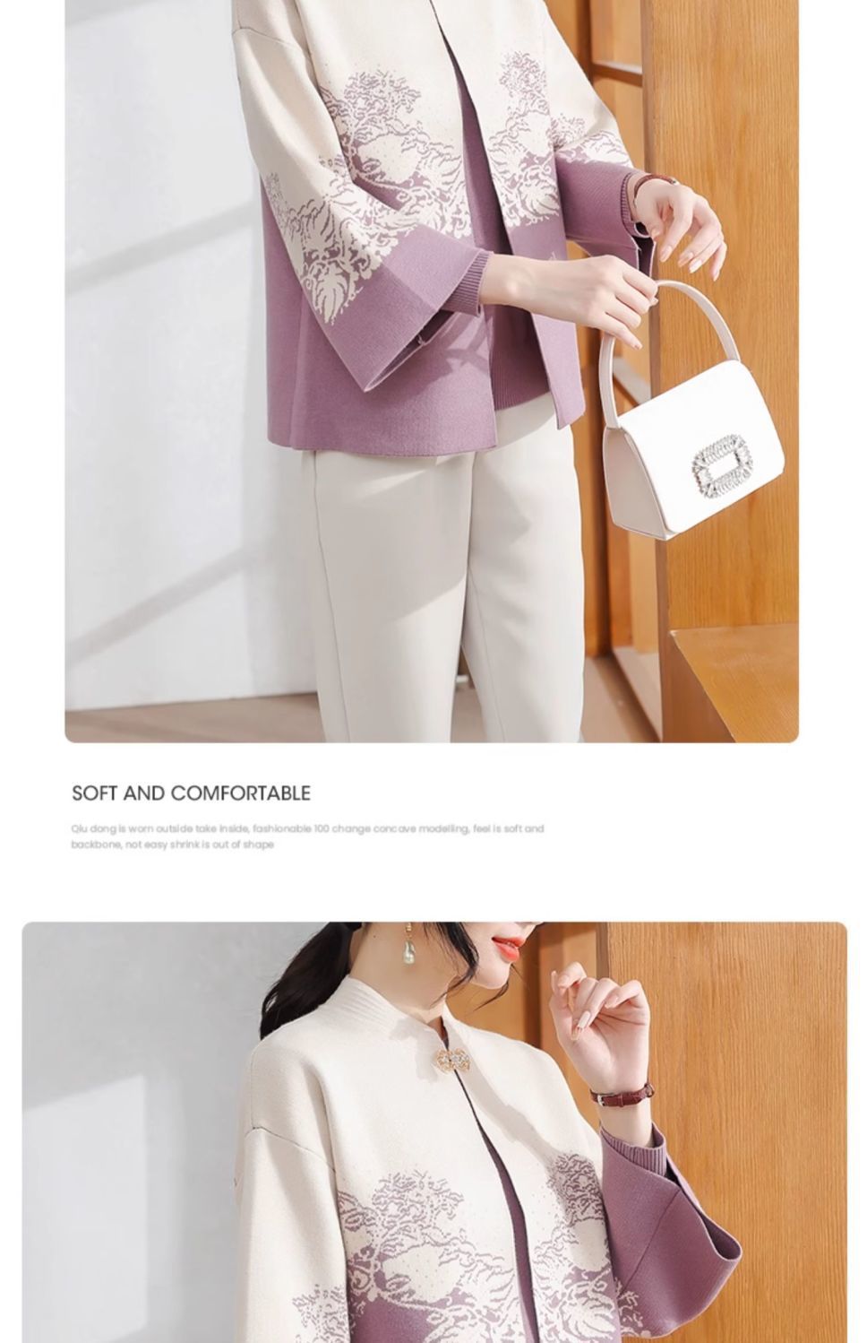 엄마의 가을 니트 세트 봄 새로운 도착 와이드 아내 카디건 외형 중년 및 노인의 봄과 가을 서양식 코트 탑