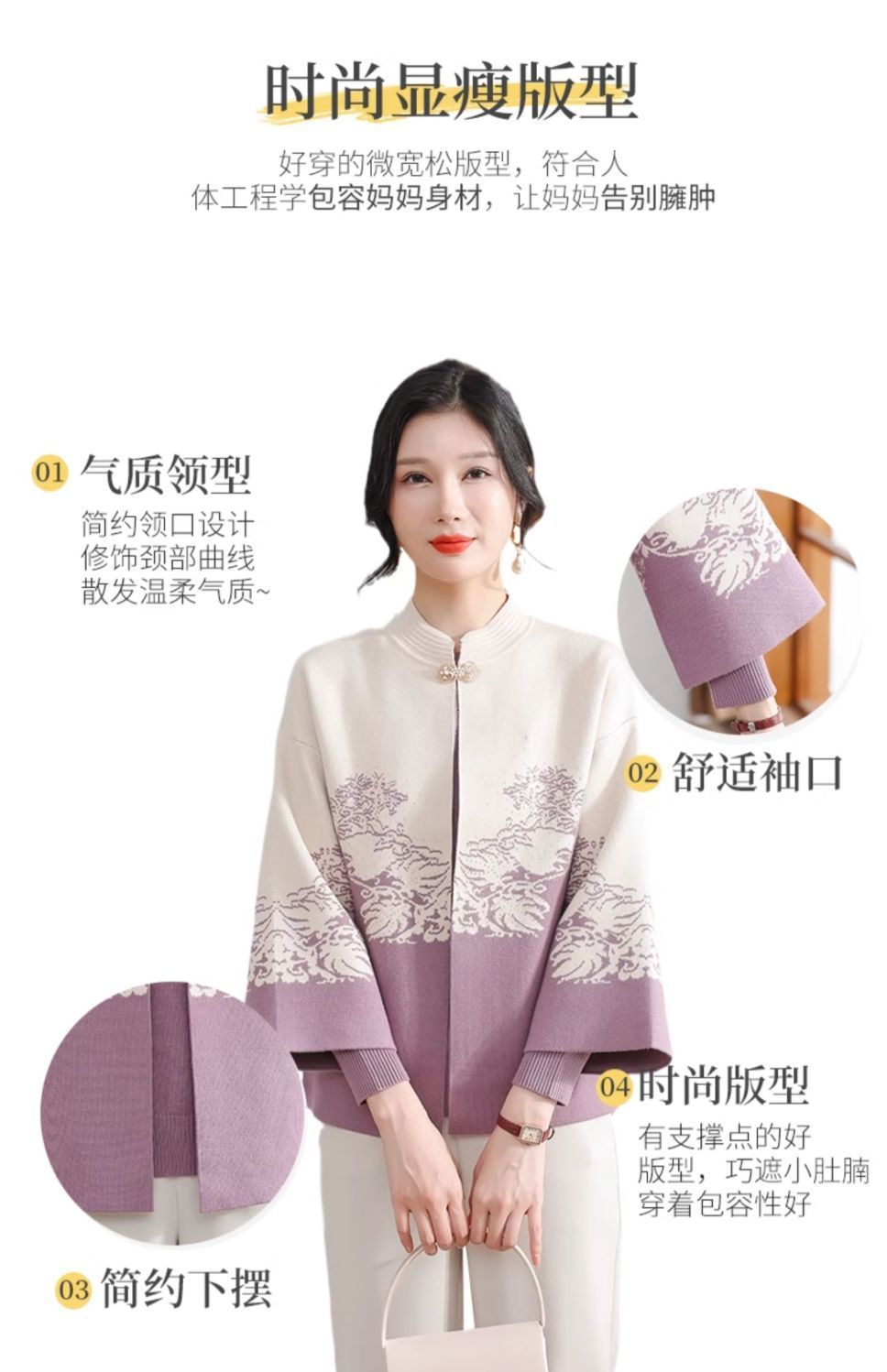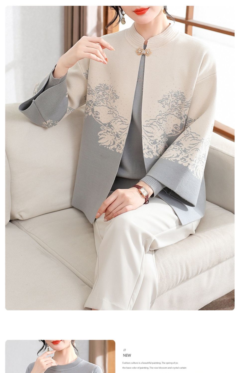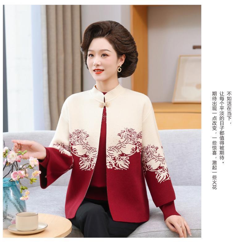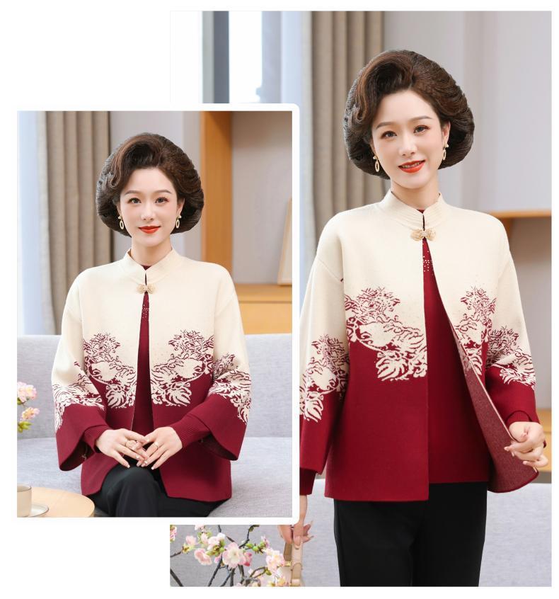 엄마의 가을 니트 세트 봄 새로운 도착 와이드 아내 카디건 외형 중년 및 노인의 봄과 가을 서양식 코트 탑스토어 가기