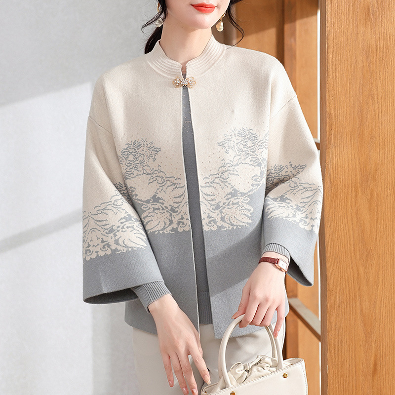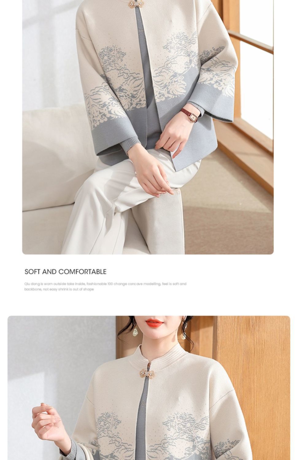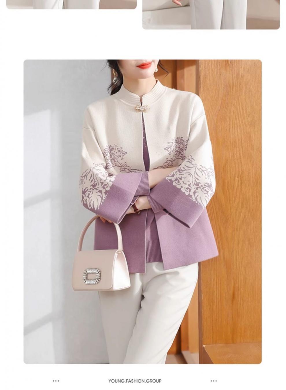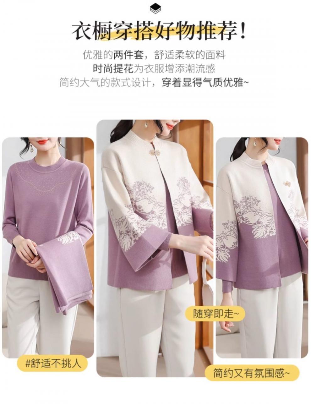 엄마의 가을 니트 세트 봄 새로운 도착 와이드 아내 카디건 외형 중년 및 노인의 봄과 가을 서양식 코트 탑스토어 가기