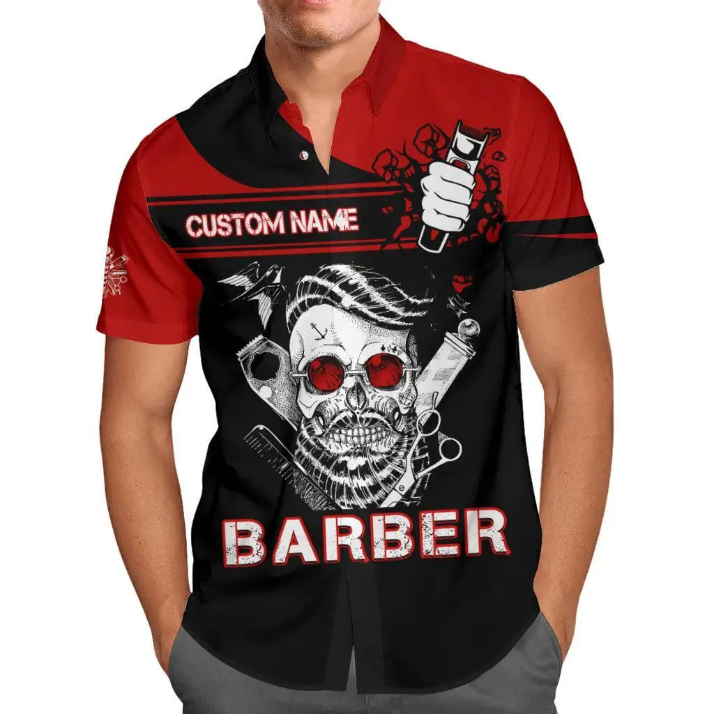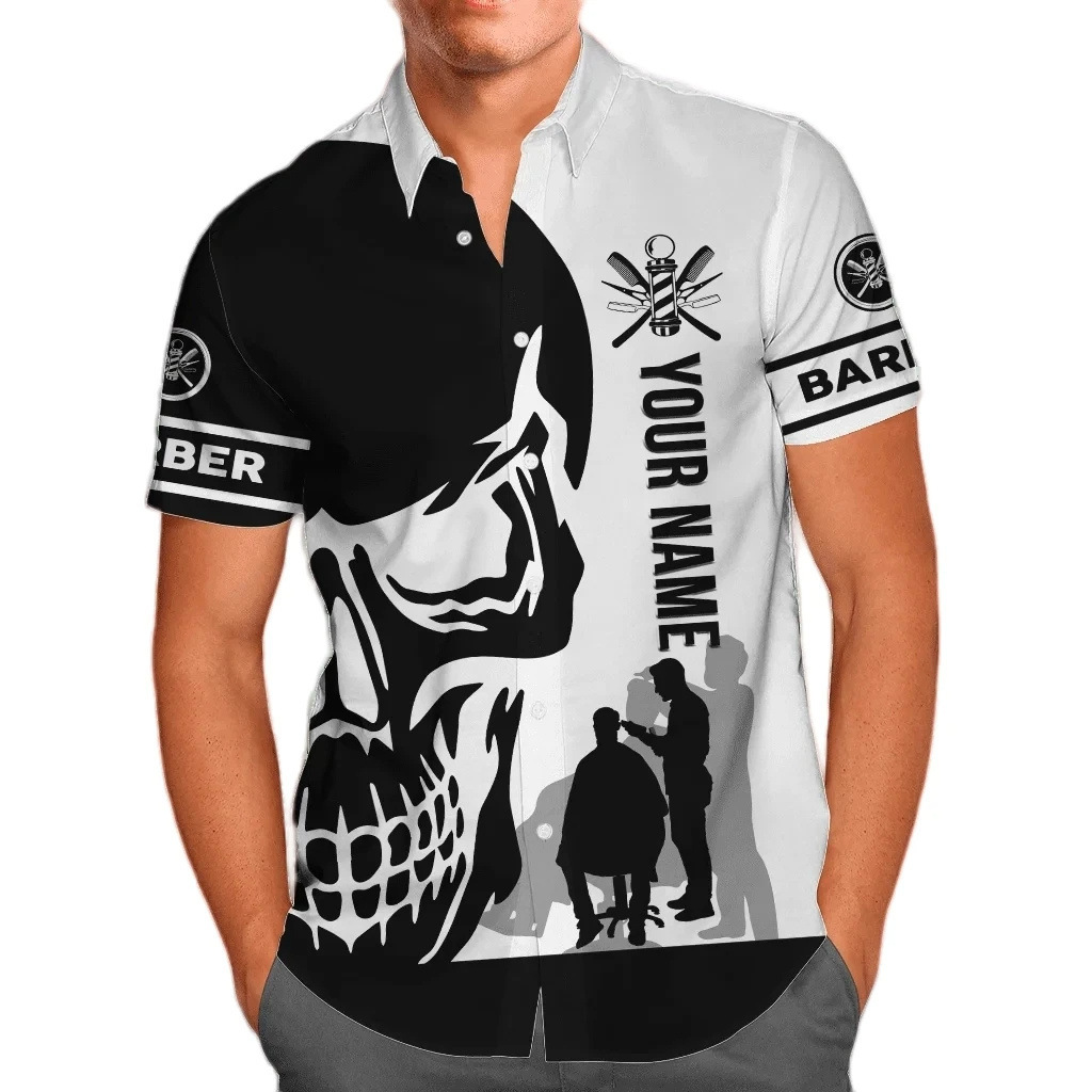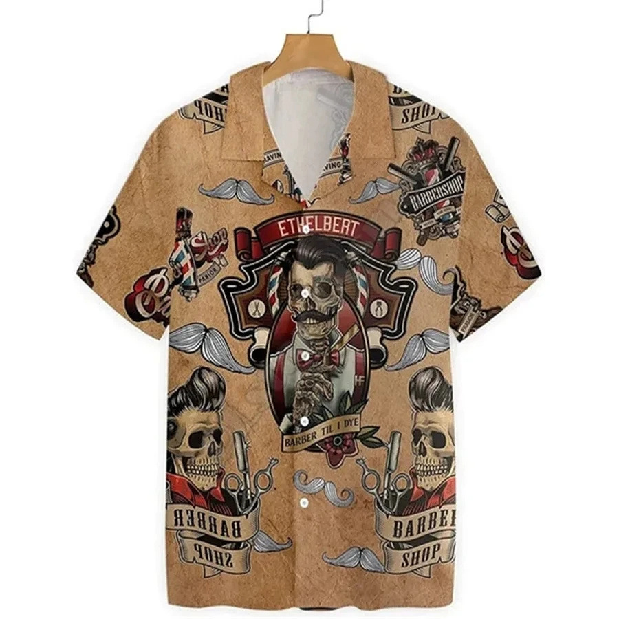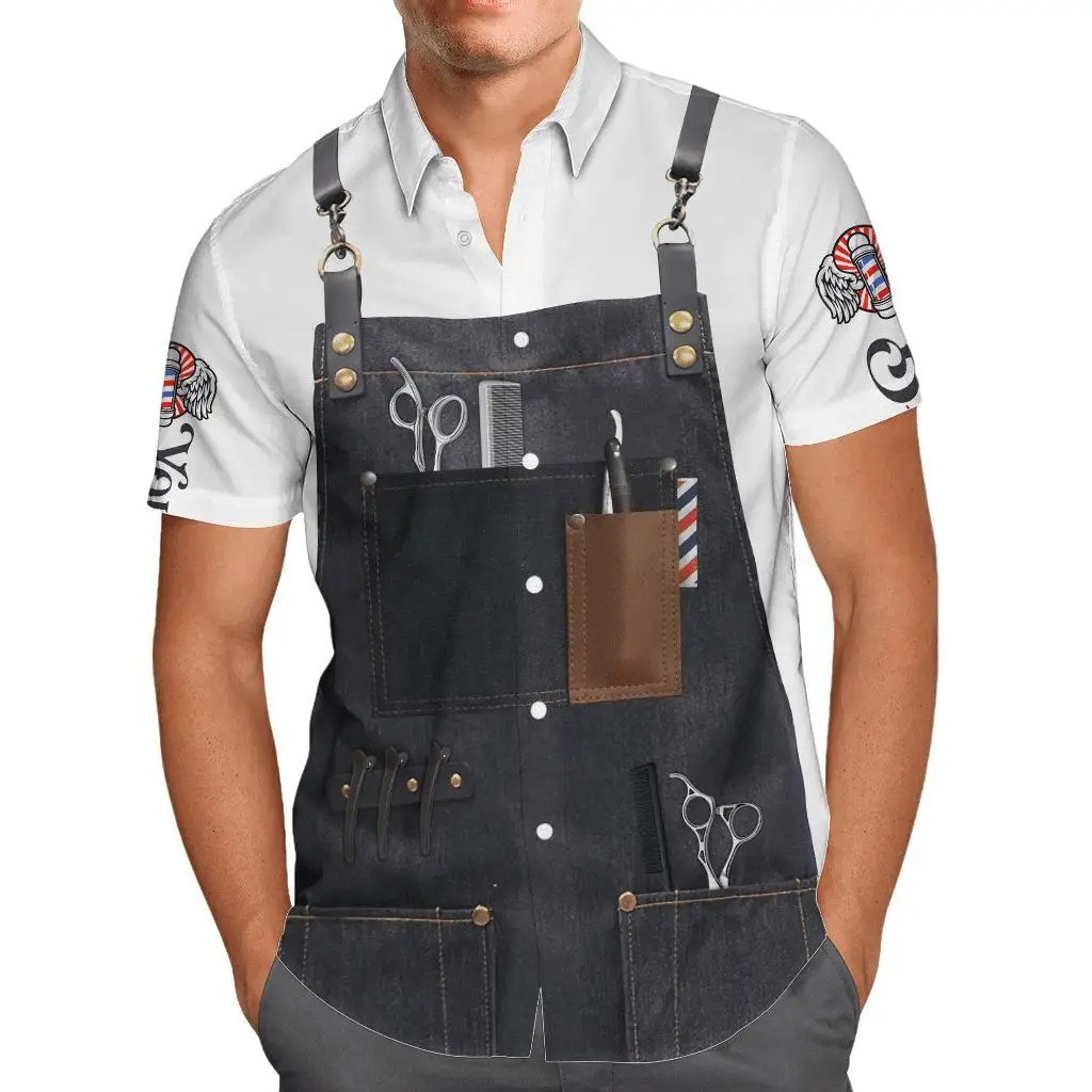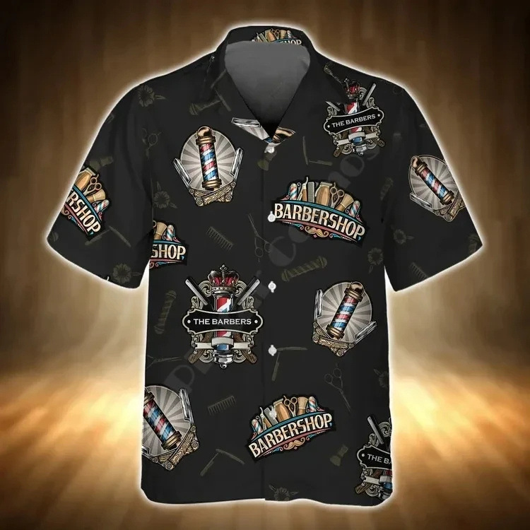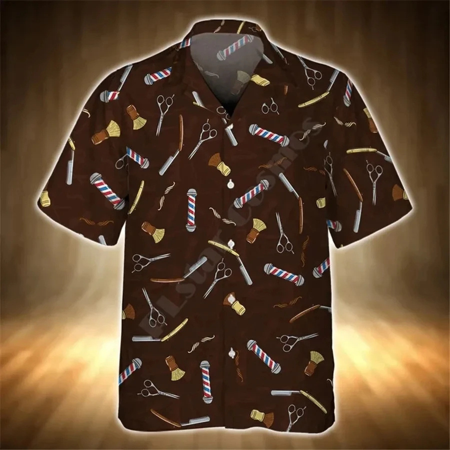 2024 국경 3D 디지털 이발사 인쇄 여름 남성 캐주얼 짧은 소매 대외 무역 여름 짧은 소매 셔츠 도매