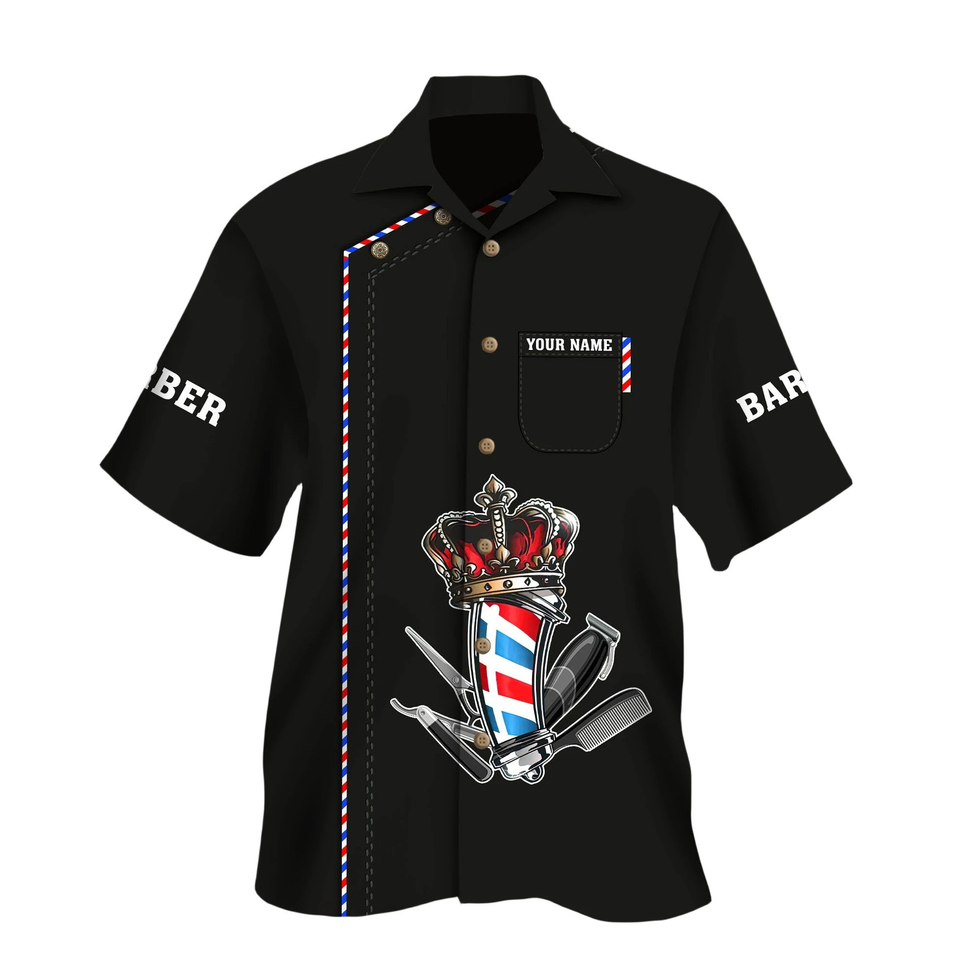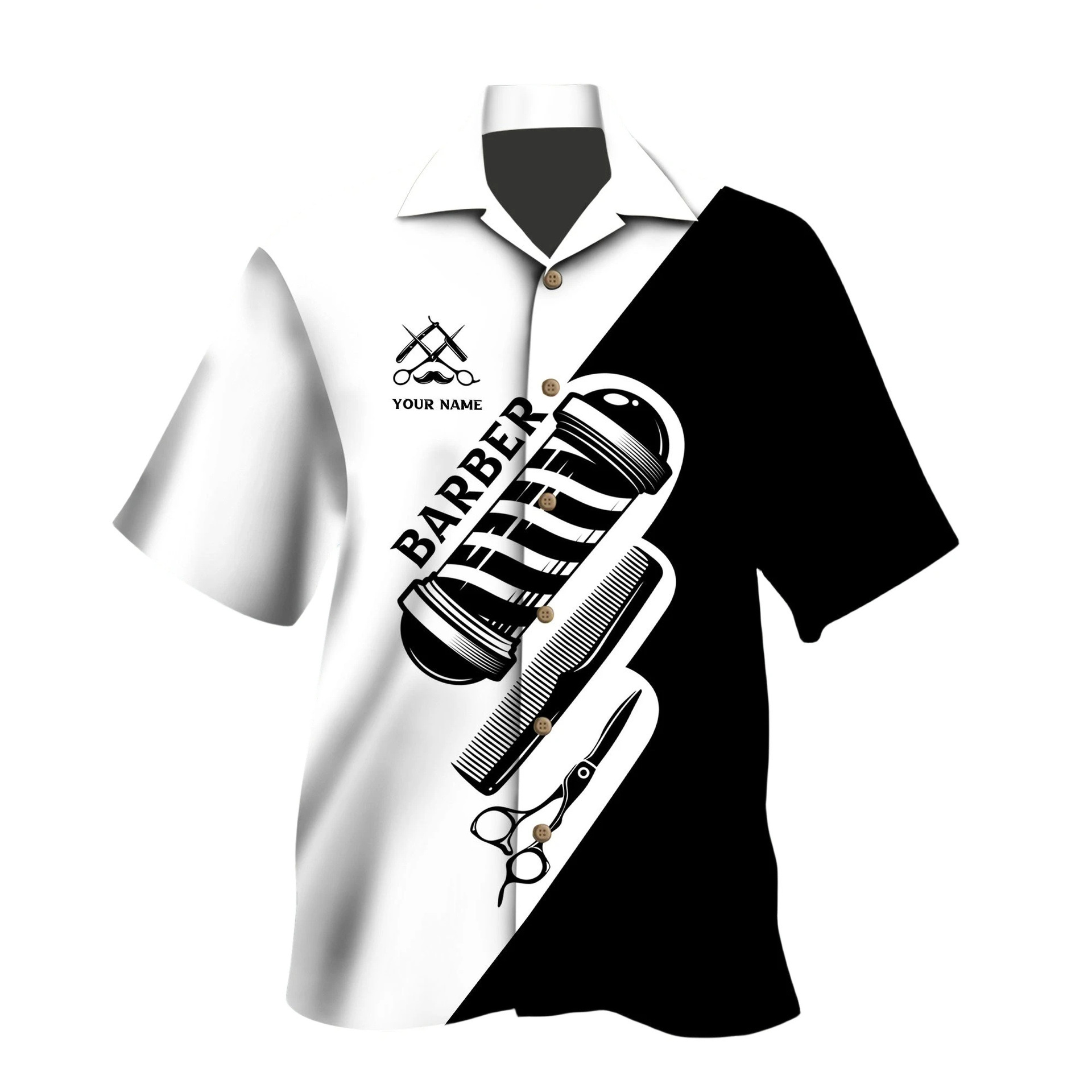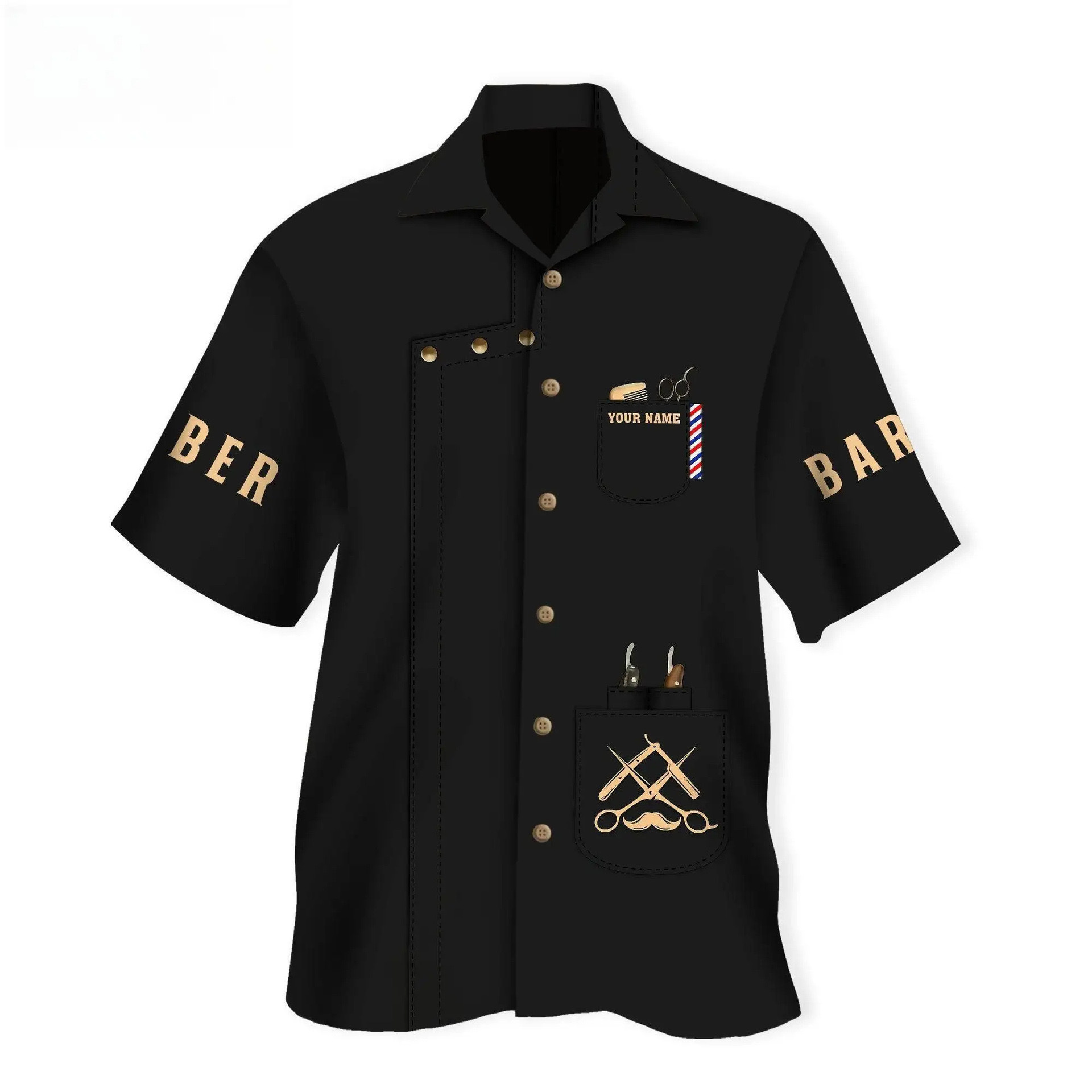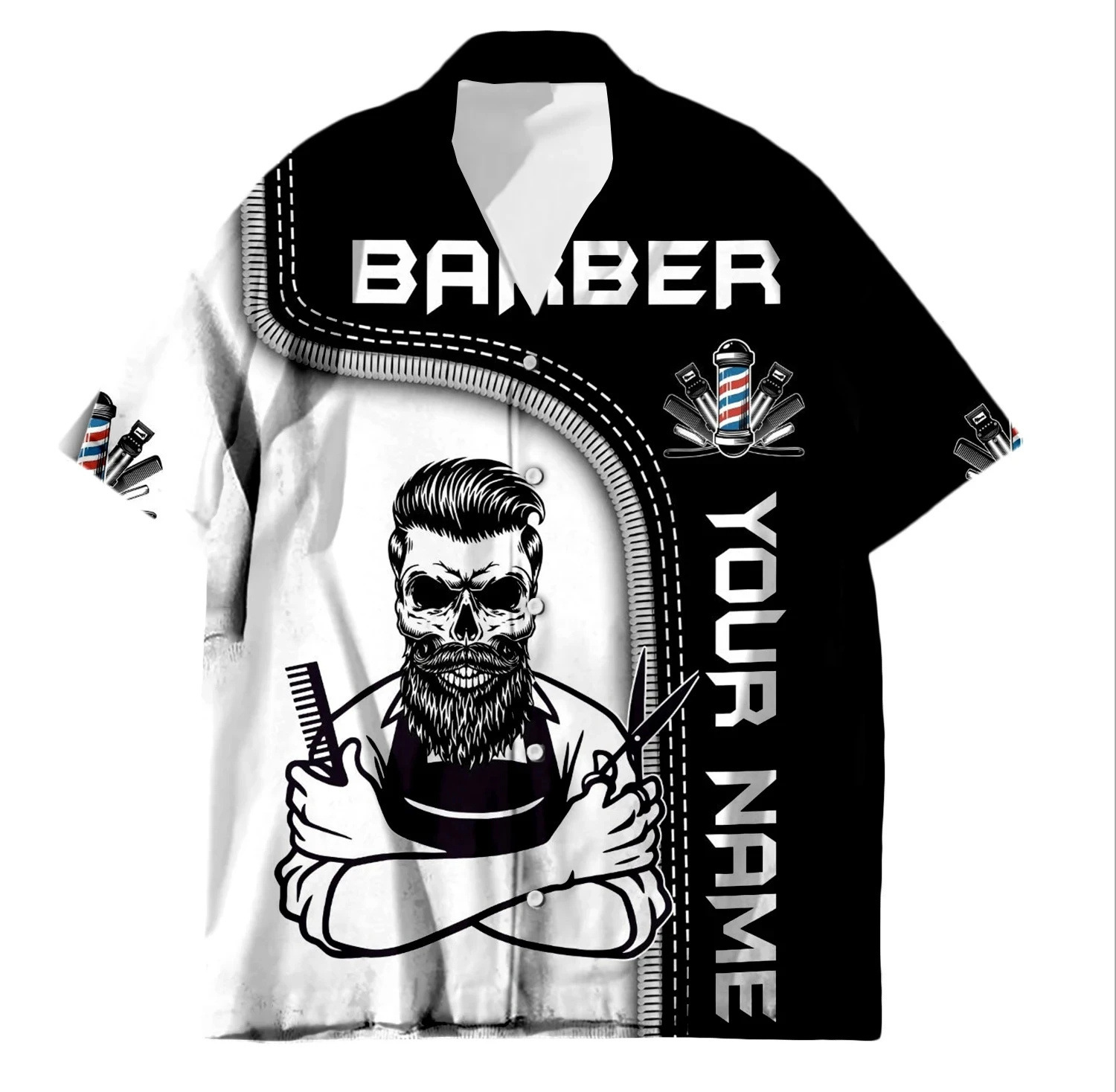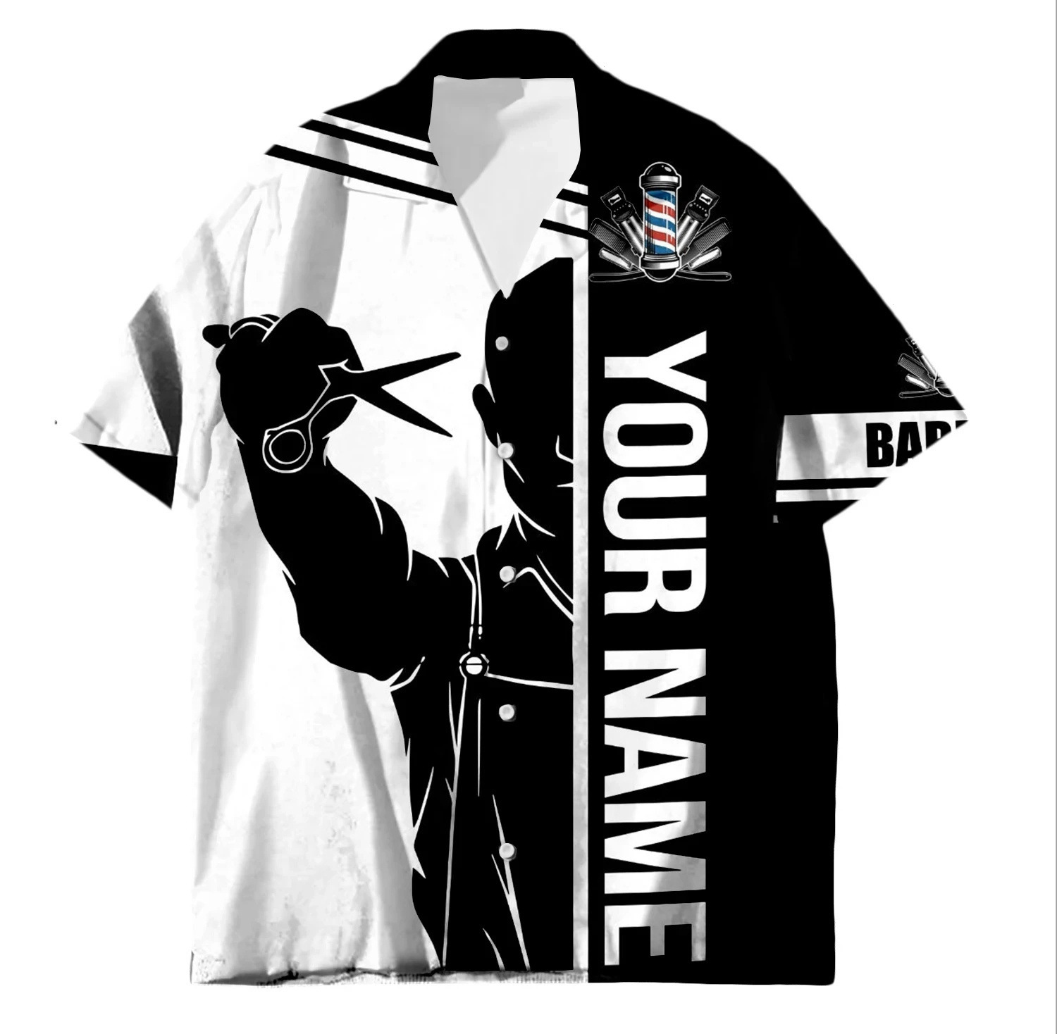 2024 국경 3D 디지털 이발사 인쇄 여름 남성 캐주얼 짧은 소매 대외 무역 여름 짧은 소매 셔츠 도매