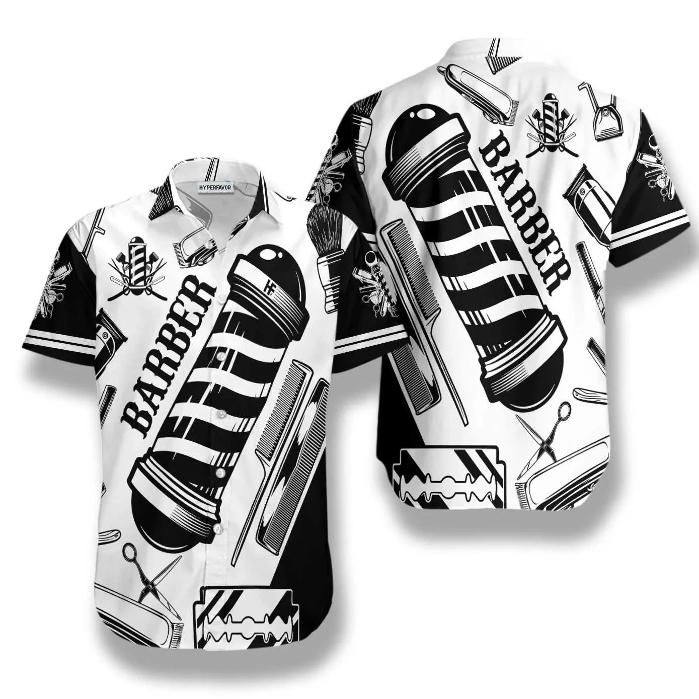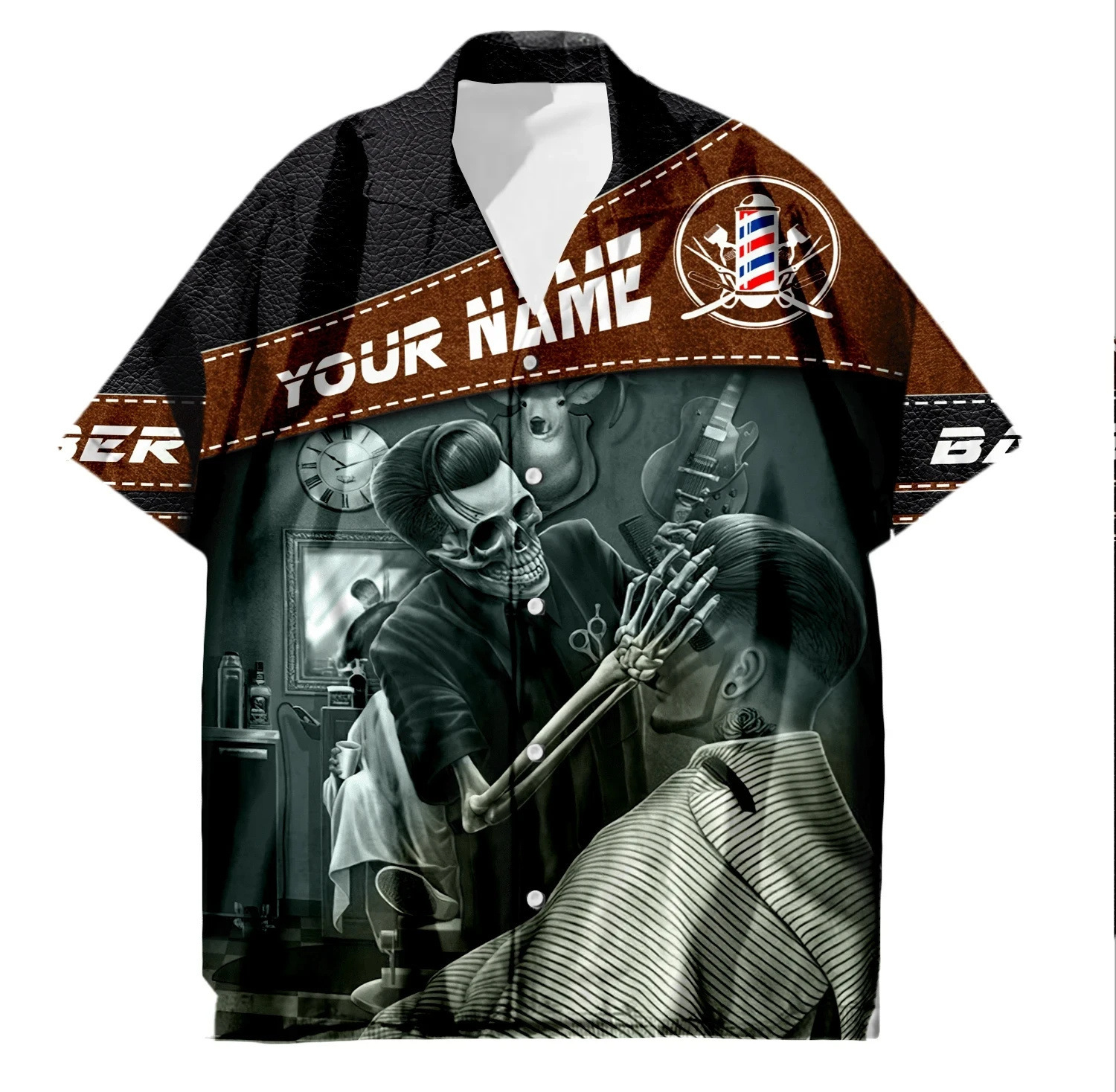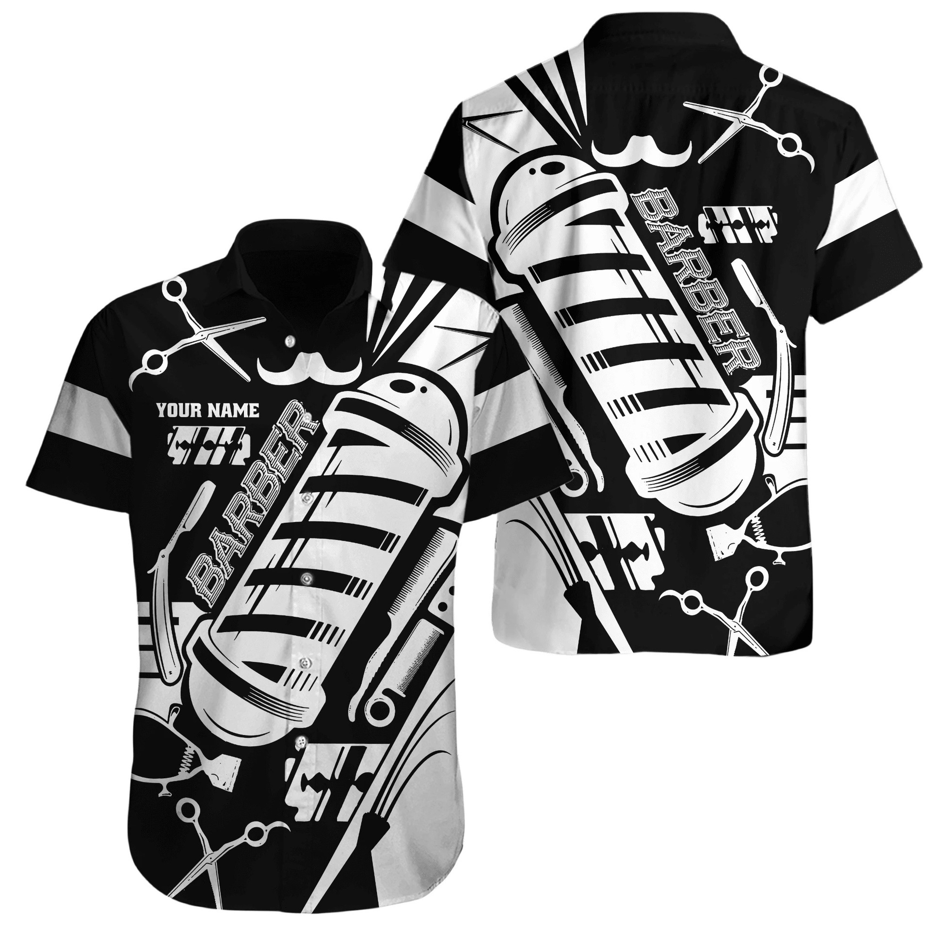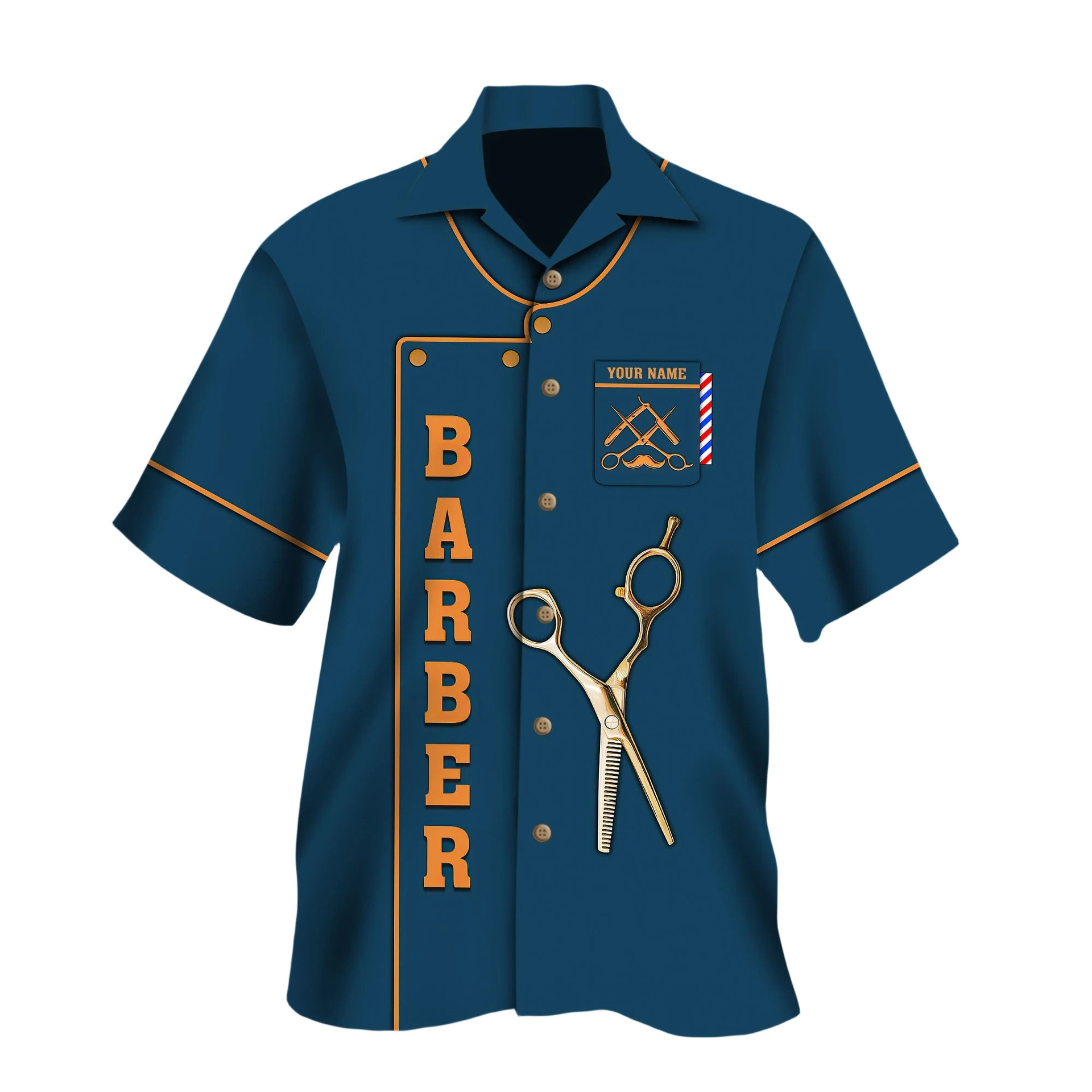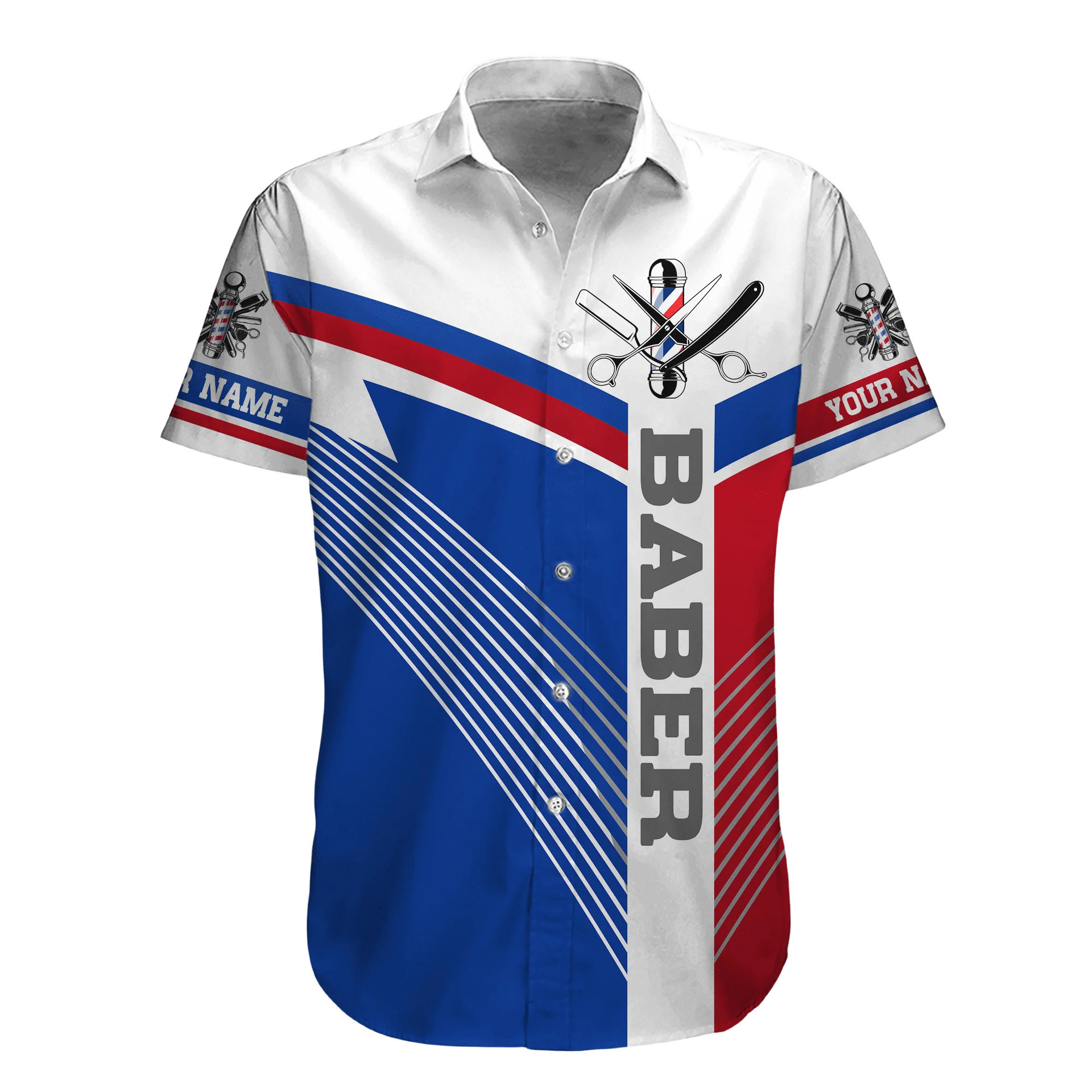 2024 국경 3D 디지털 이발사 인쇄 여름 남성 캐주얼 짧은 소매 대외 무역 여름 짧은 소매 셔츠 도매