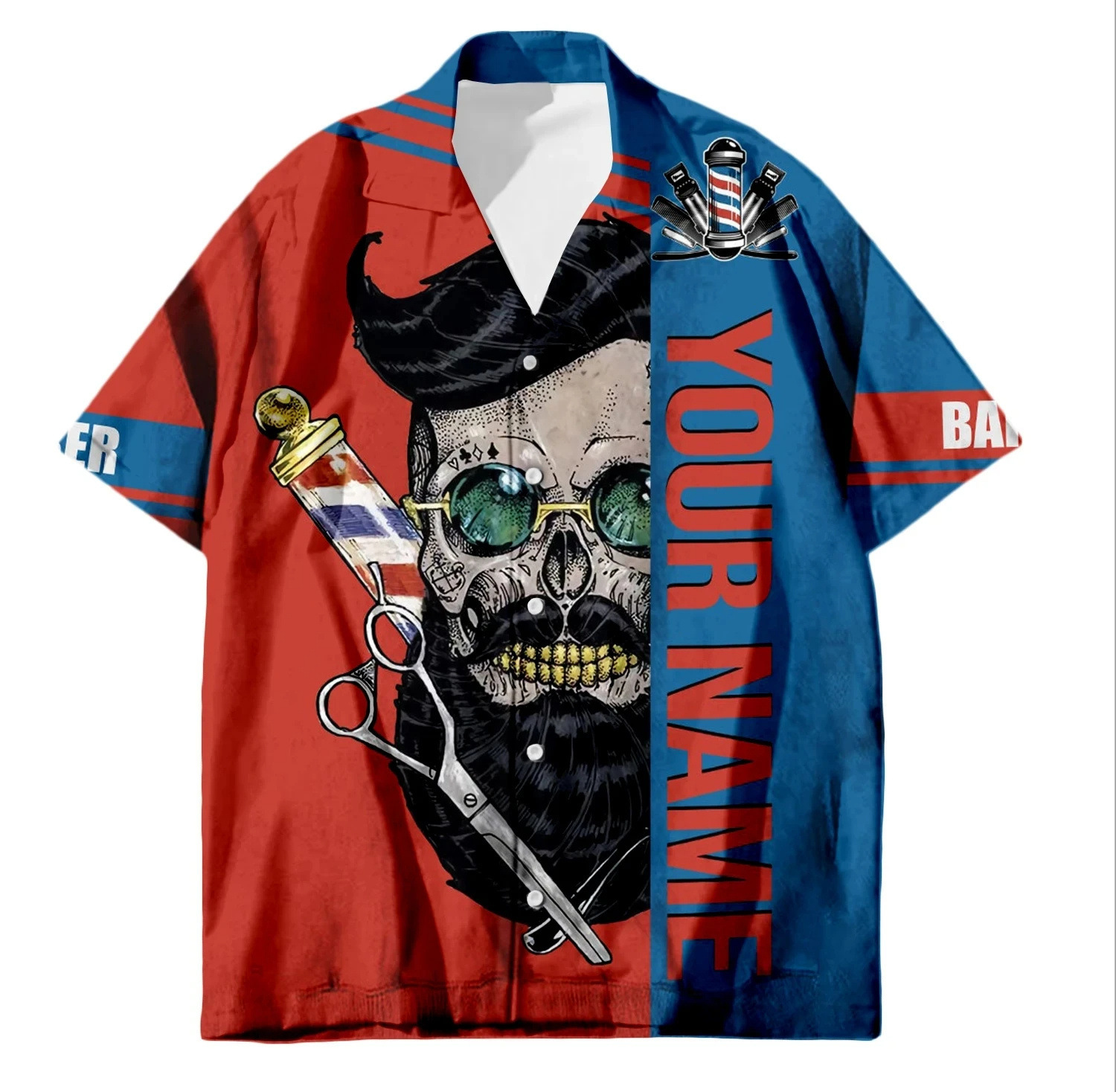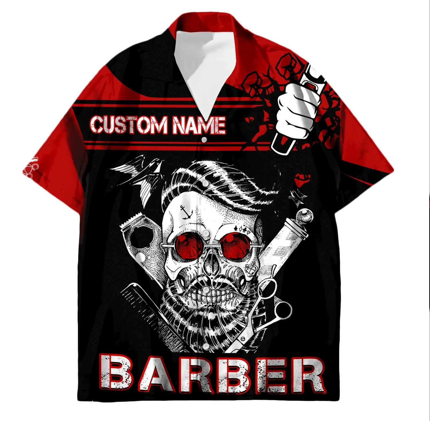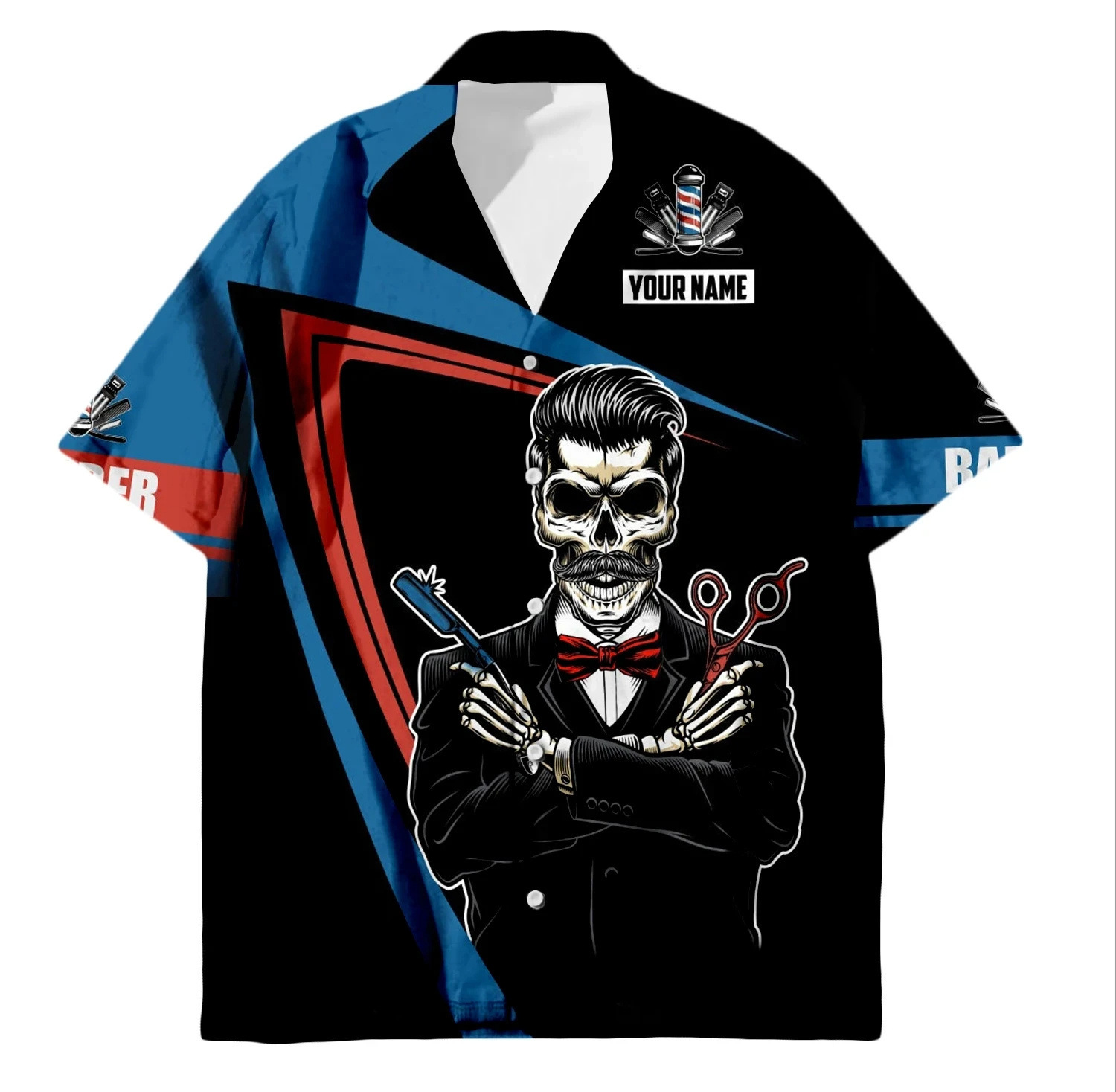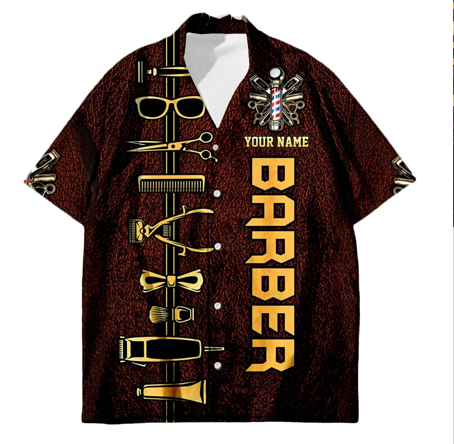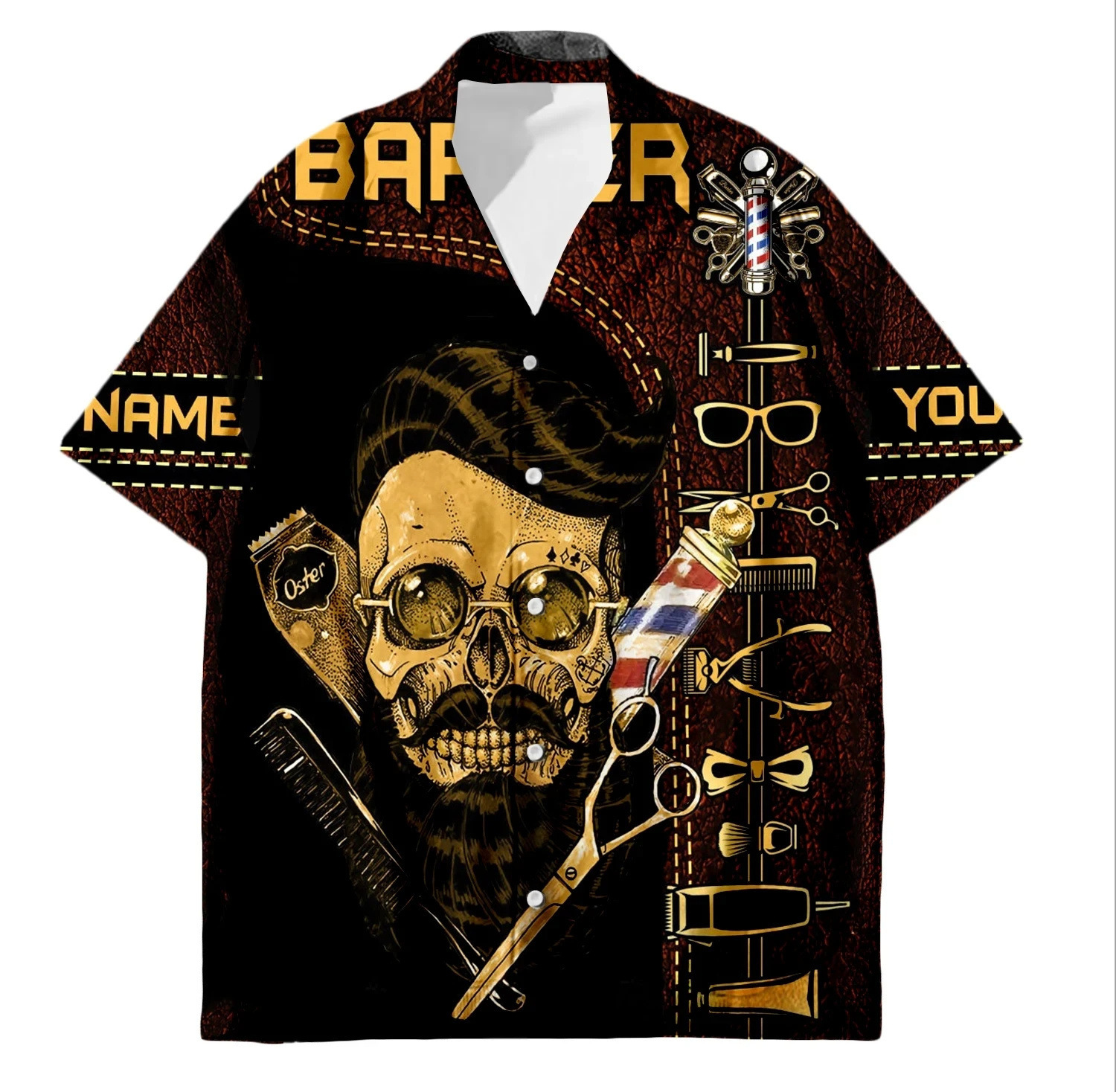 2024 국경 3D 디지털 이발사 인쇄 여름 남성 캐주얼 짧은 소매 대외 무역 여름 짧은 소매 셔츠 도매
