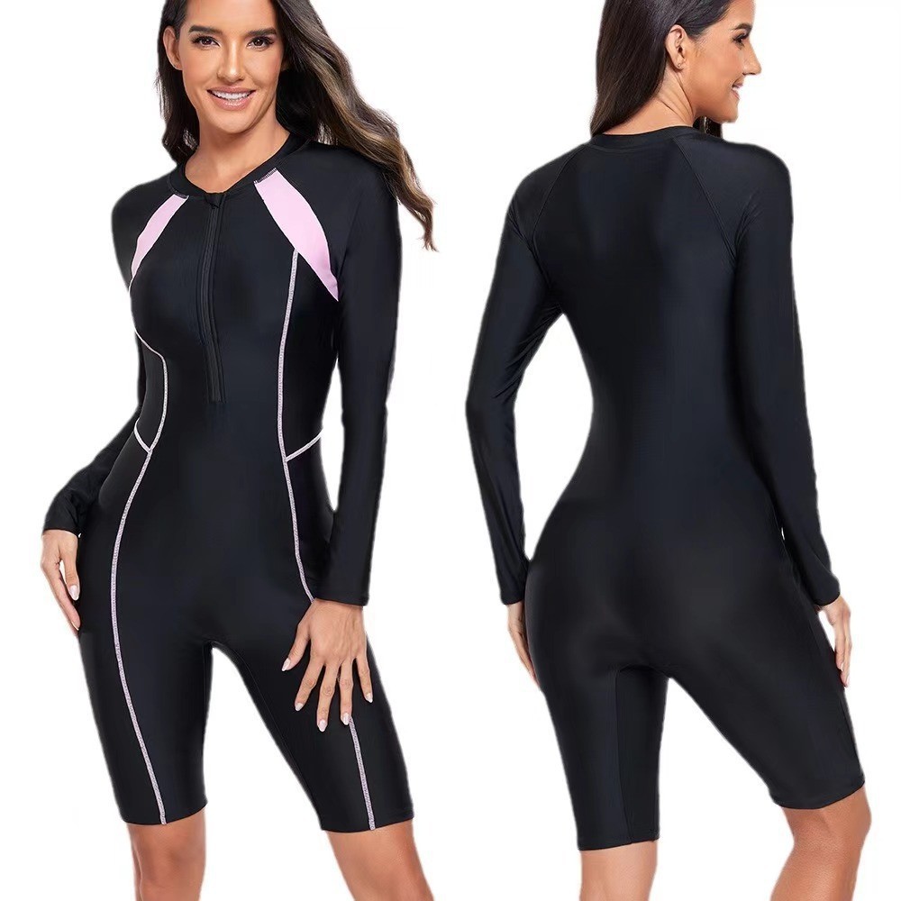 2025 아마존 국경 긴팔 원피스 서핑 세트 다이빙 세트 여성 수영복 대외 무역 수영복 서핑 세트 블랙 파우더스토어 가기