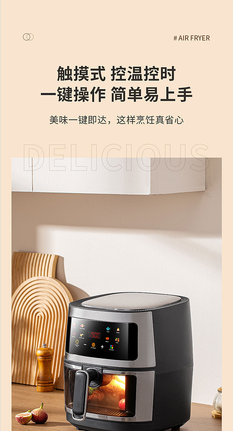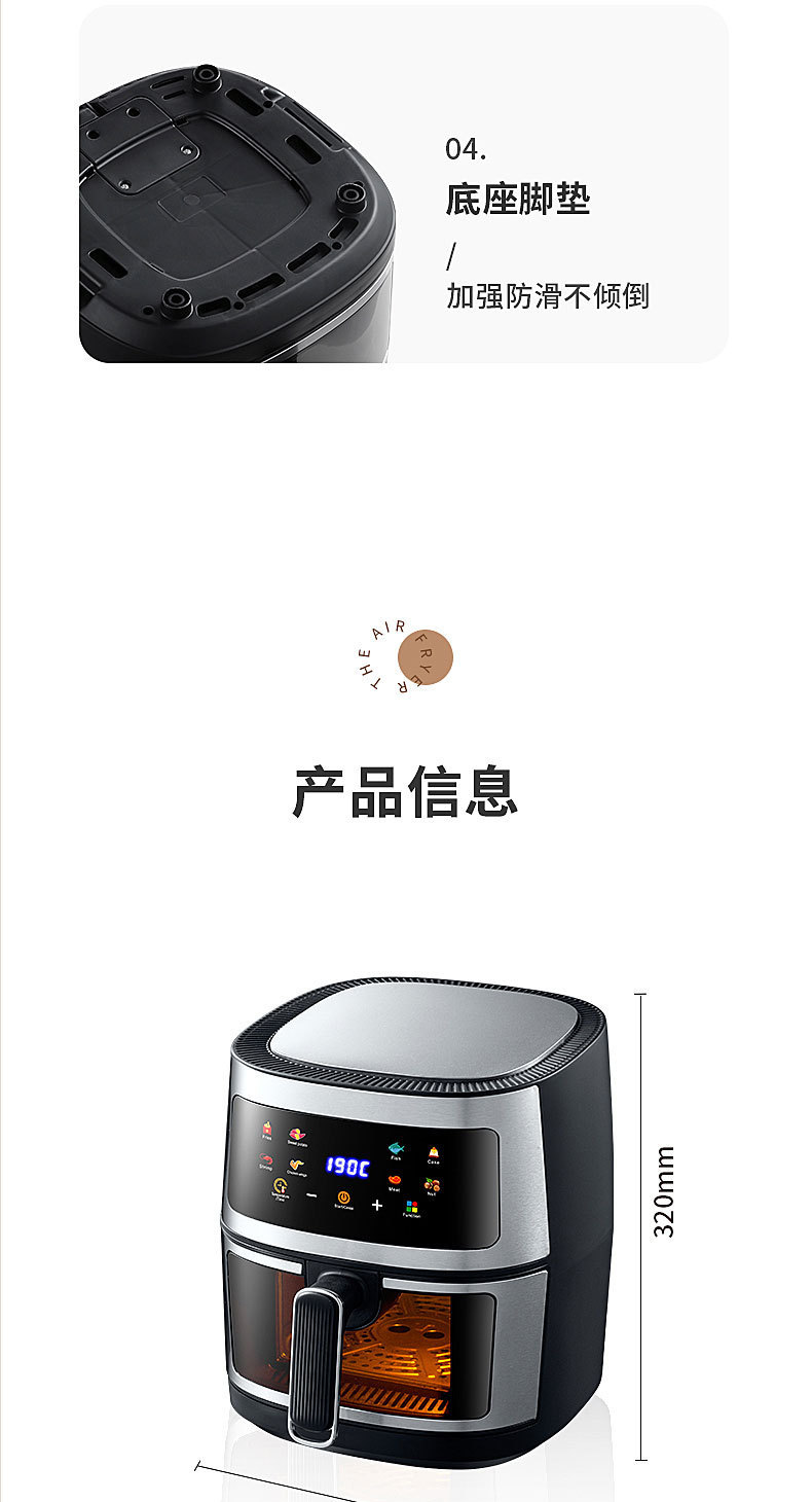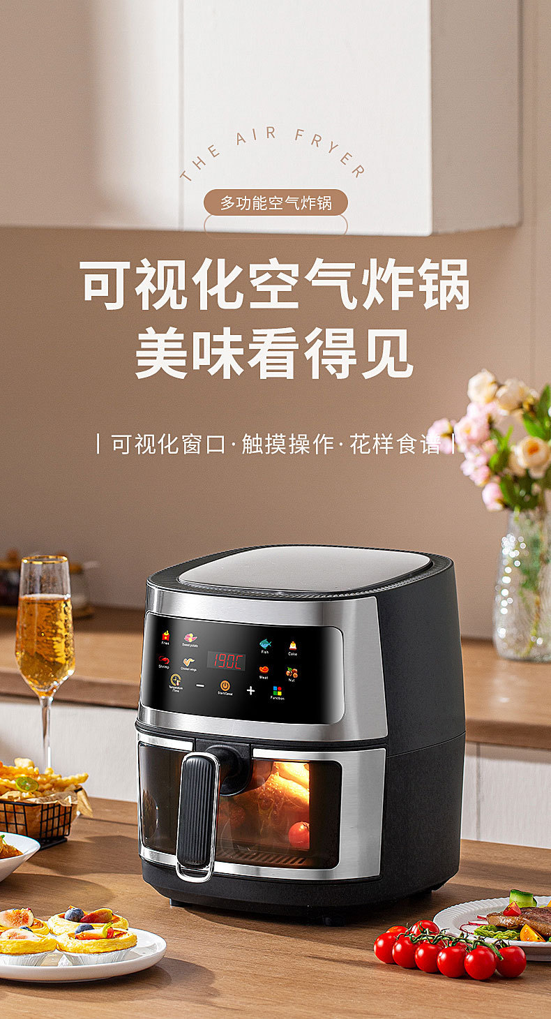 에어 프라이어 스테인레스 스틸 지능형 시각적 공기 프라이어 가정용 베이킹 통합 전기 프라이어 공장 선물 도매