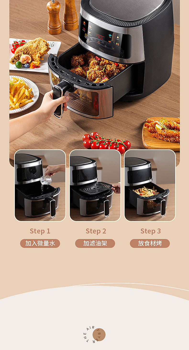 에어 프라이어 스테인레스 스틸 지능형 시각적 공기 프라이어 가정용 베이킹 통합 전기 프라이어 공장 선물 도매스토어 가기