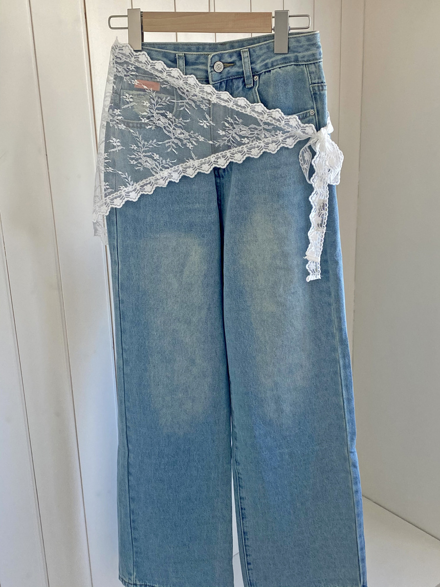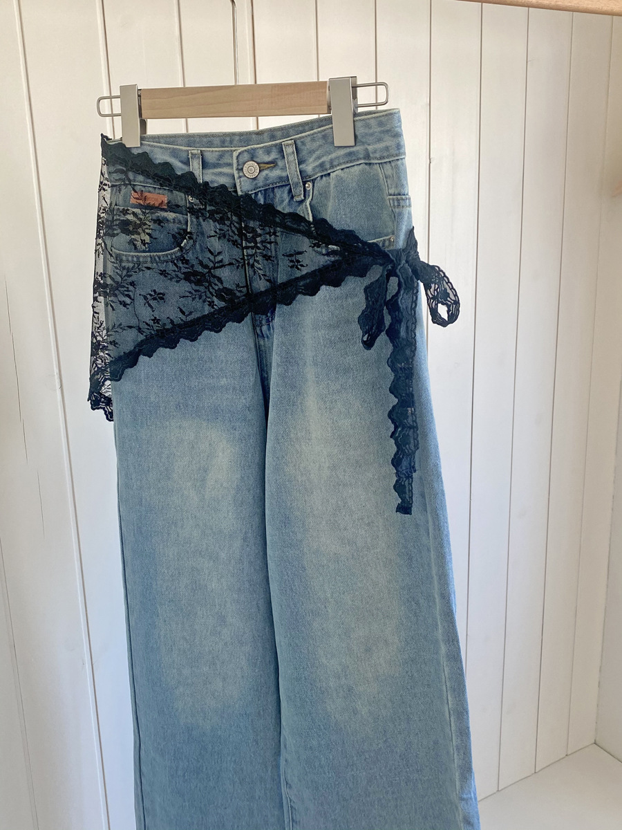 2025 봄 새로운 레이스 레이스 트라이앵글 아트 커튼 독특한 패션 스트랩 미들 스커트 바지