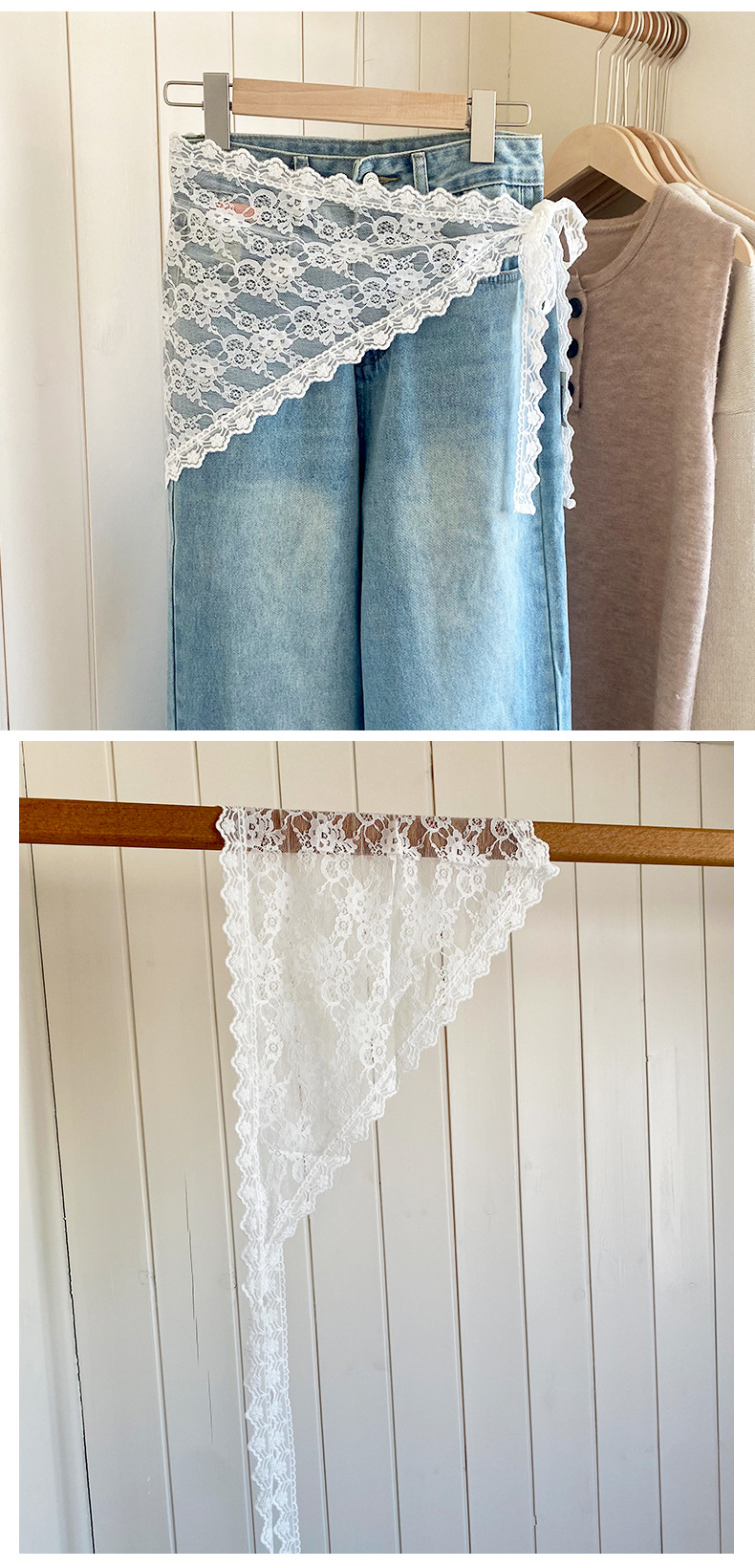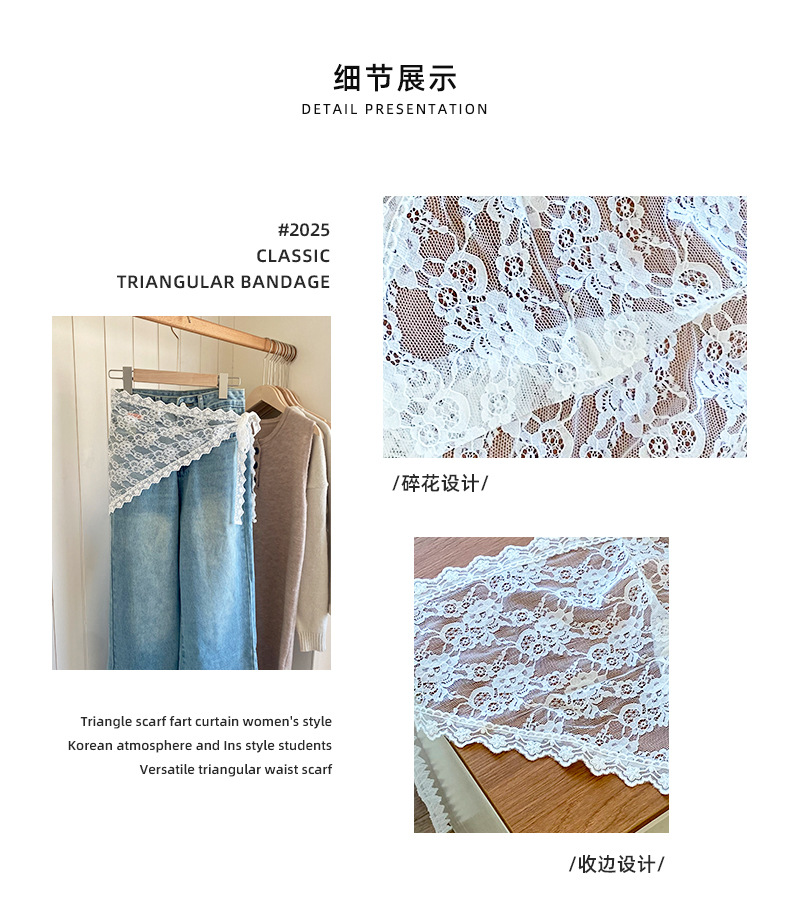2025 봄 새로운 레이스 레이스 트라이앵글 아트 커튼 독특한 패션 스트랩 미들 스커트 바지스토어 가기