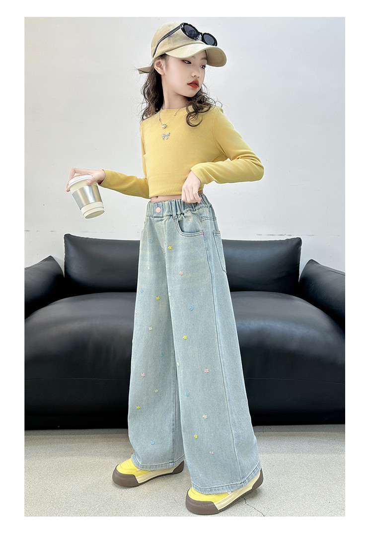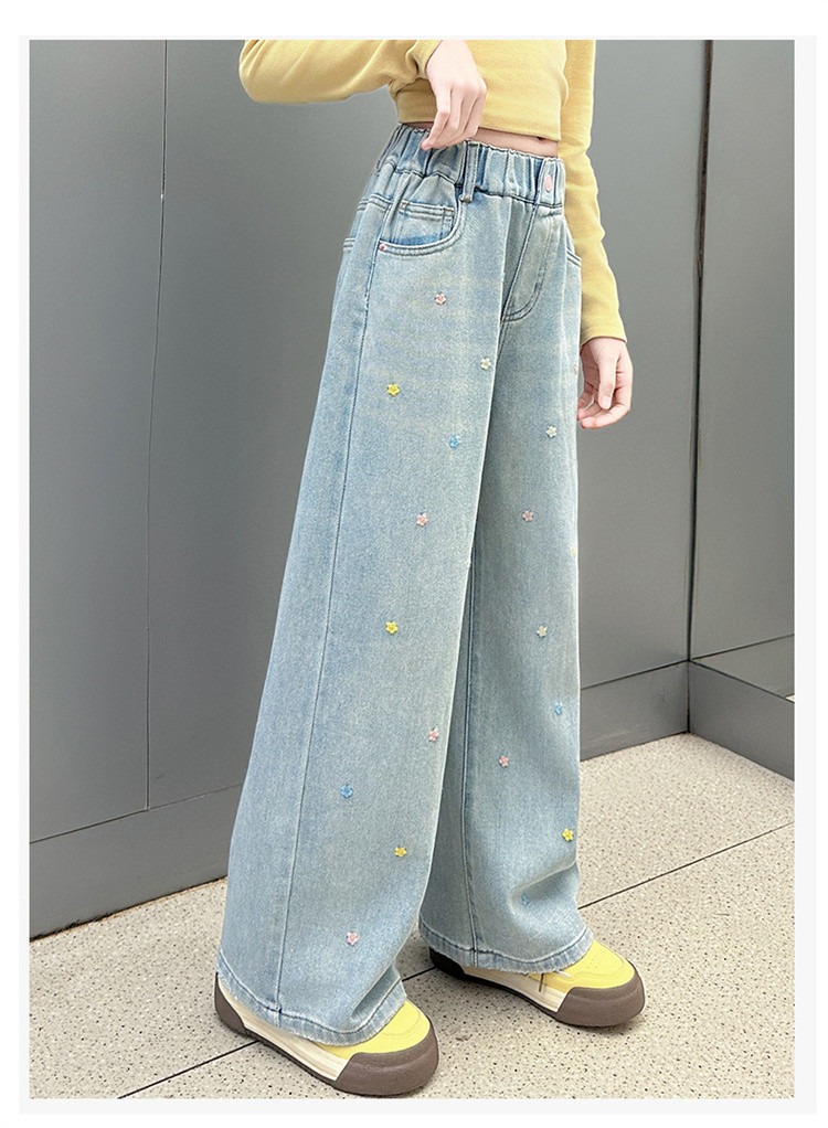 소녀 청바지 봄과 가을 2025 새로운 스타일 서양식 소녀 스트레이트 다리 넓은 다리 바지 봄 올 매치 캐주얼 바지스토어 가기