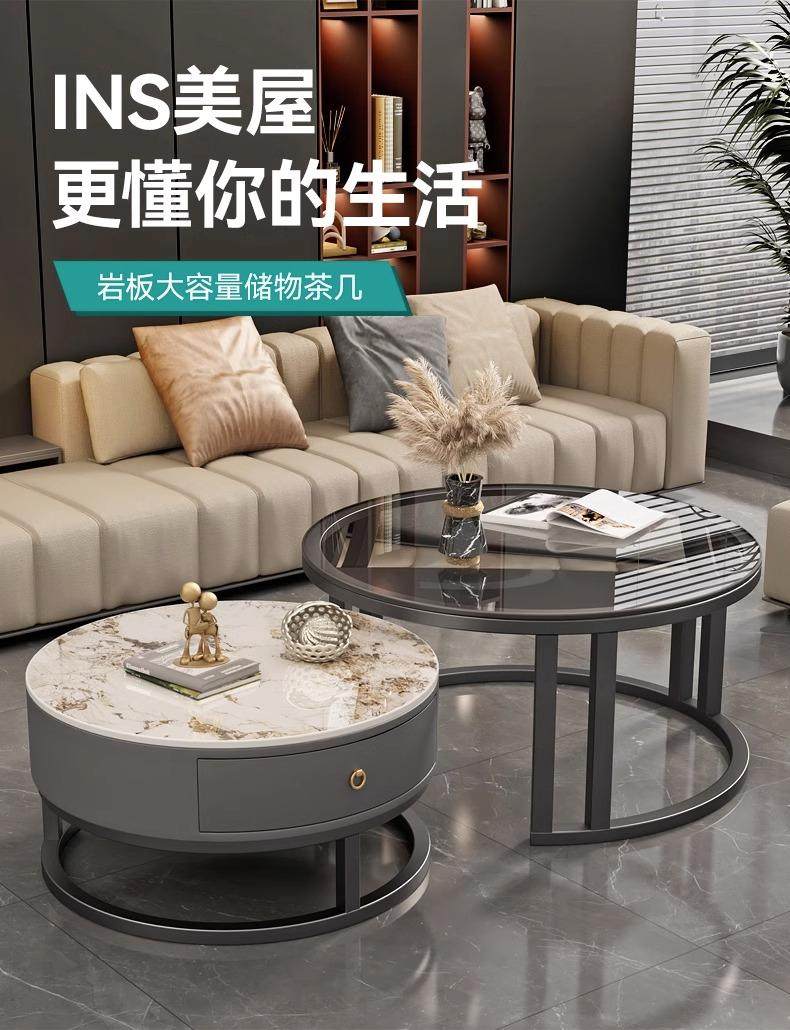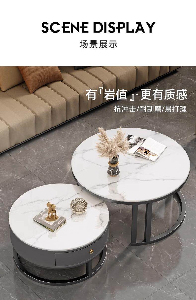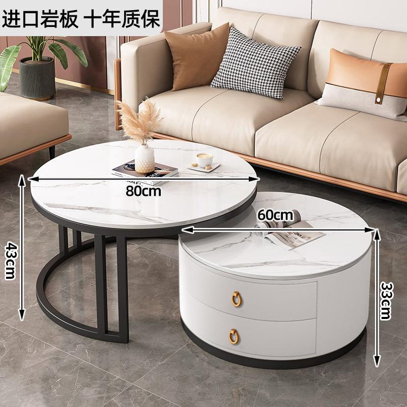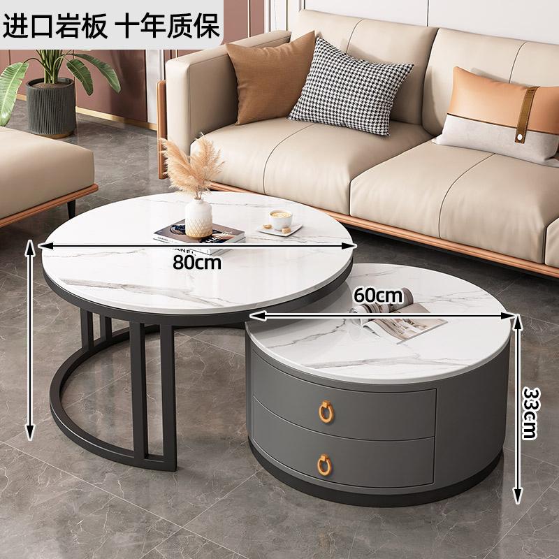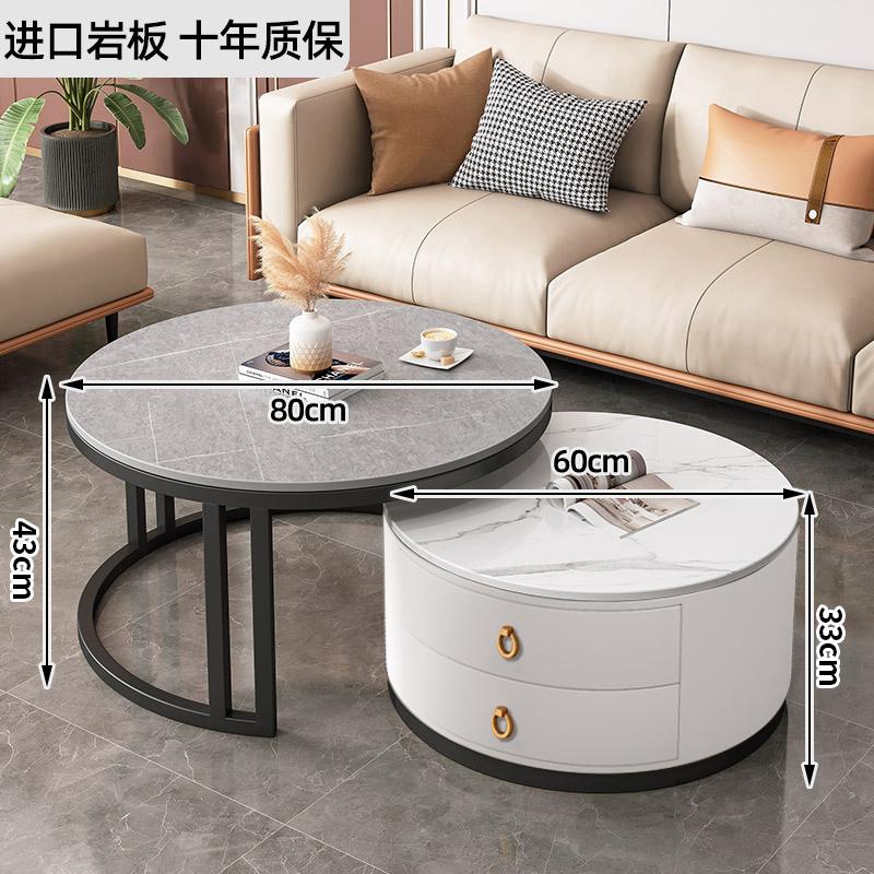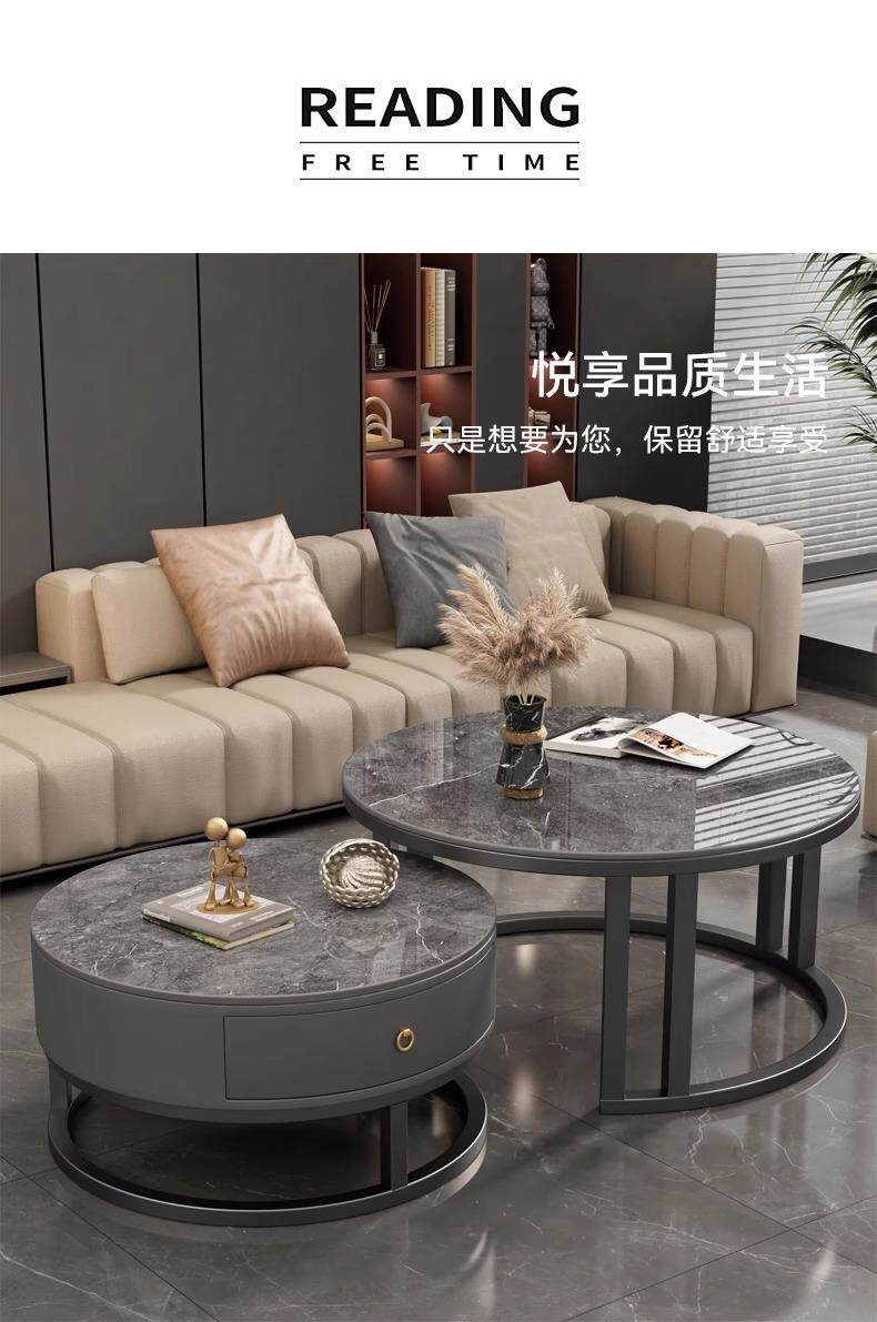 커피 테이블 거실 2024 새로운 스타일 홈 거실 발코니 간단한 현대 작은 아파트 빛 럭셔리 라운드 록 플레이트 커피 테이블 테이블스토어 가기