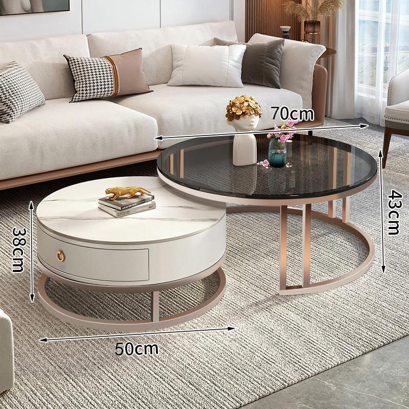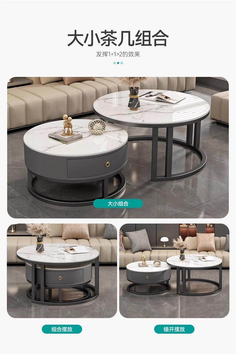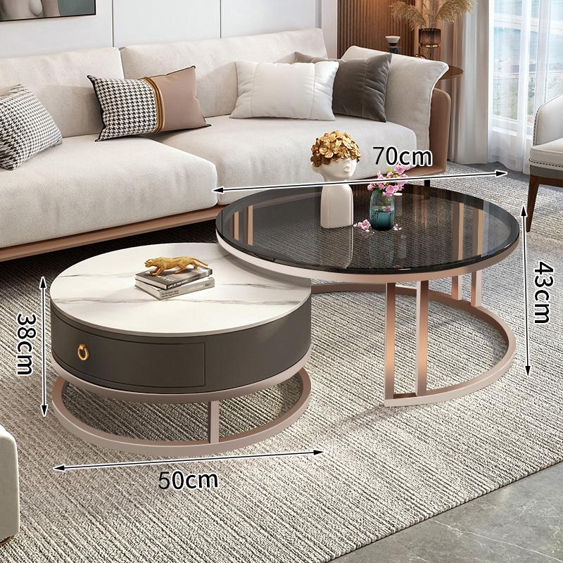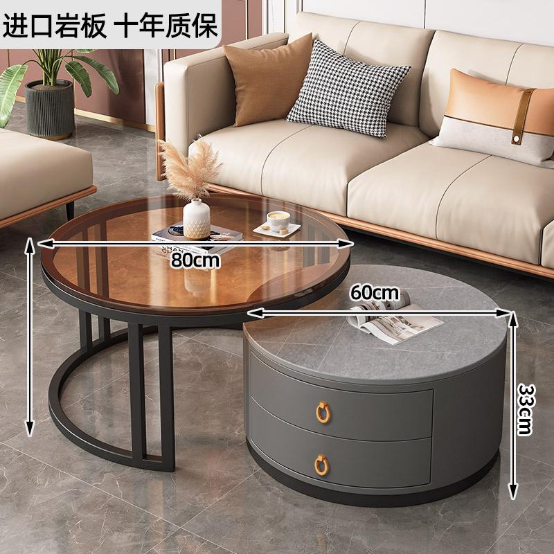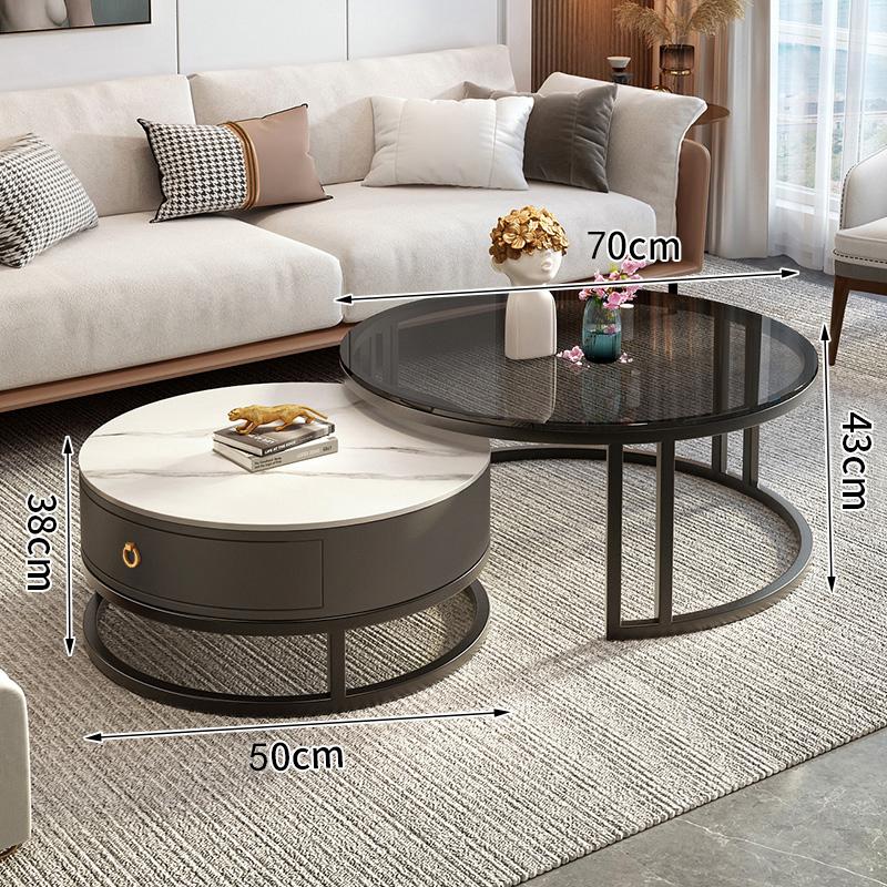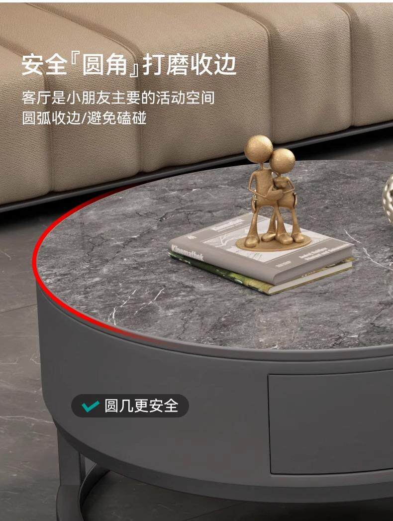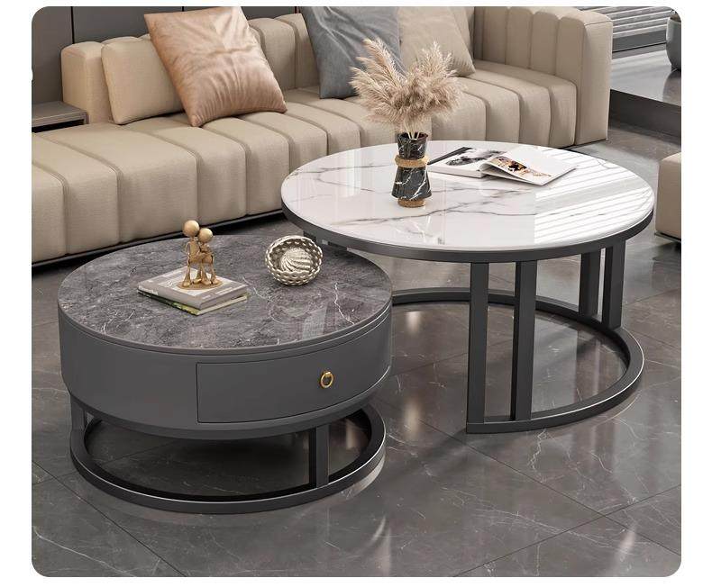 커피 테이블 거실 2024 새로운 스타일 홈 거실 발코니 간단한 현대 작은 아파트 빛 럭셔리 라운드 록 플레이트 커피 테이블 테이블스토어 가기