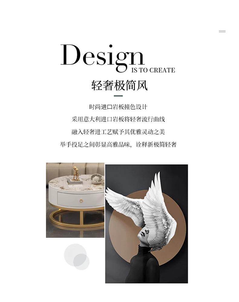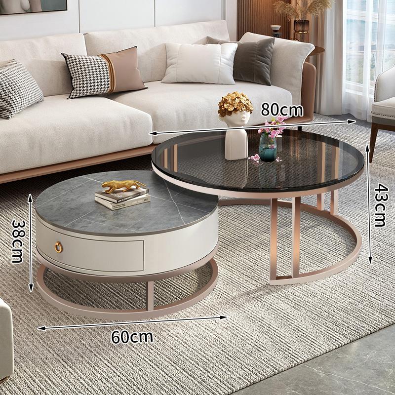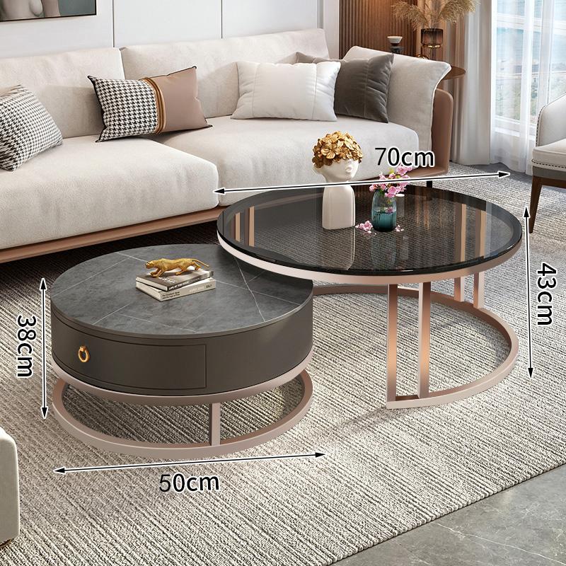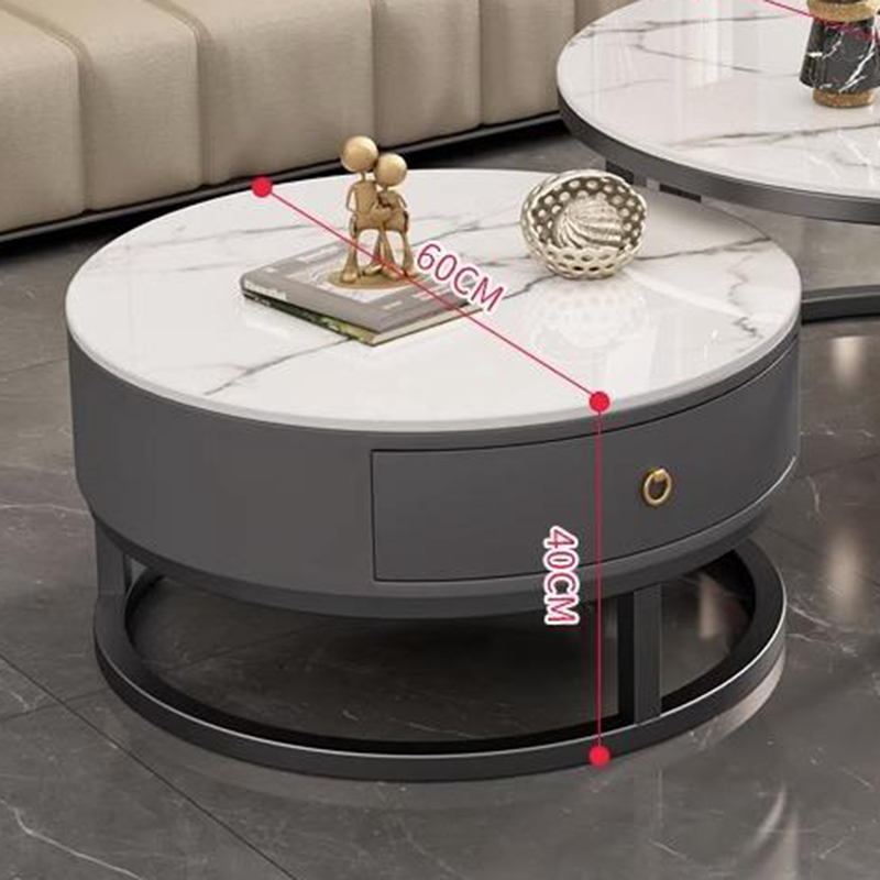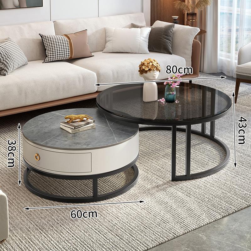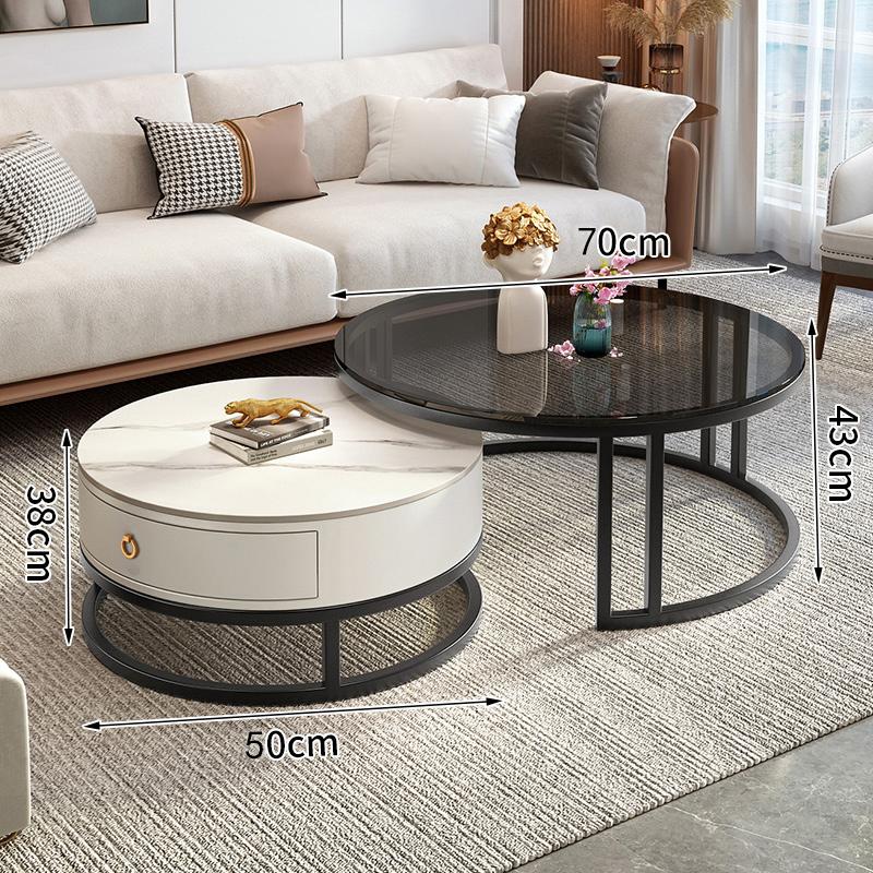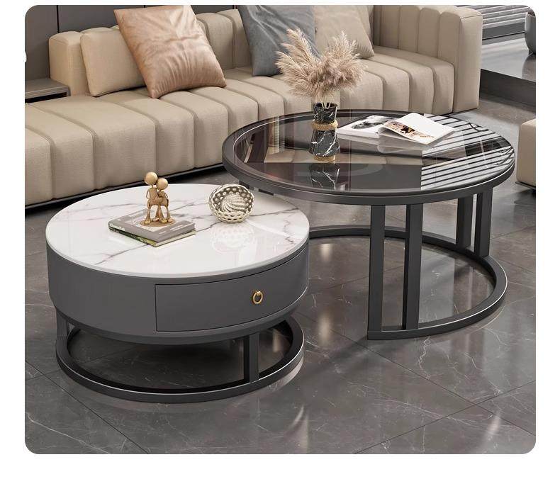 커피 테이블 거실 2024 새로운 스타일 홈 거실 발코니 간단한 현대 작은 아파트 빛 럭셔리 라운드 록 플레이트 커피 테이블 테이블스토어 가기