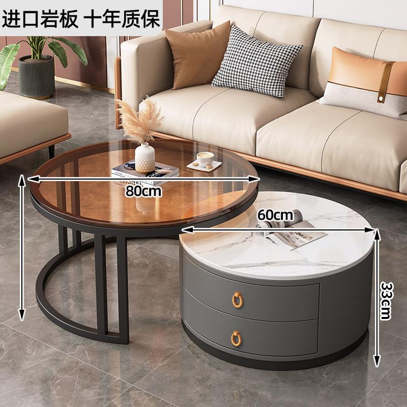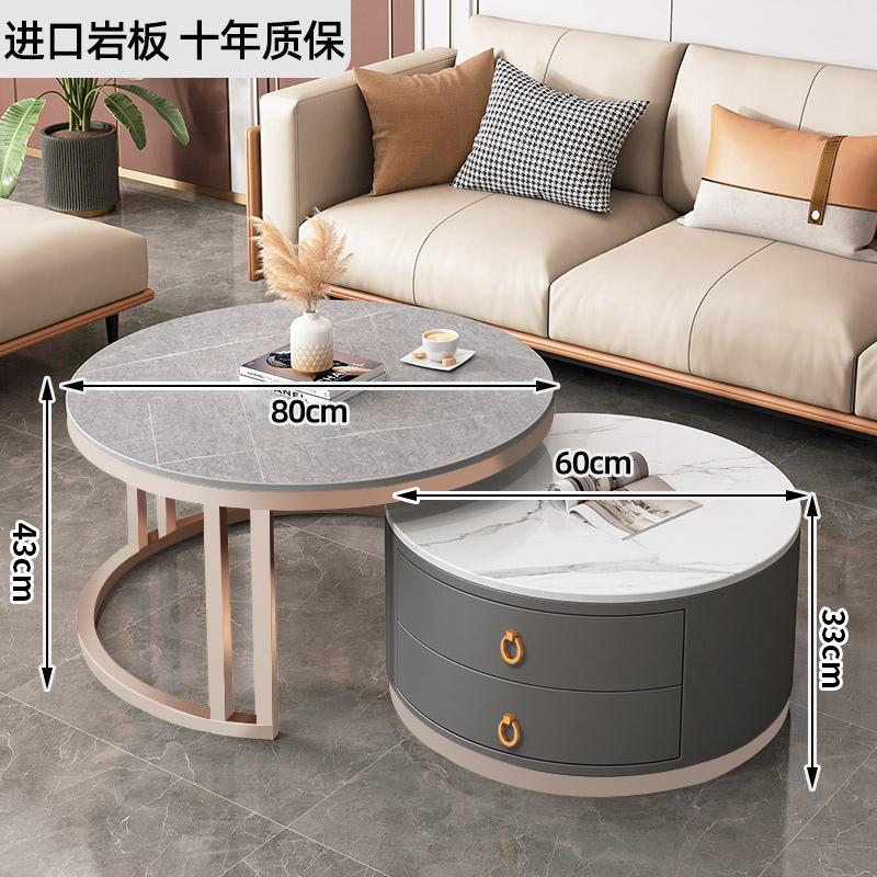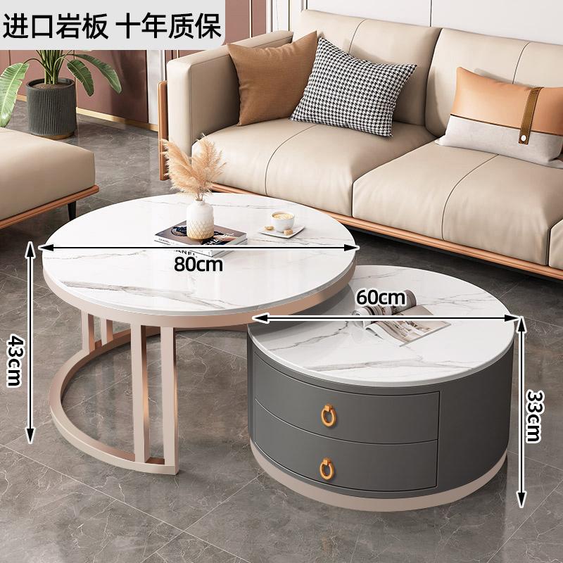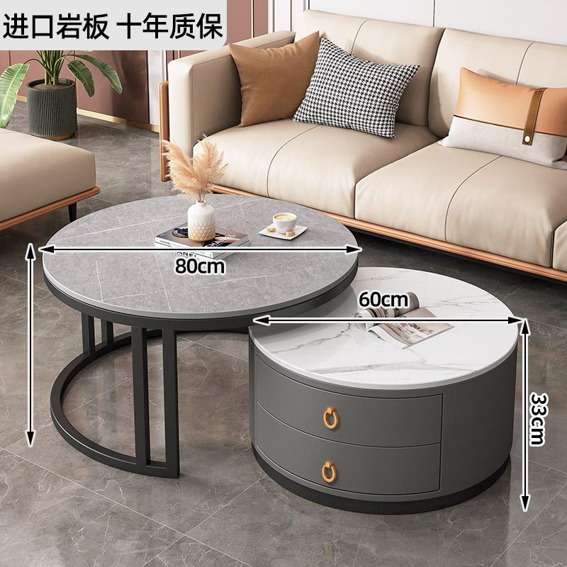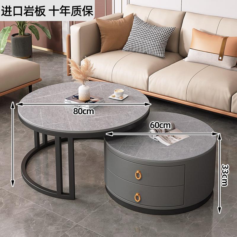 커피 테이블 거실 2024 새로운 스타일 홈 거실 발코니 간단한 현대 작은 아파트 빛 럭셔리 라운드 록 플레이트 커피 테이블 테이블