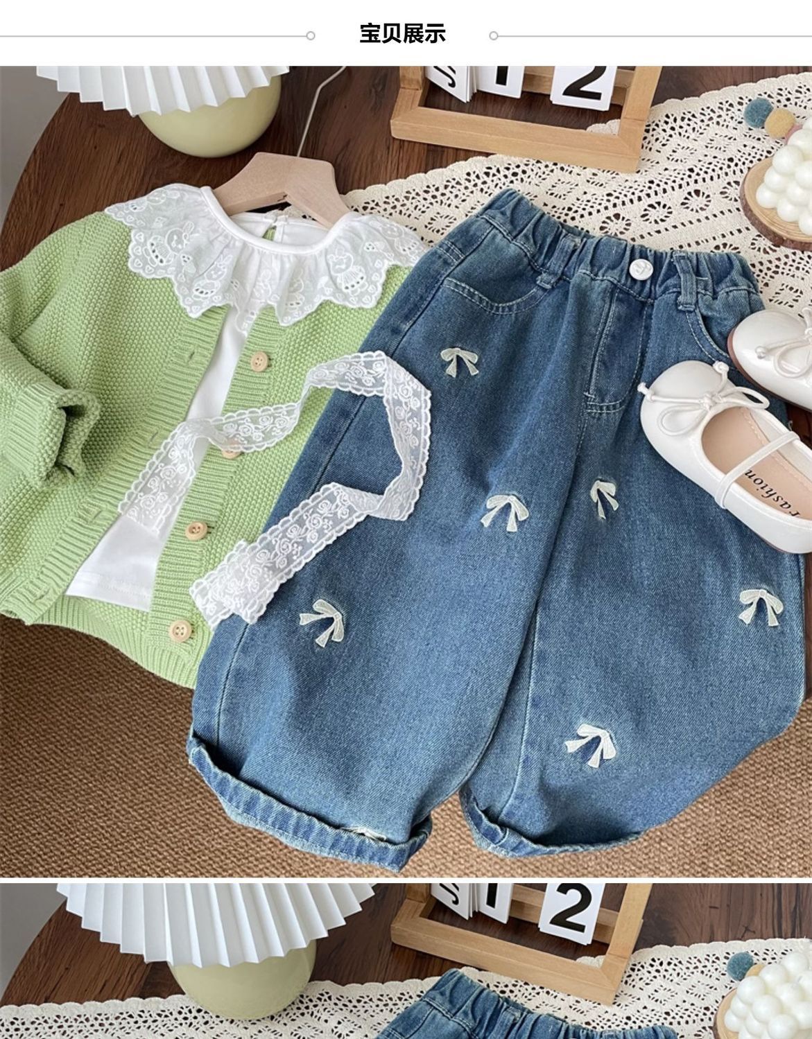 봄과 가을 여아 착용 청바지 아기의 서양식 어린이 성격 유행 브랜드 한국 스타일 활 자수 유행 넓은 다리 바지스토어 가기